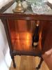 We dont have much to go on with this piece. Opens up from the center and the bar rises up through center. A cupboard door on each end