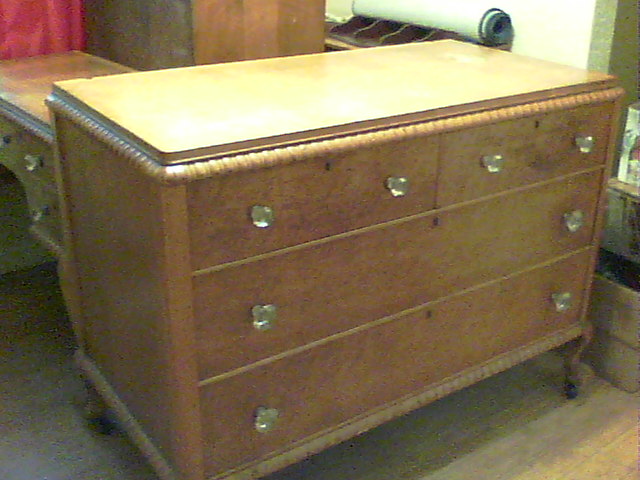 I have an Antique ALL WOOD, Bedroom Dresser and Vanity and Mirror to fit, it has glass knobs and carved wood feet and edges,