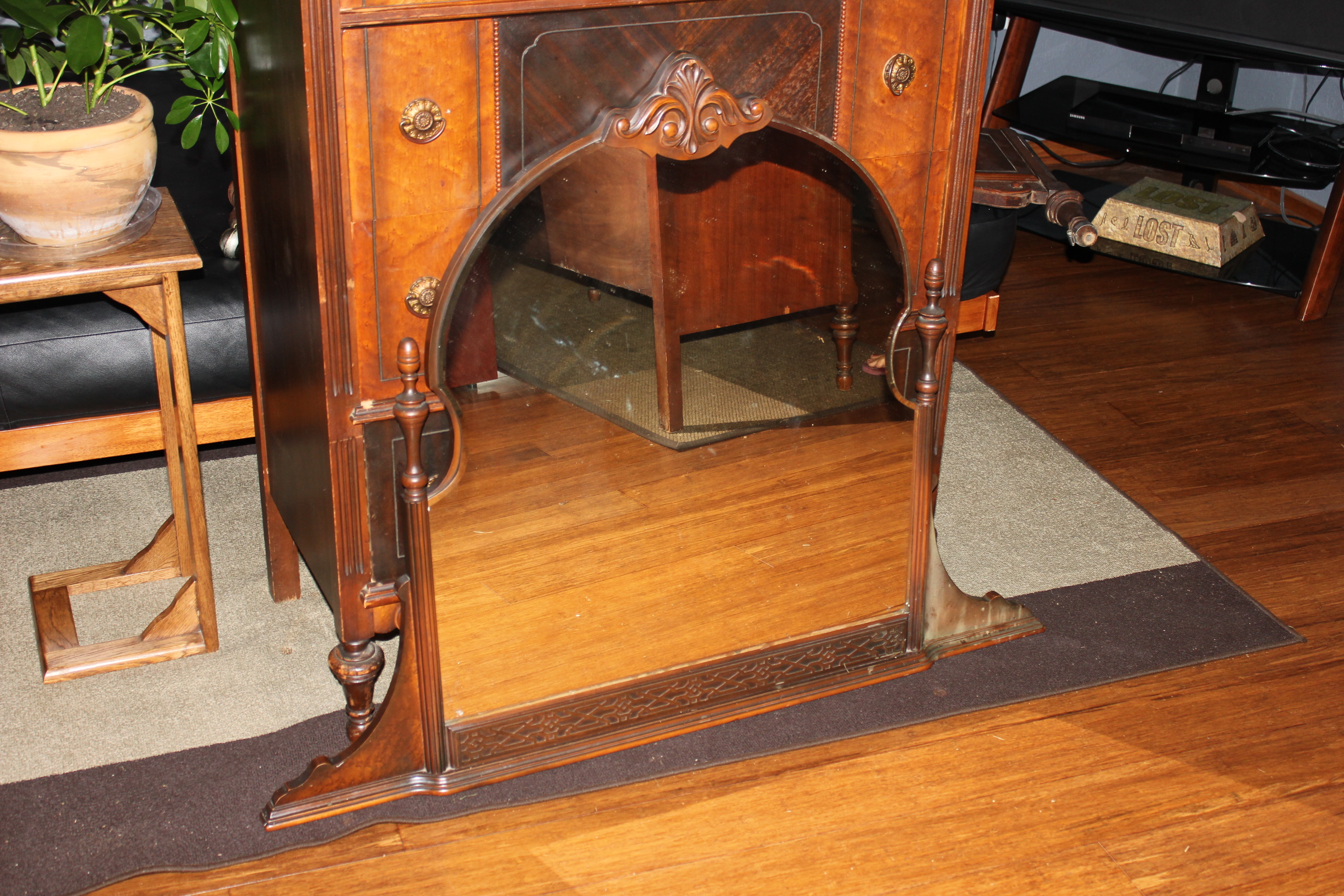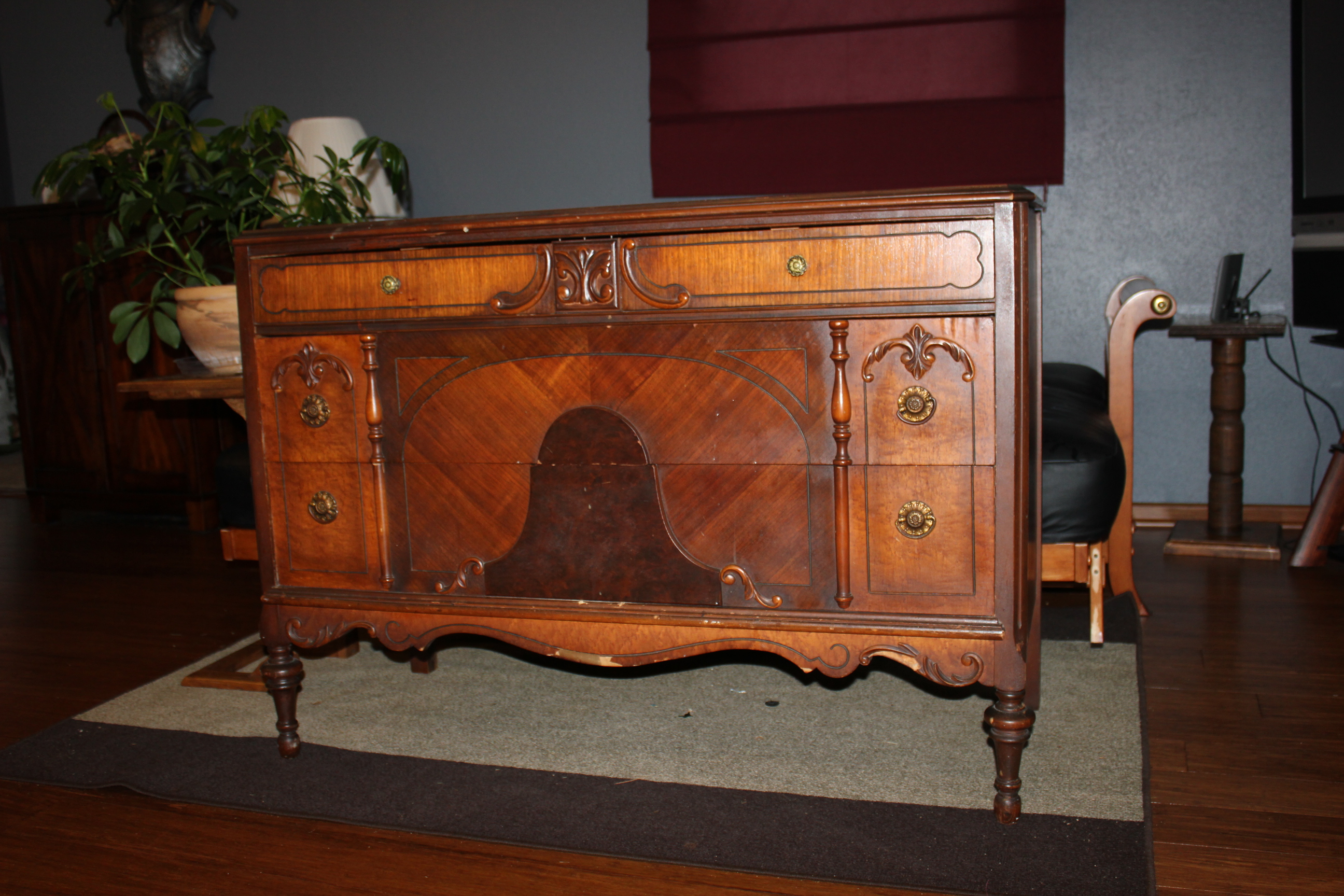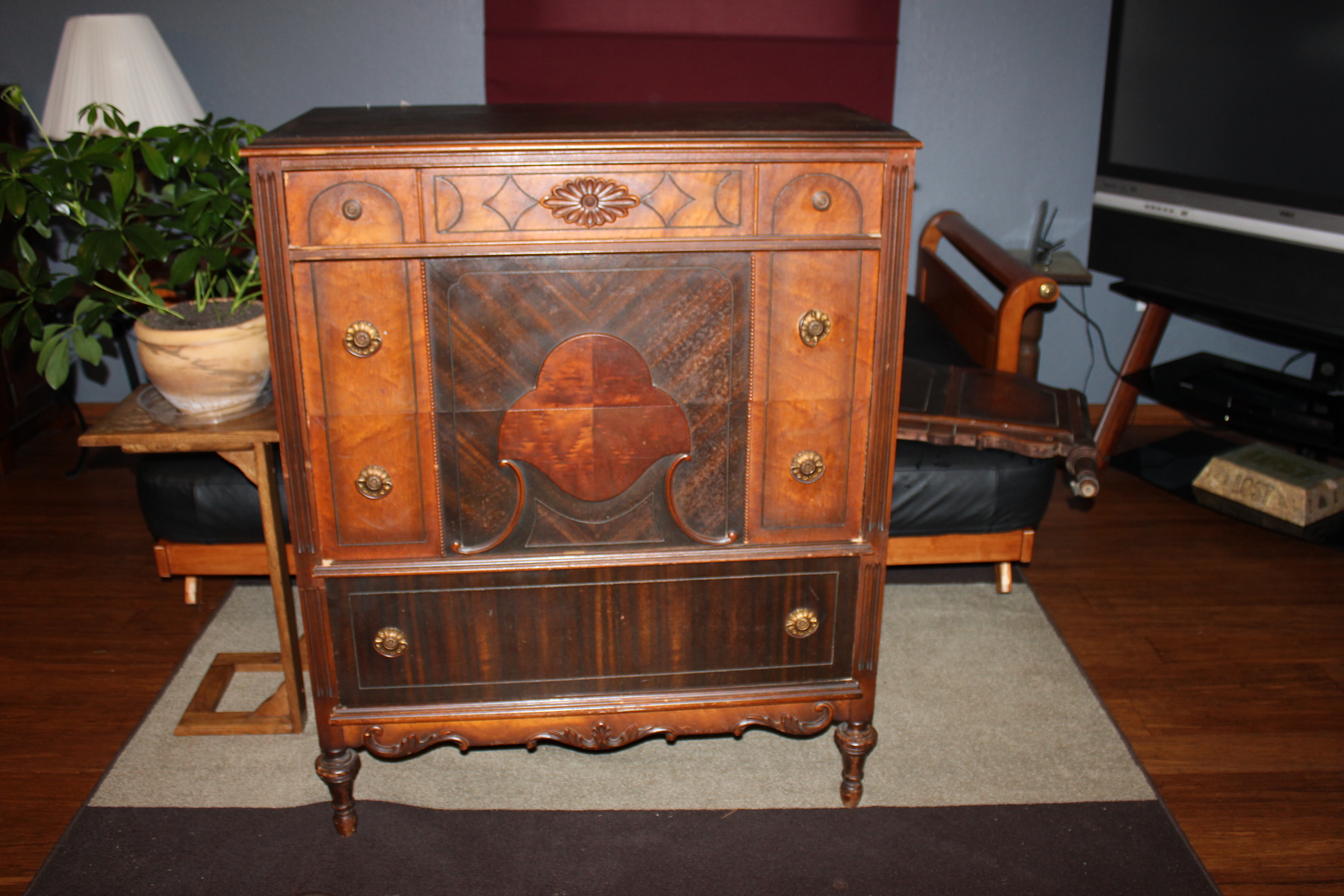We got this set from my wife's grandmother. She got it when she was about 16 and she was born in 1914, so I would guess it is from around 1930. I can't find any manufacturer info on it, but the chest has 1045 and the dresser has 1043 (sounds a lot like Hooker numbers to me.) There are a footboard and rails to go with the headboard too. Thanks for any help!