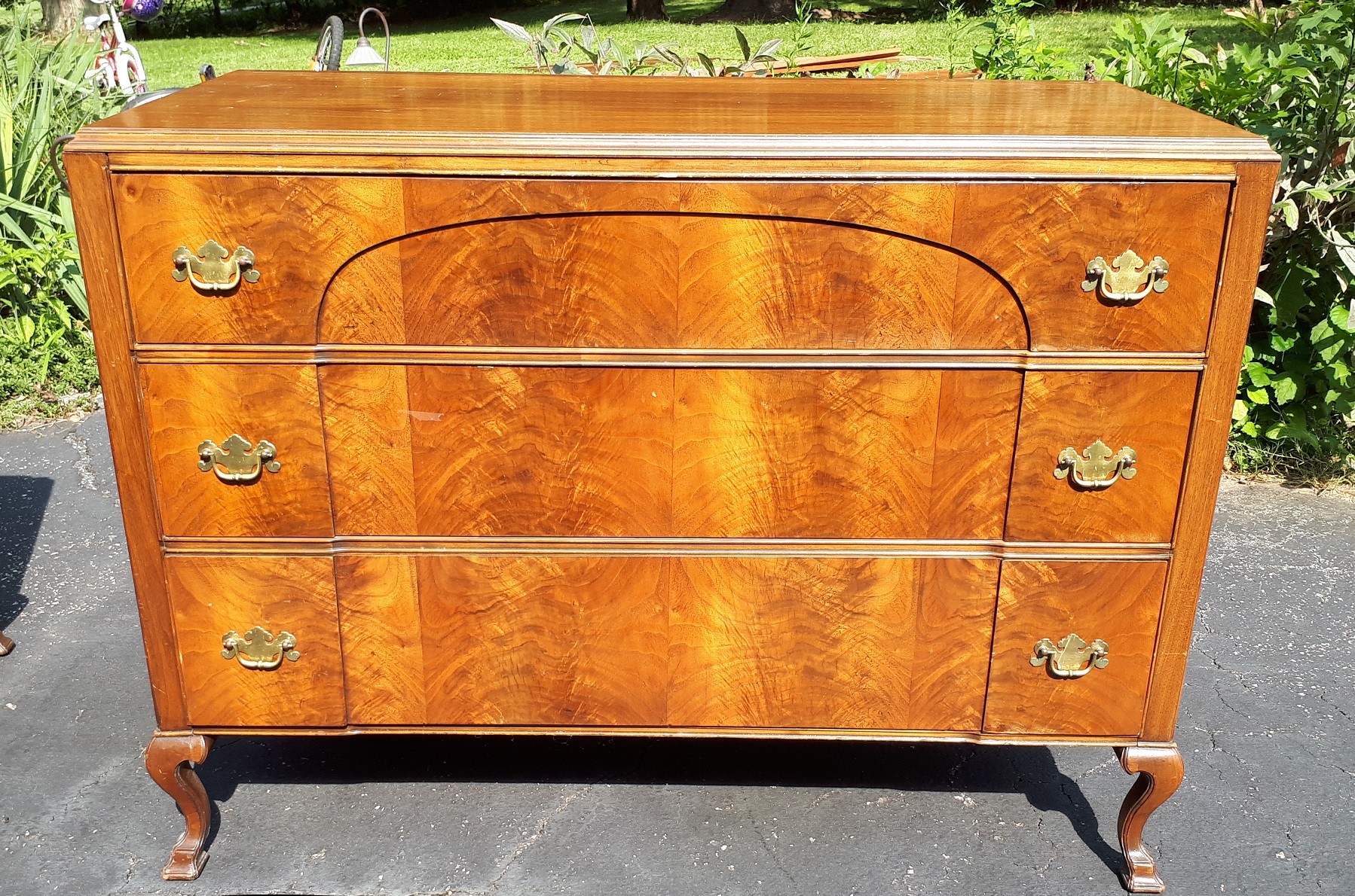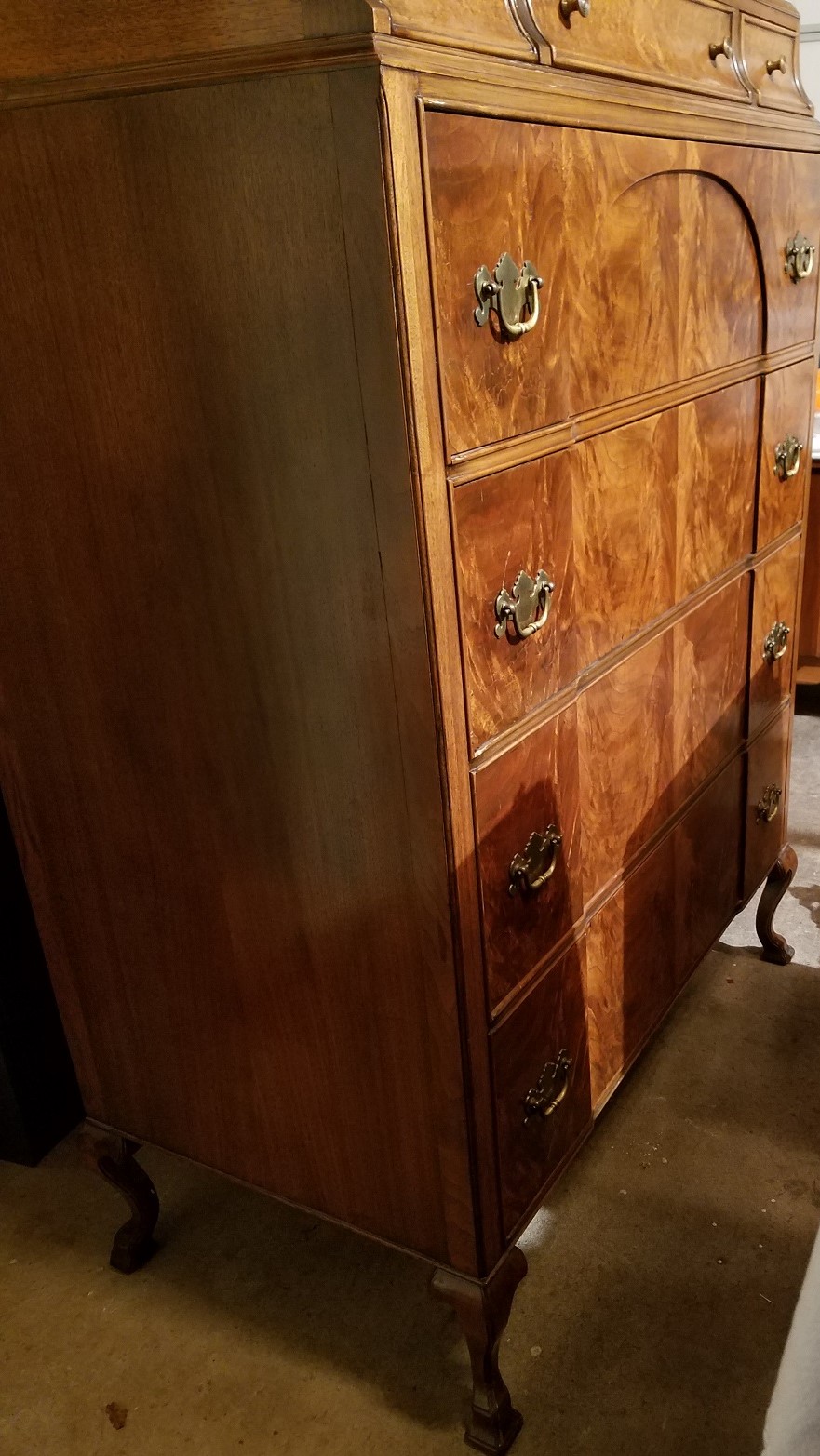 Strawbridge and Clothier bedroom set. 4 pieces: Bedframe, vanity table with drawers, high chest of drawers, chest of drawers.