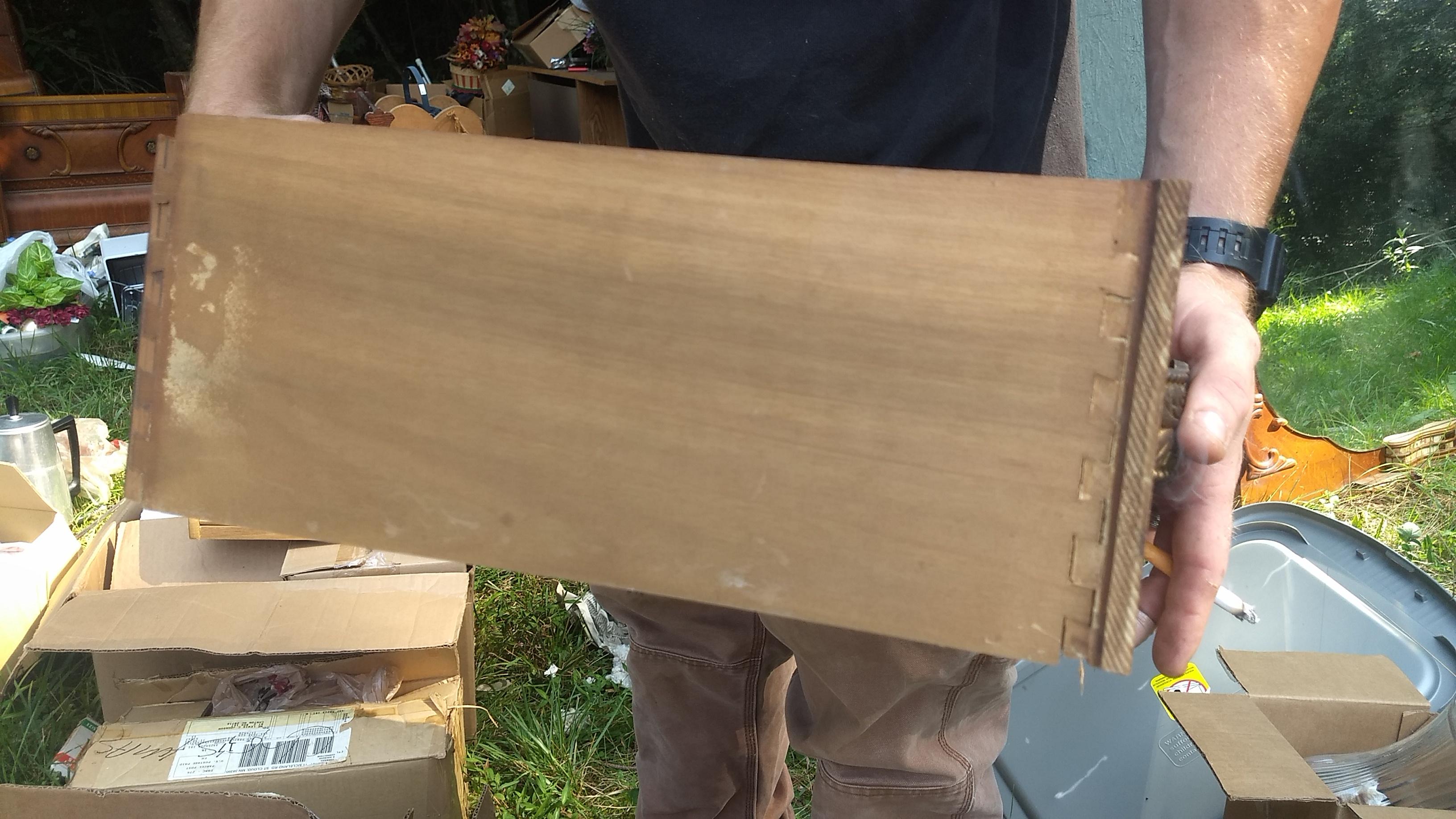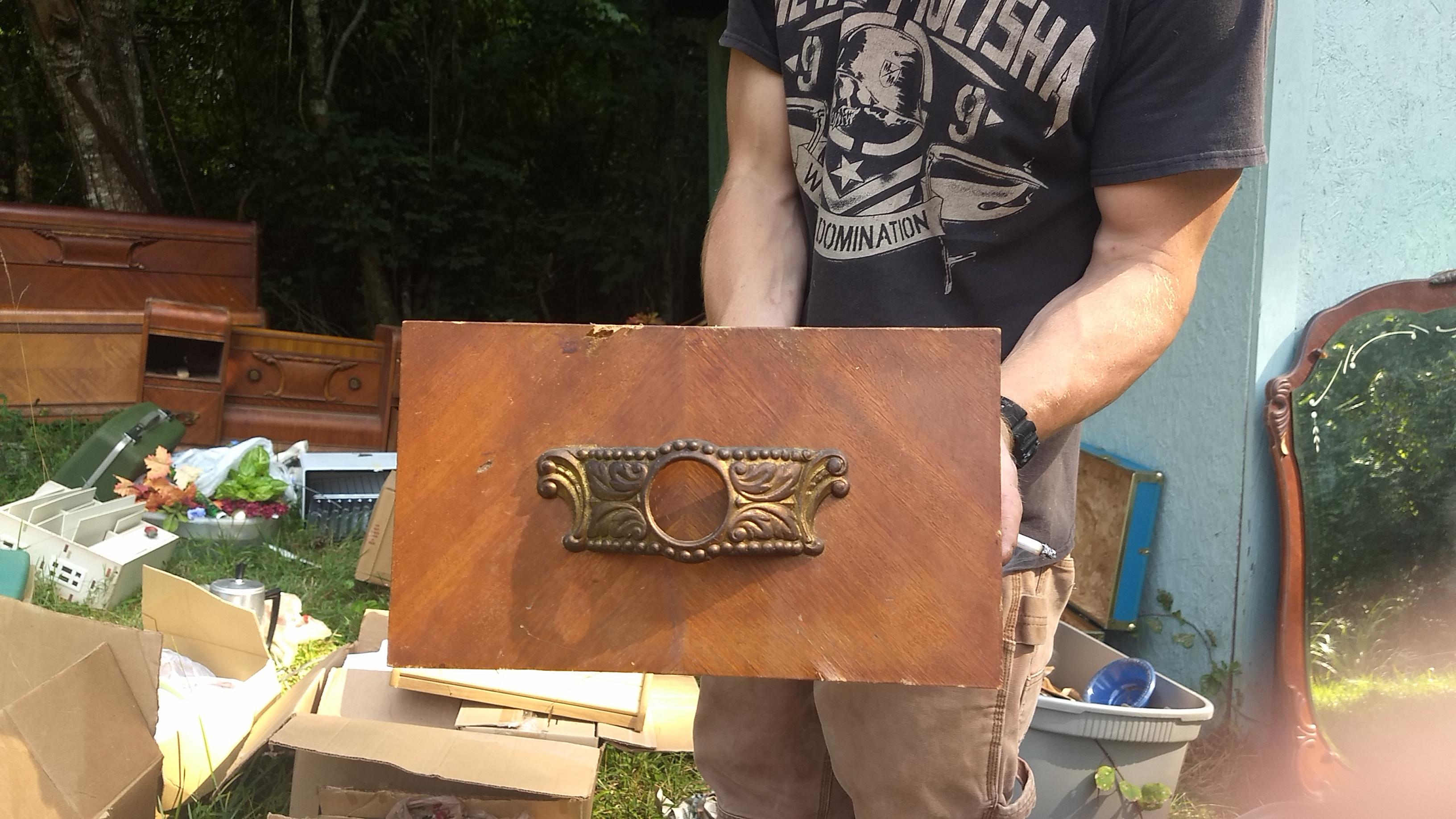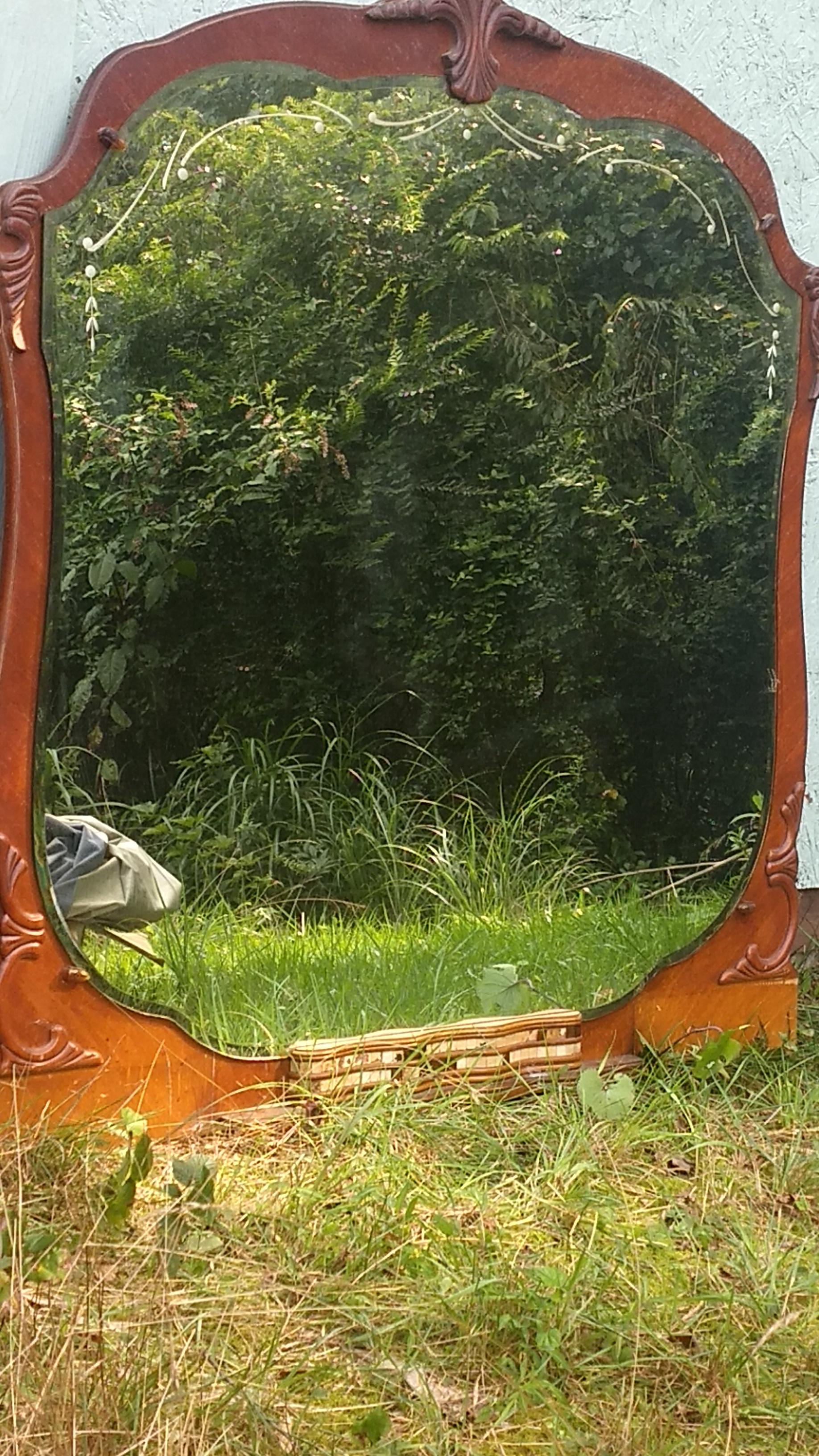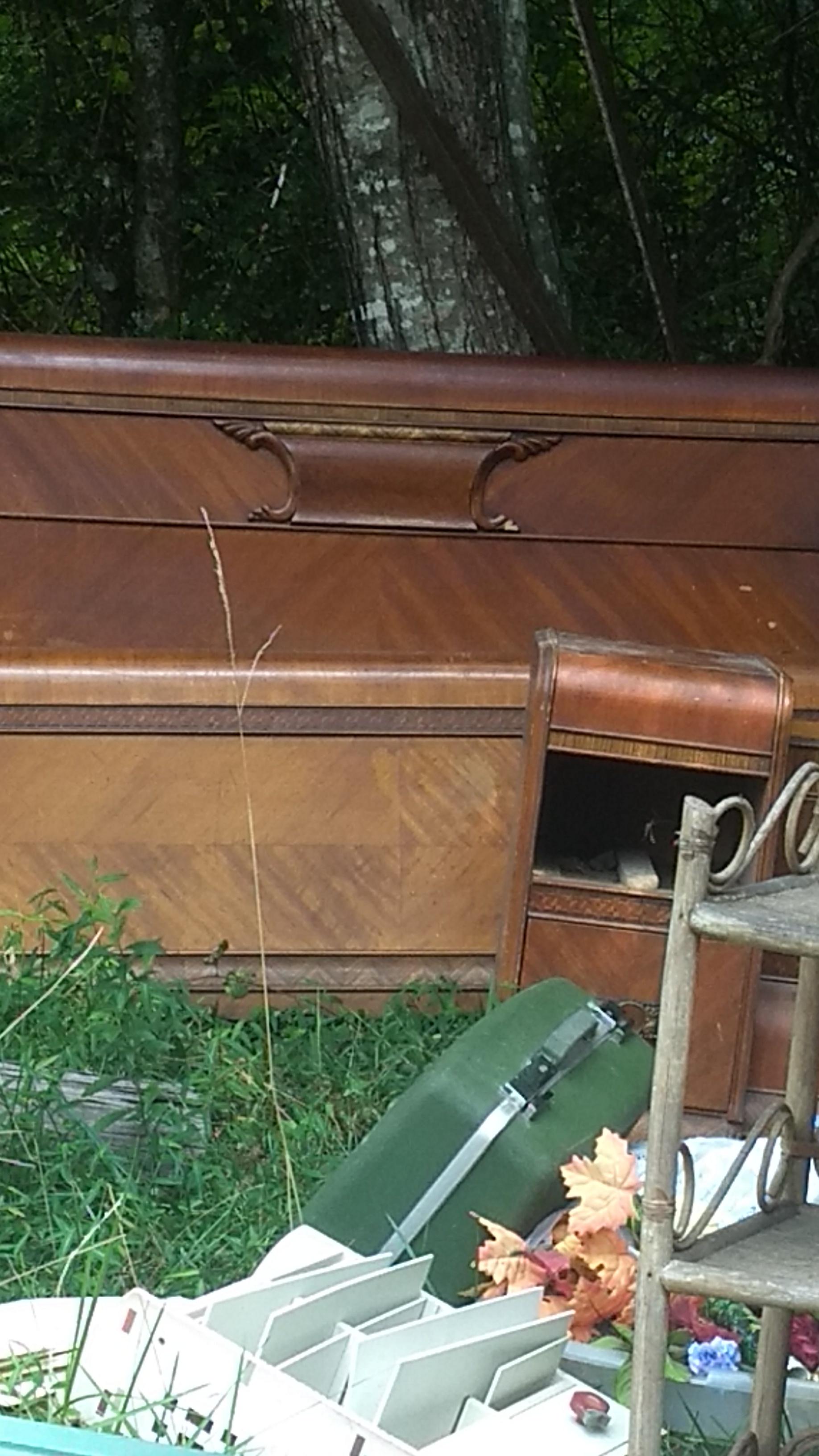 Not sure when it's from it's a woodensuite with a headboard and footboard and also a vanity with Large mirror it's very detailed with like a mosaic hand cut strip of a design and also a chair for the vanity