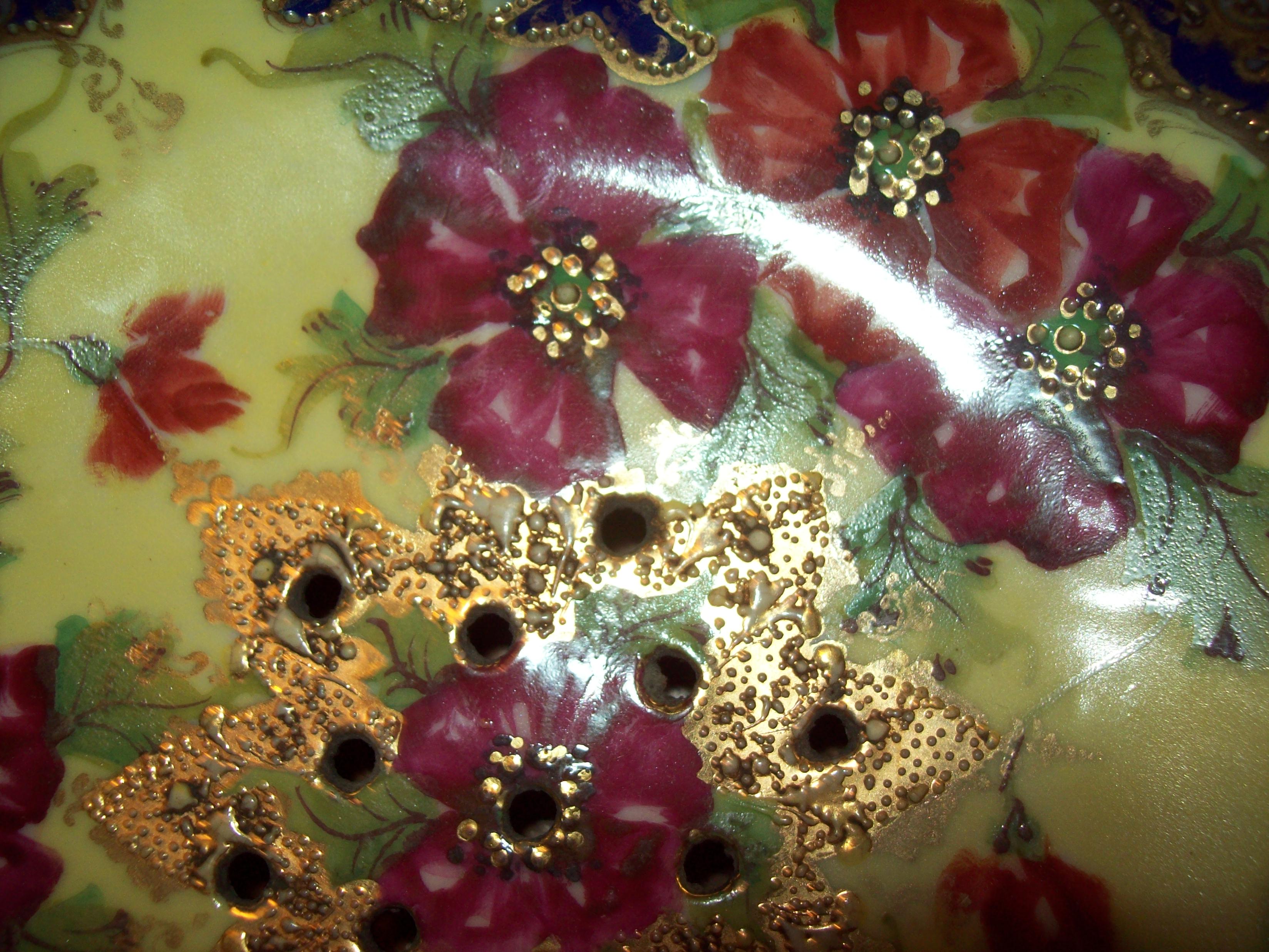 It looks to be late 19th century and is Japanese Nippon, but in the condition it's in it's value is purely decorative.