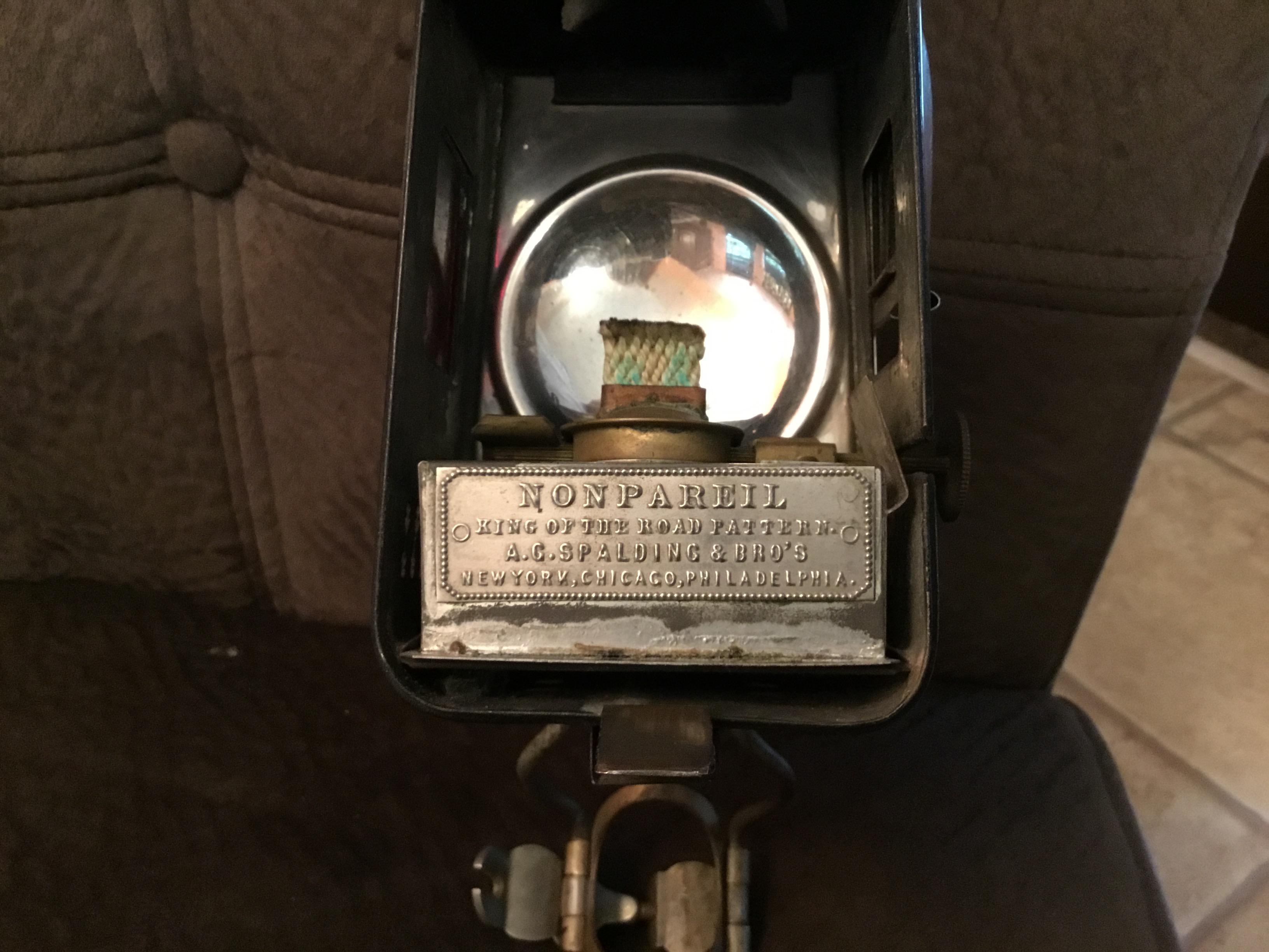 King of the Road bicycle kerosene lantern has side panels that slide up and down
