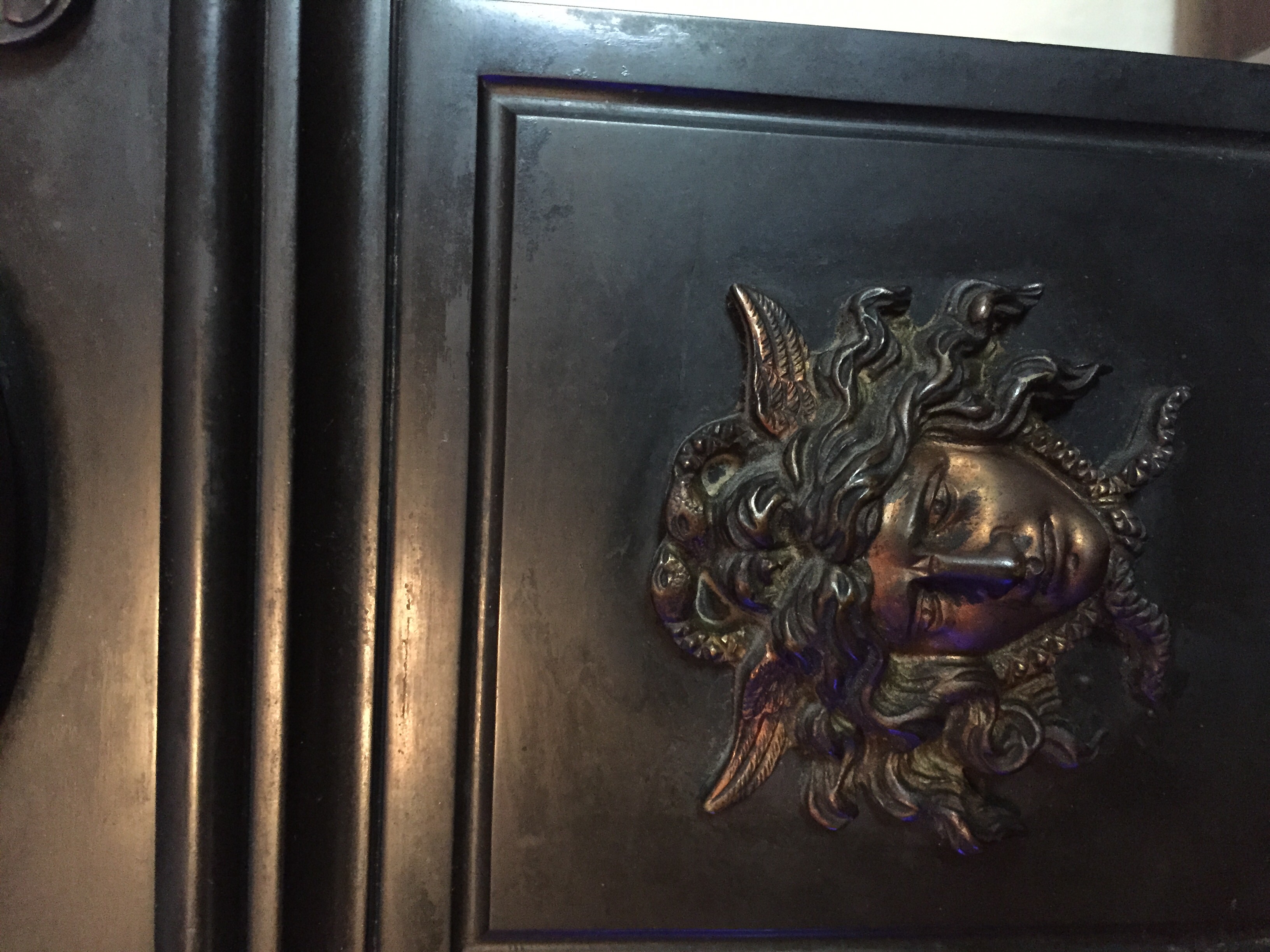 Medium Some kind of heavy black metal (iron?) & brass accents.