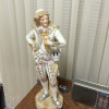 This is a family piece made from bisque. It says Hedkles hair tonic whisks dandruff away. Stands about 8 inched.