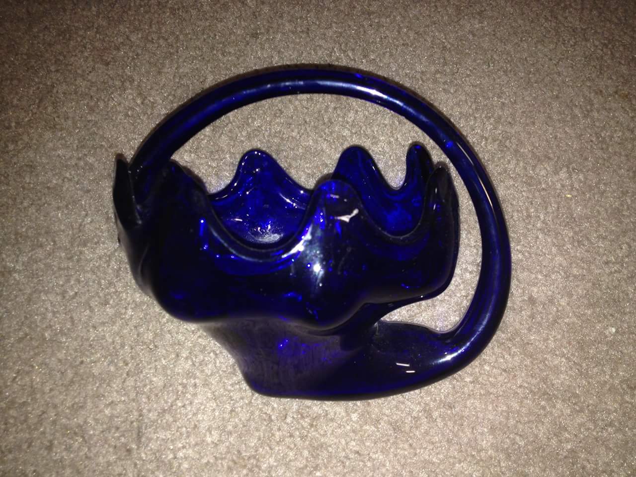 Interesting piece, very dark and looks as if it is handblown, saw similar for 75.00 but that does not mean anything look at this dark blue piece