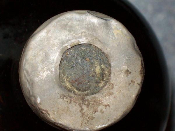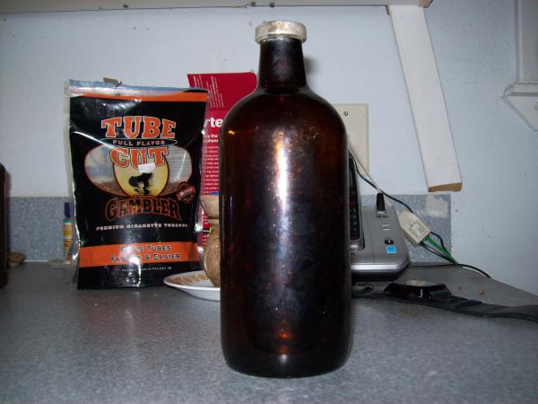 I found this bottle in a very remote area. It is dark brown. It has what appears to be a lead cap with some type of rubber or cork in the center. I think it is an old I.V. bottle. The cap will not unscrew or pull off. I have pictures from all angles. I would like to know how old it is, what exactly it is, what it was used for and of course the value and rareity.