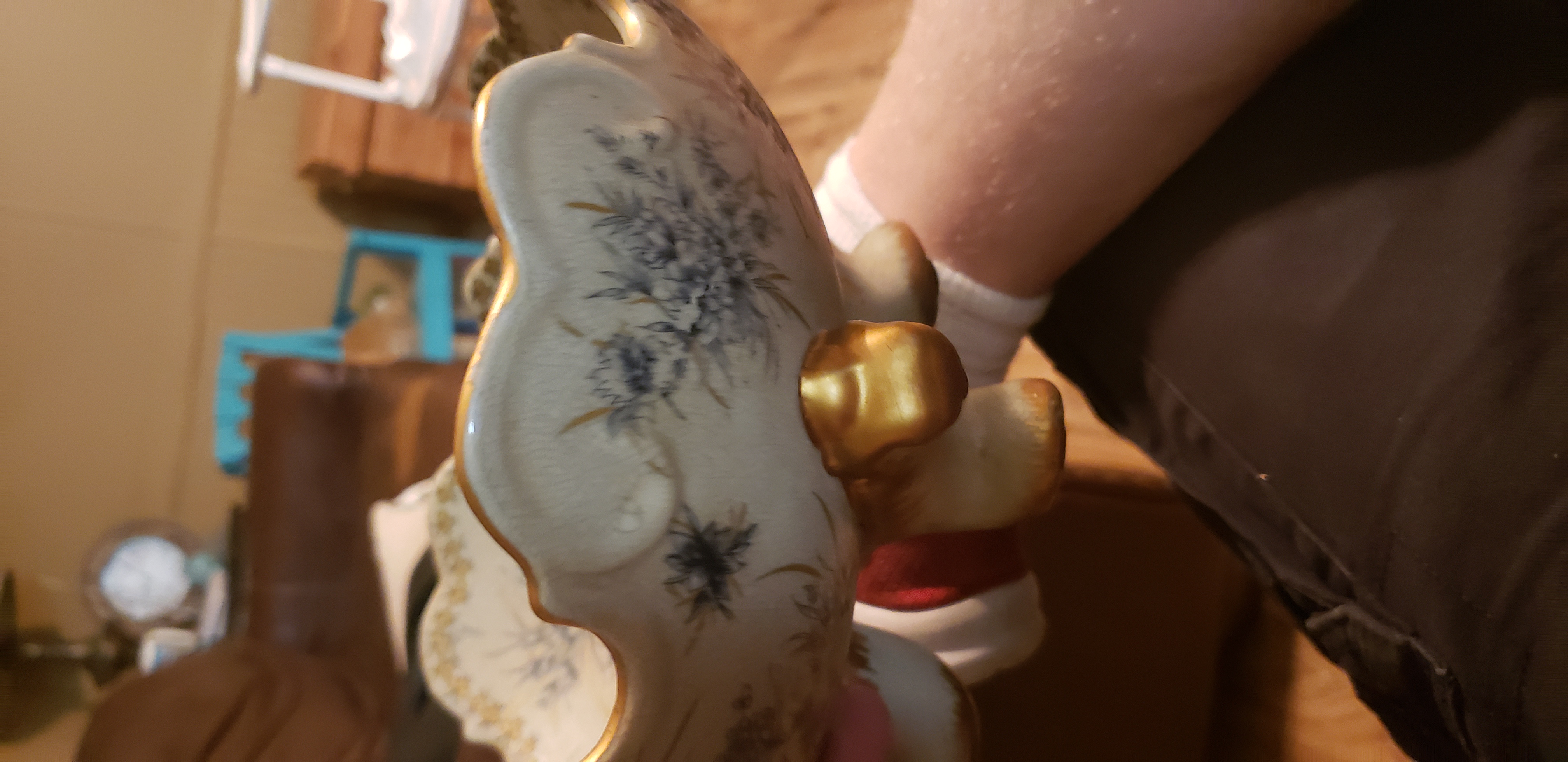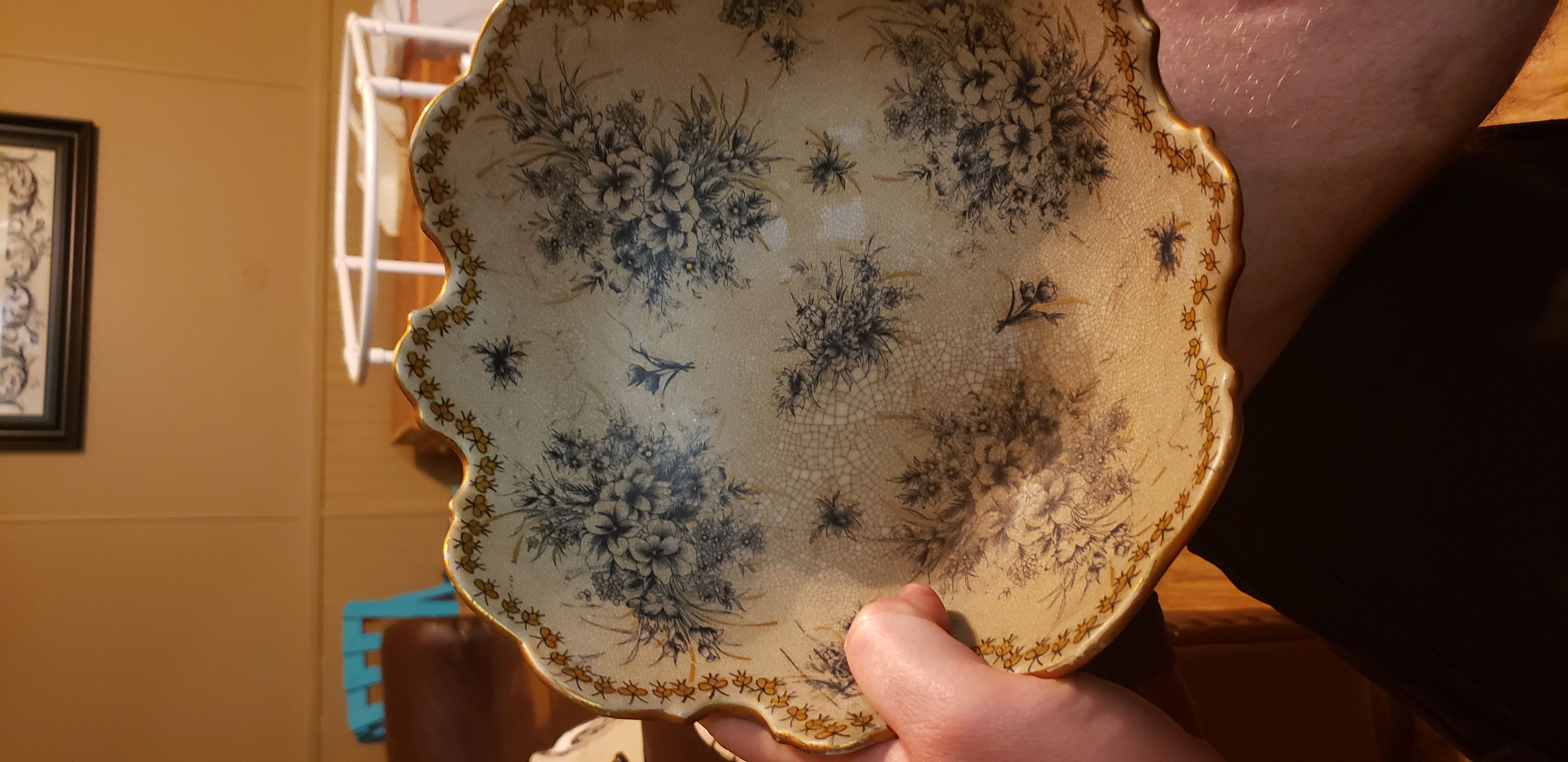 Beautiful bowl with butterflies gold edging and blue flowers.