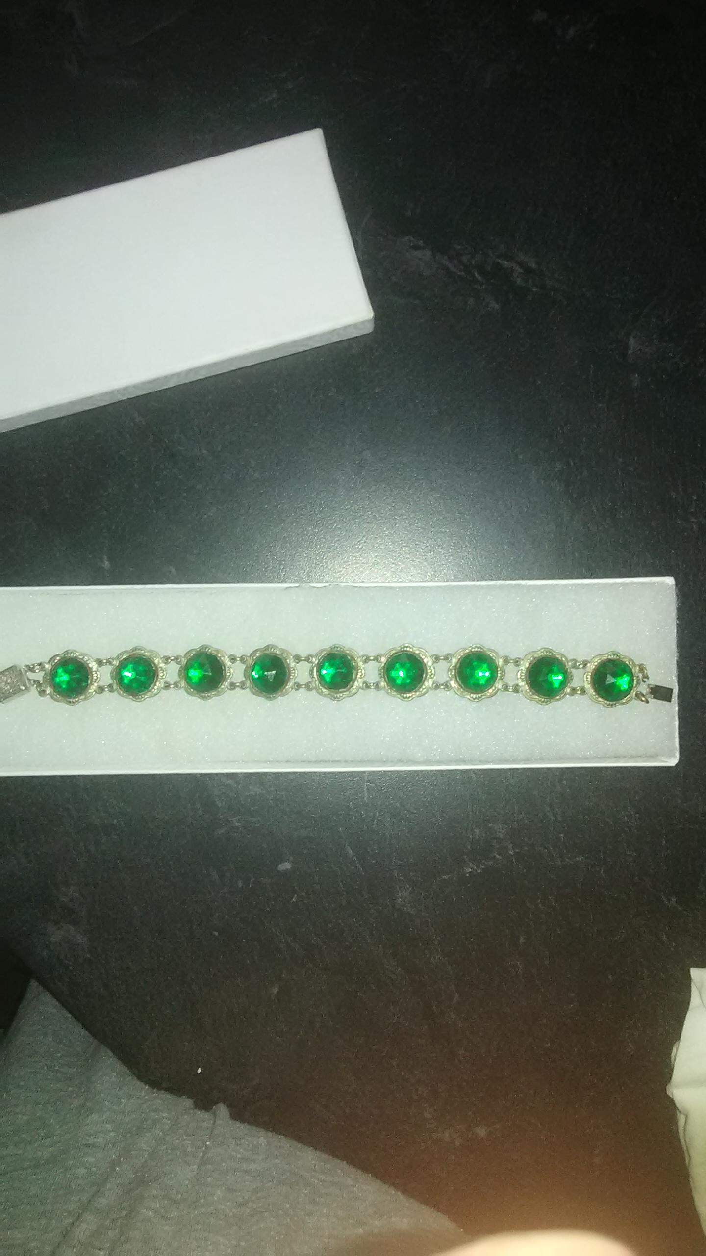 Silver bracelet with green stones