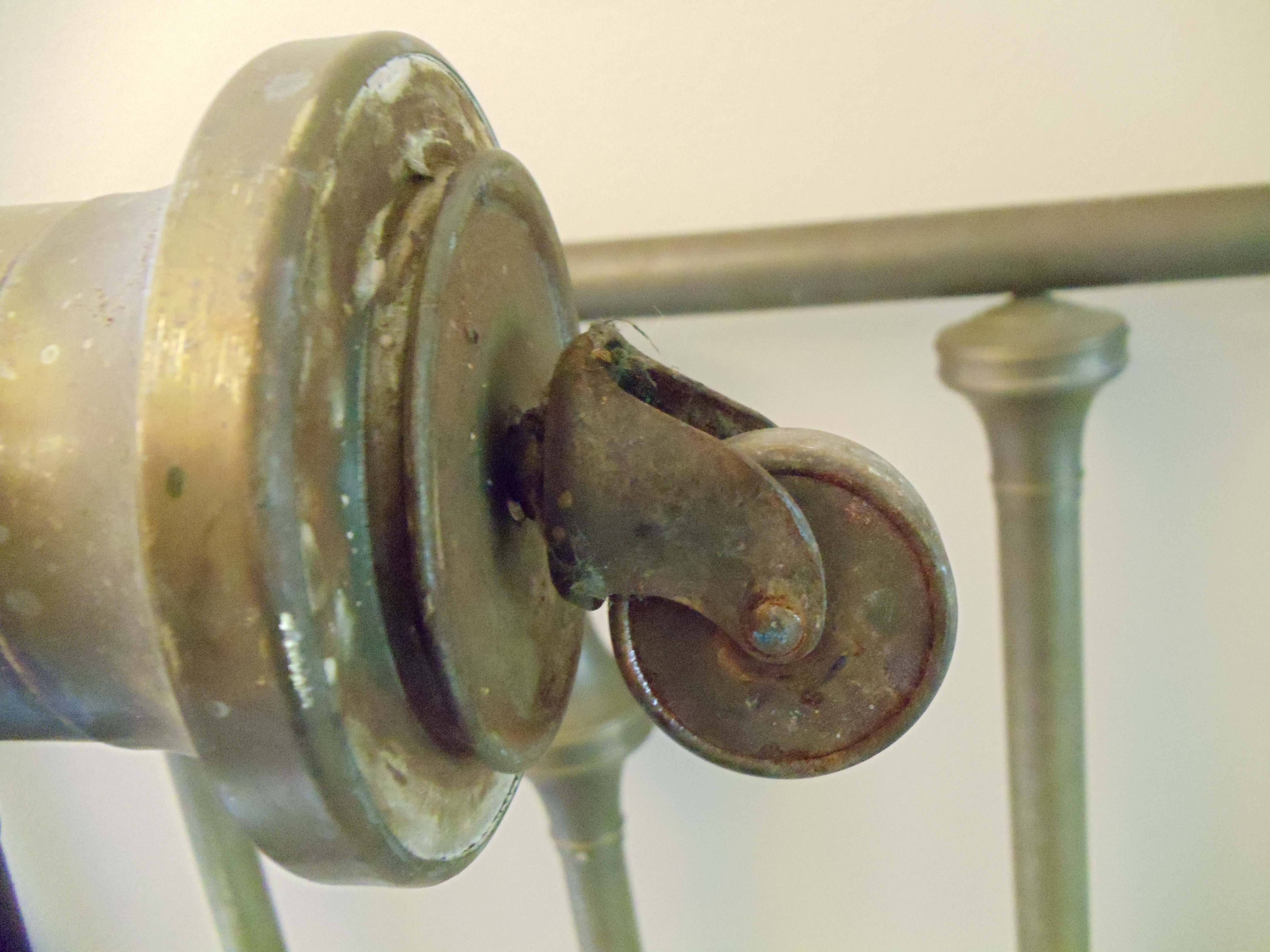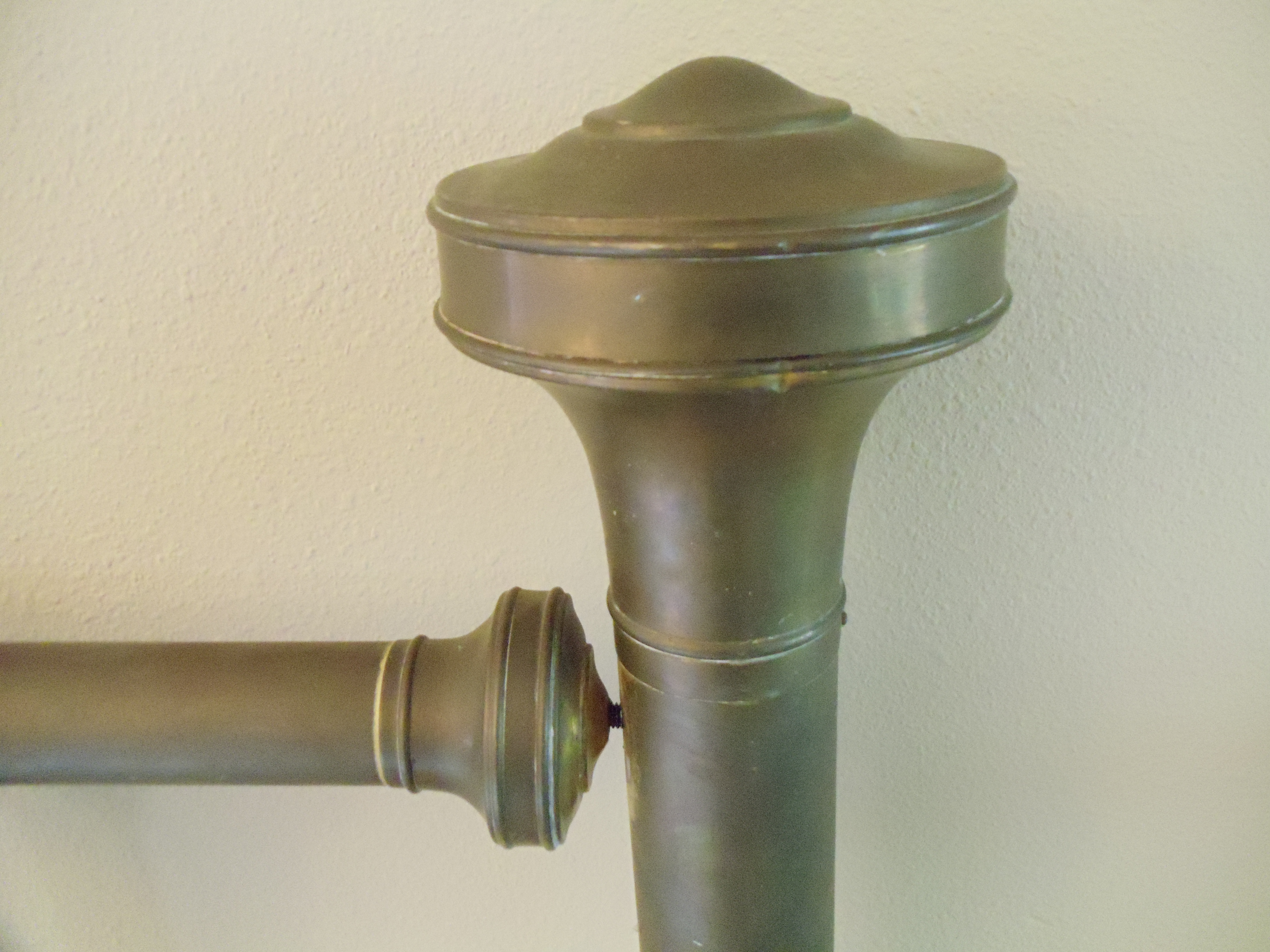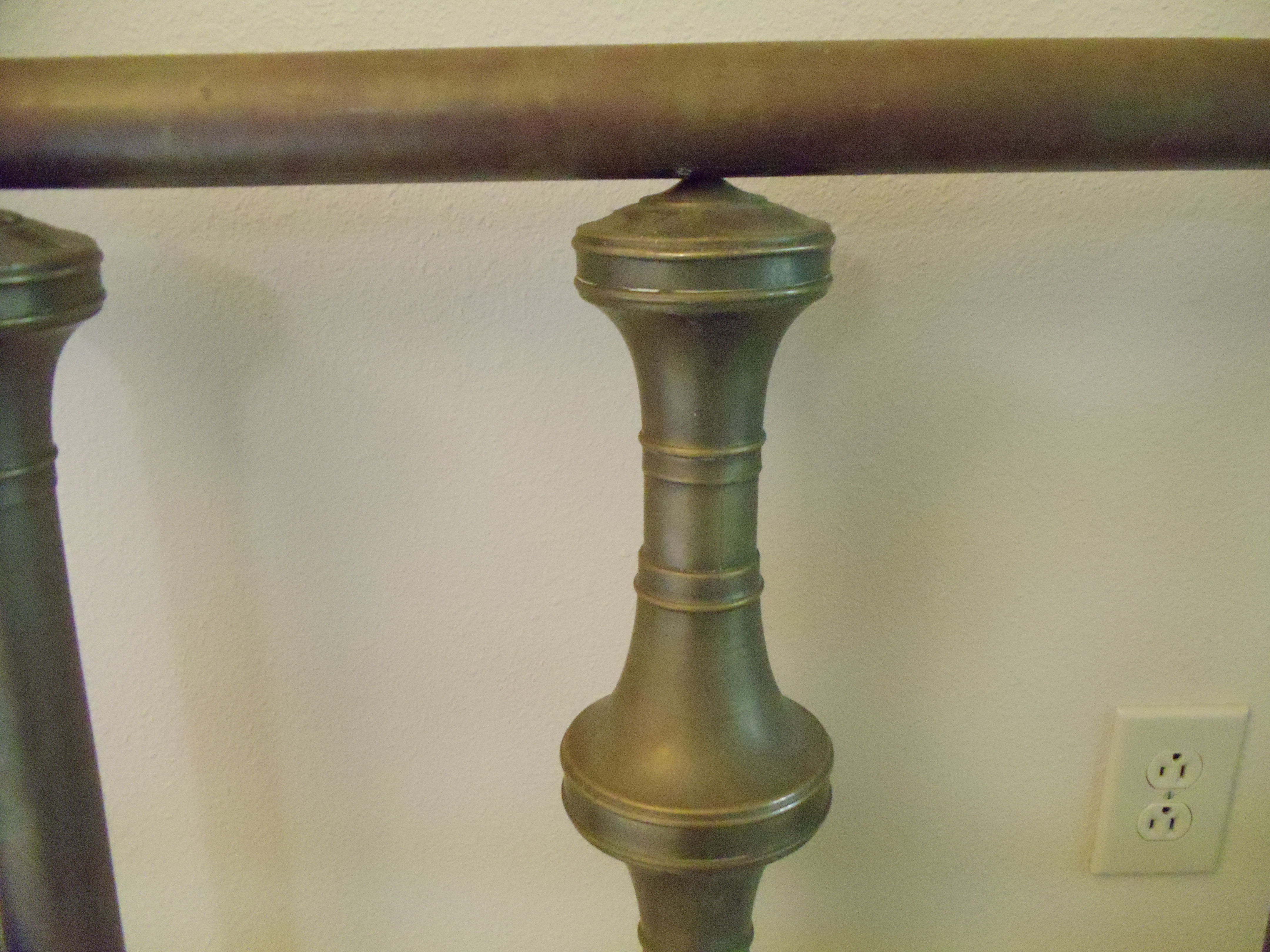 antique brass bed possible 100-200 old.  weighs 93 lbs.  may fit a full size.  no frame available for mattress.  good condition with one very small dent.   height 4' 11"  X width 5' 0.   foot board is 3' 3" high.  headboard is 4' 11".
