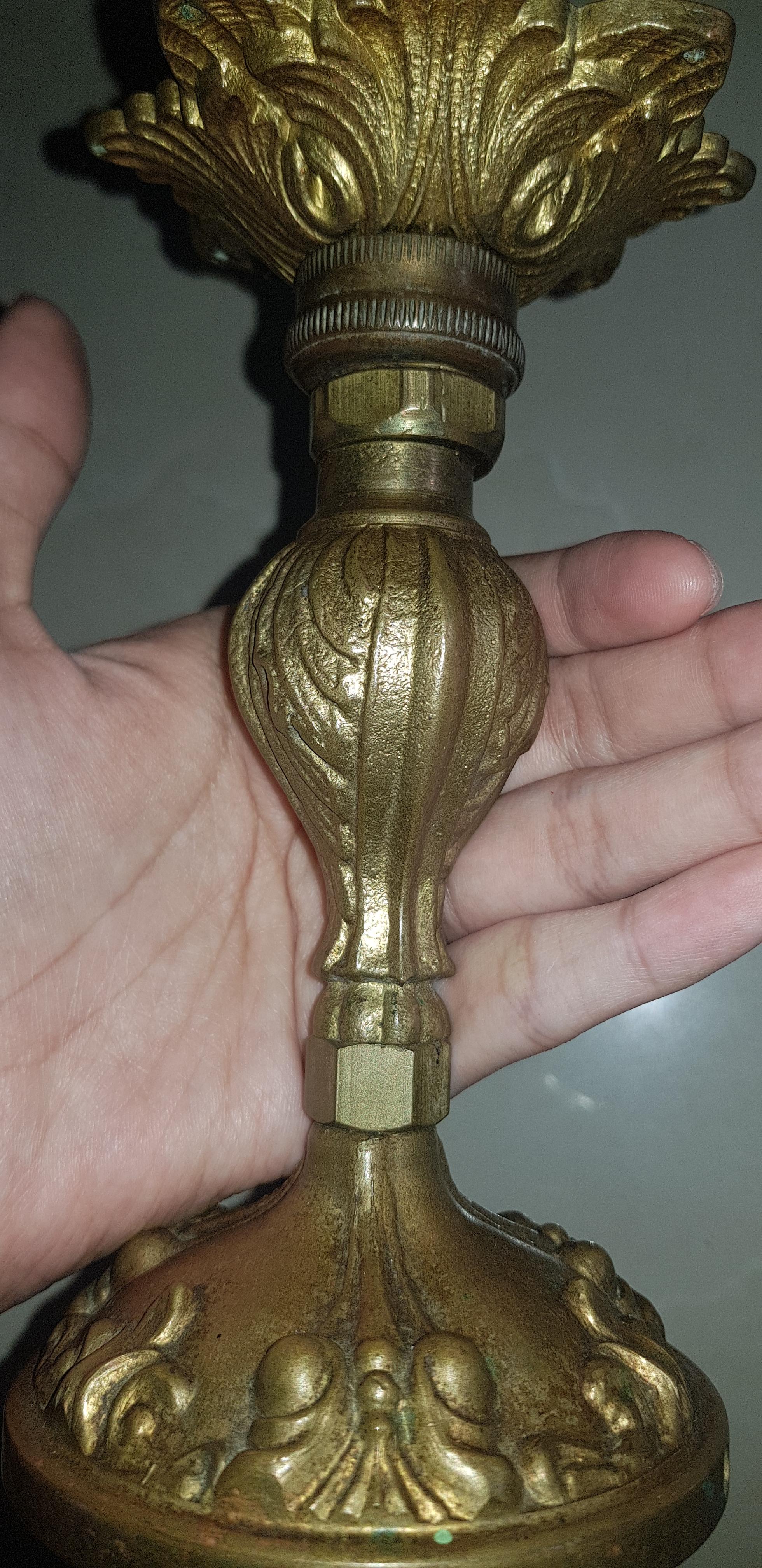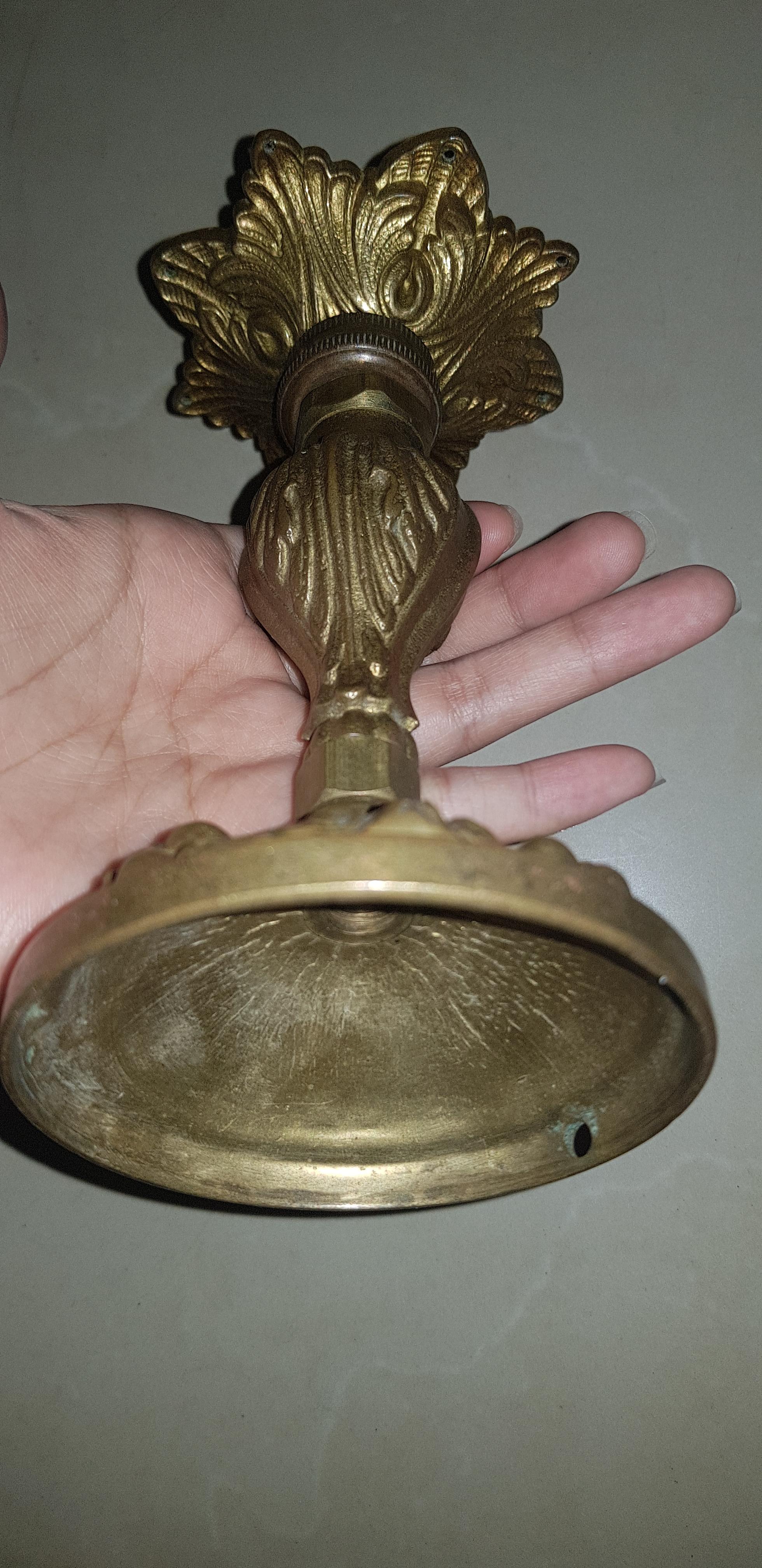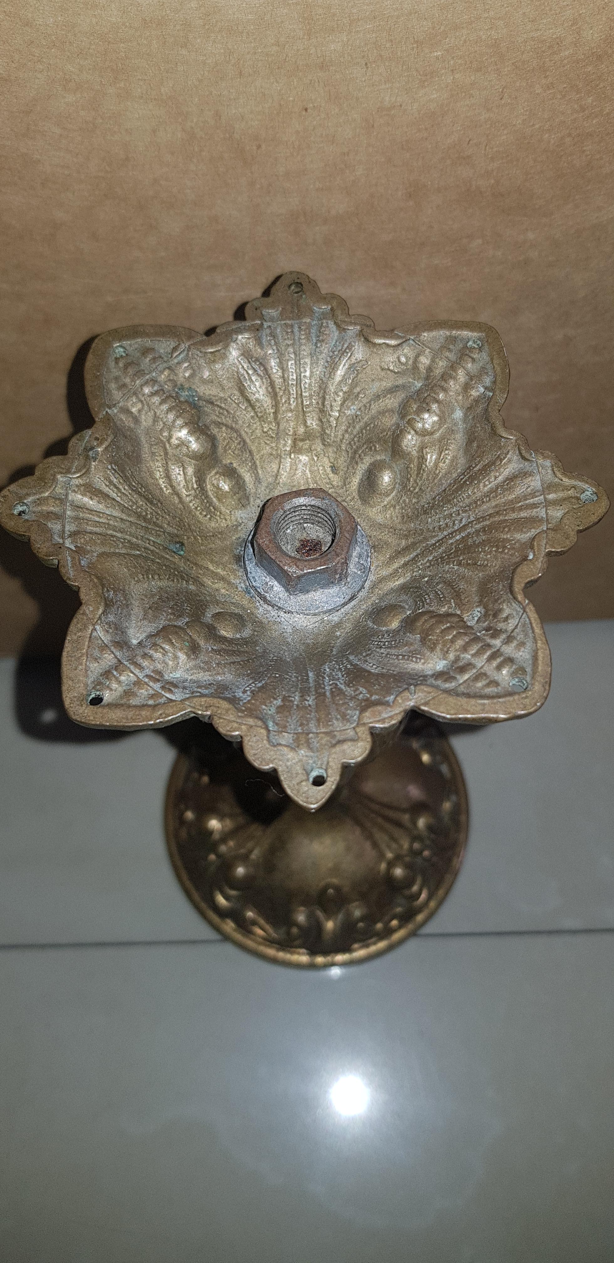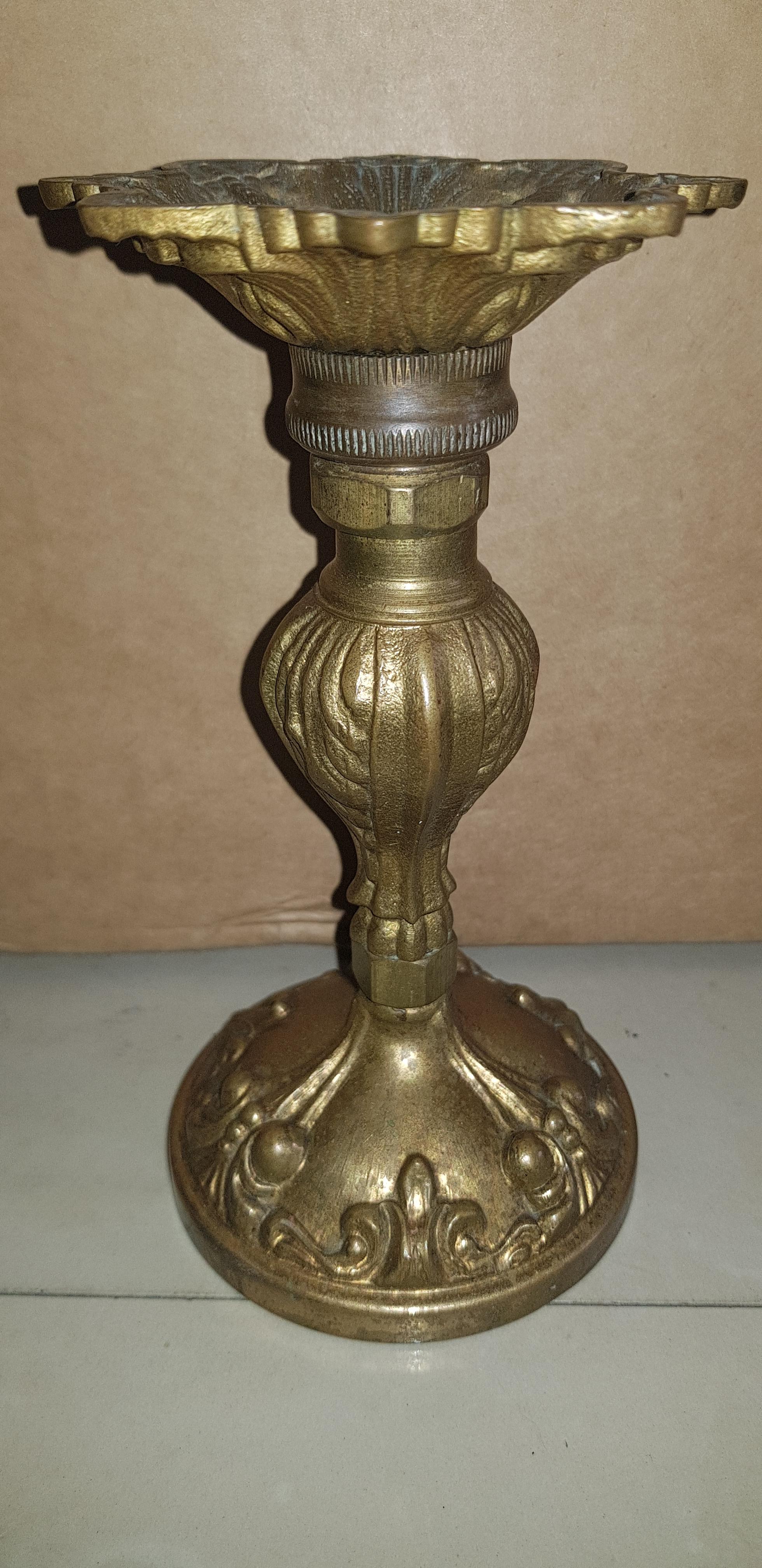It is a brass candle holder with classic design.