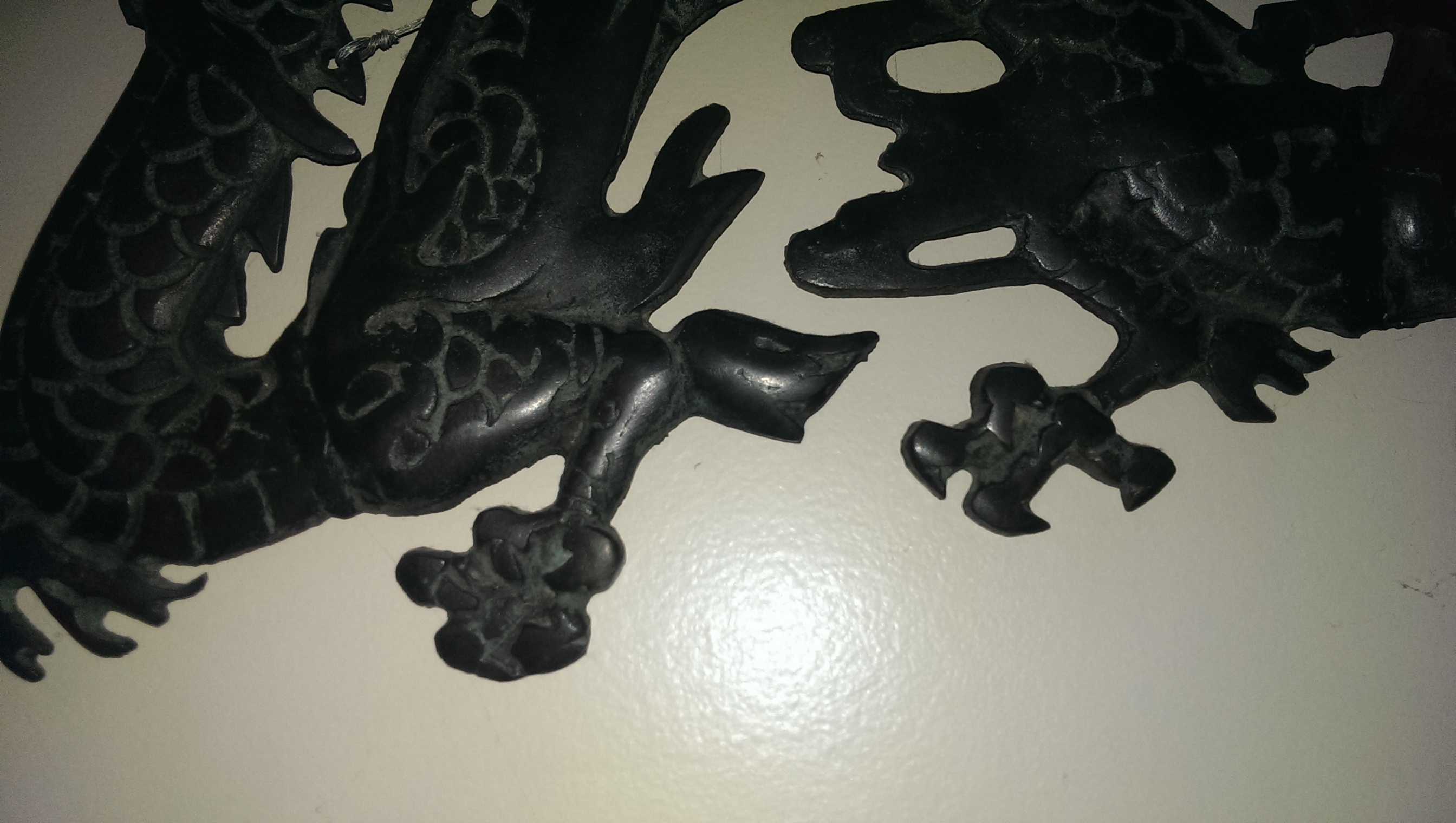 I saw this on Antique Road show a long time ago, they said it was a 1900's 5 Toed Chinese Dragon. It is made of brass with a black like patina to it. It's 27'' long x 11'' tall. Is it real or a reproduction? At the time they said it was worth 600 dollars, but that was years ago.