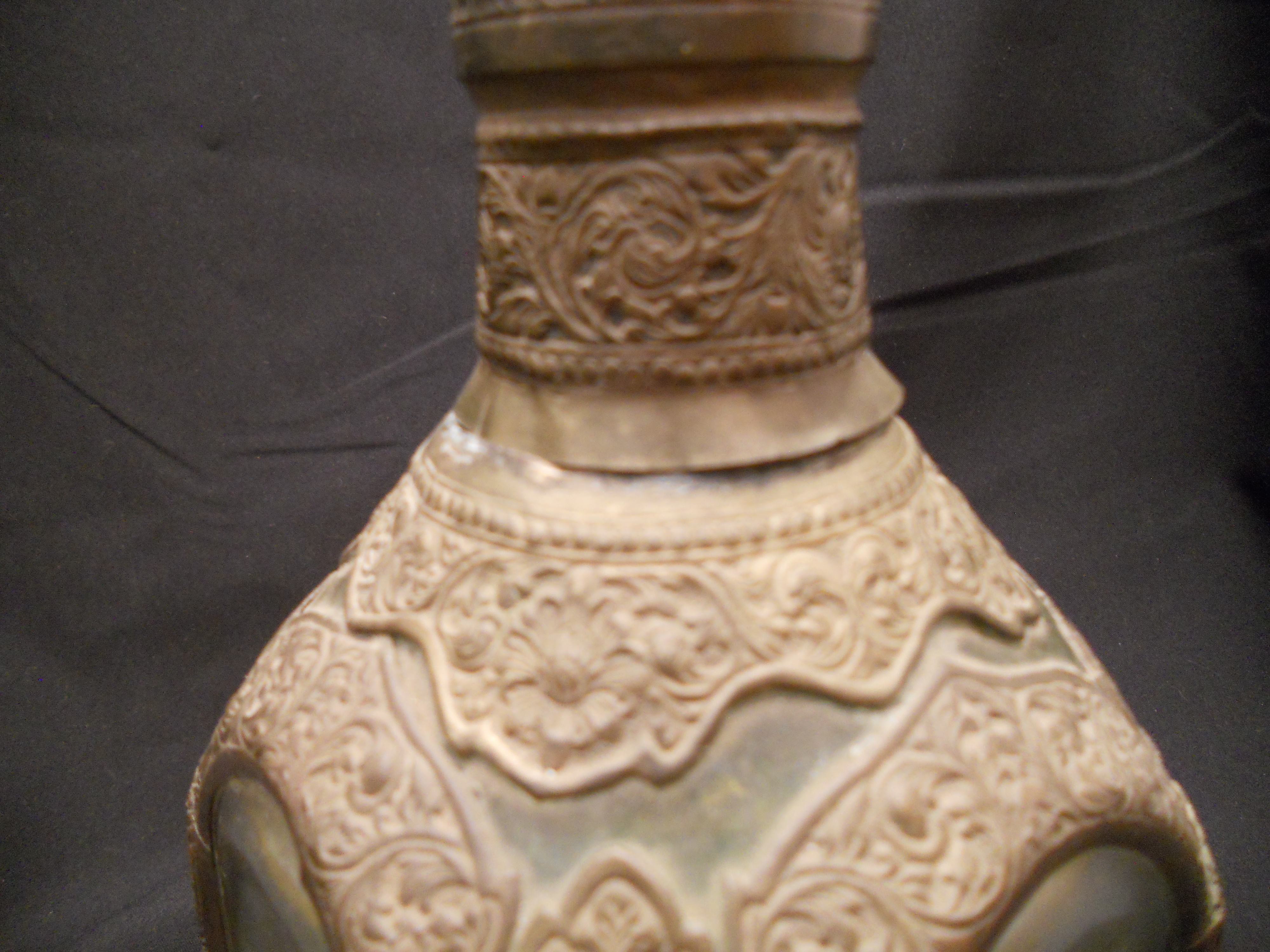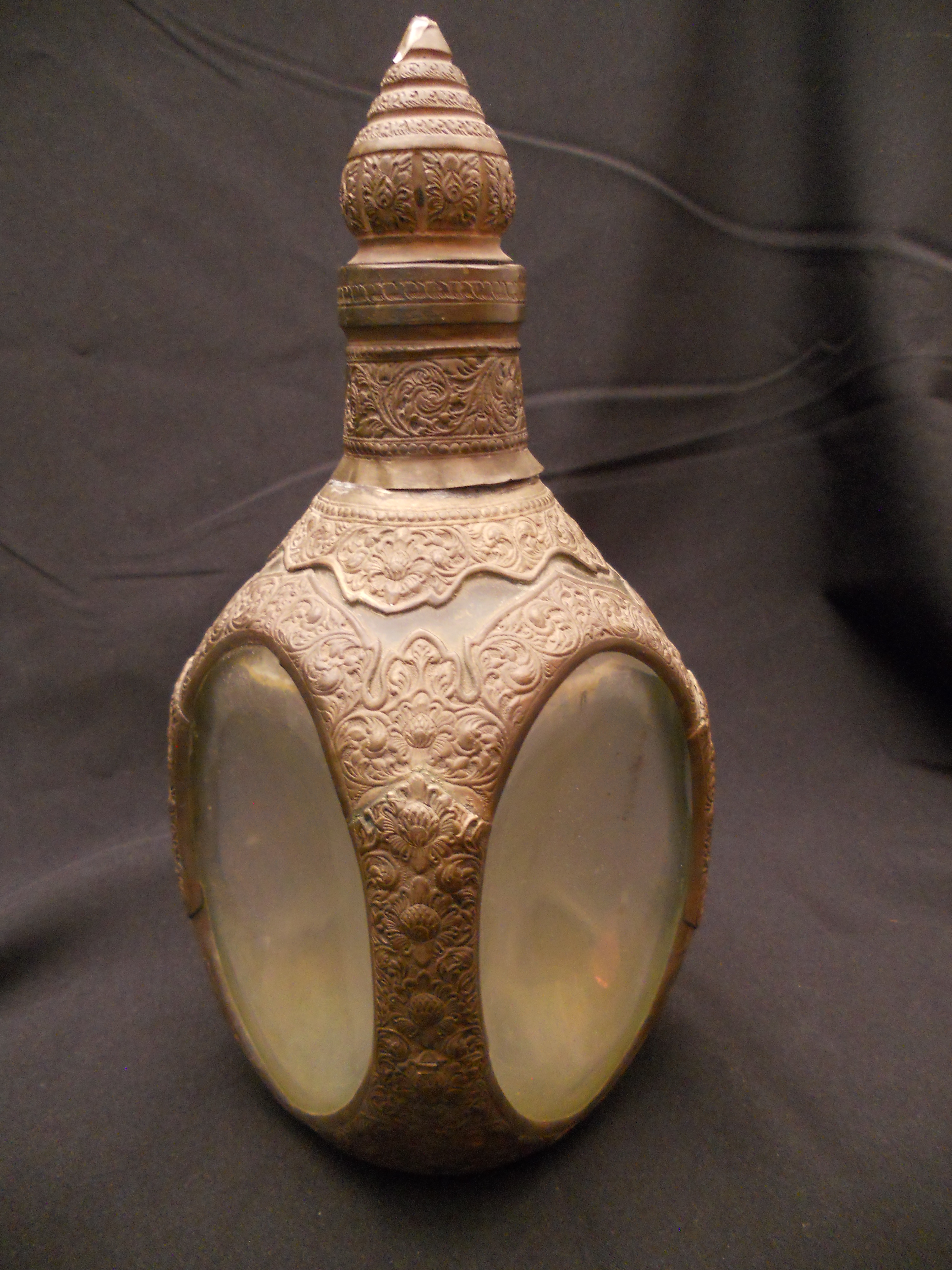 This is what i believe to be a 4 sided pinch bottle with a brass covering. Has a number rec no 708569 on the bottom
