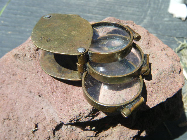 Small 3 lens unique antique brass magnifying glass, I don't know anything about it, the item has no name or numbers of any kind. It was given to me by a 100 year old man from New Zealand, I don't know if that is wher the item is from.
