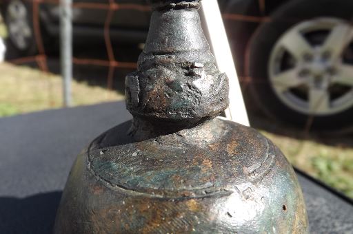 It looks like it was made in peices. A magnet sort of stick to it, but not grip hard. it has patina. It looks very warn.