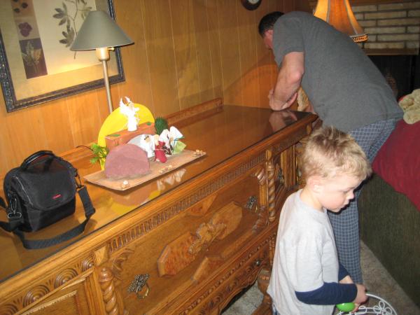 Carved, original hardware, but piece has been professionally refinished. We also have the matching dining table with four chairs (in original condition - has not been refinished).