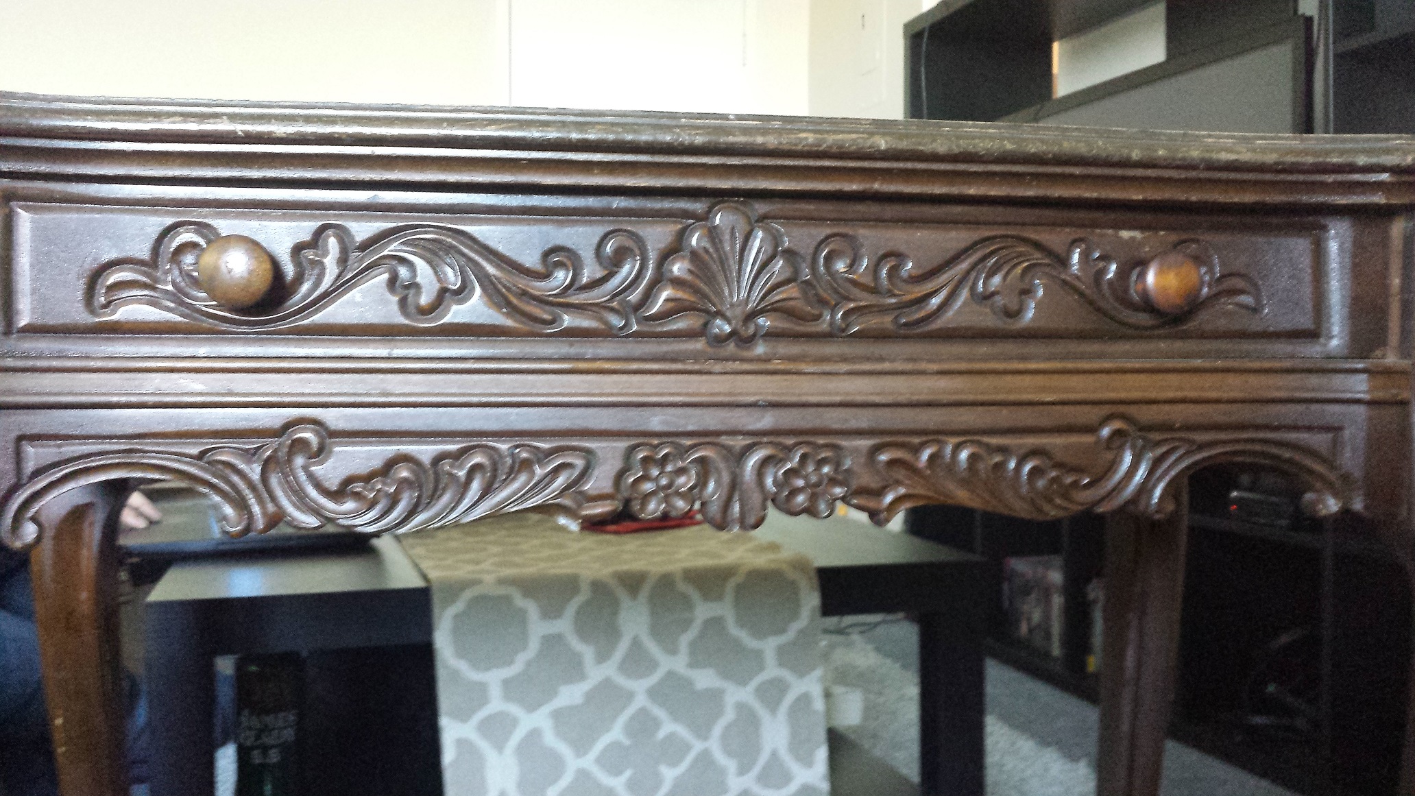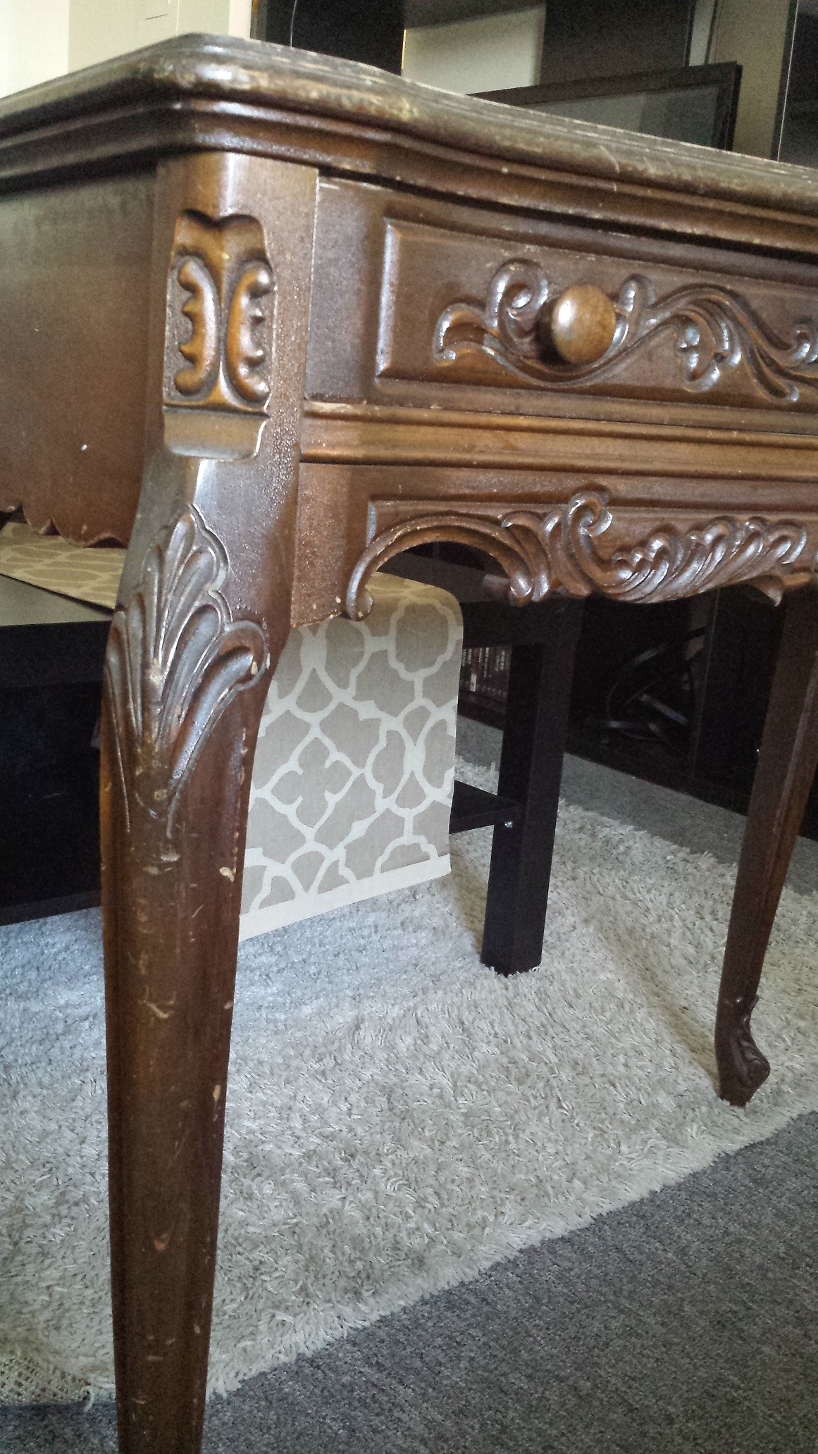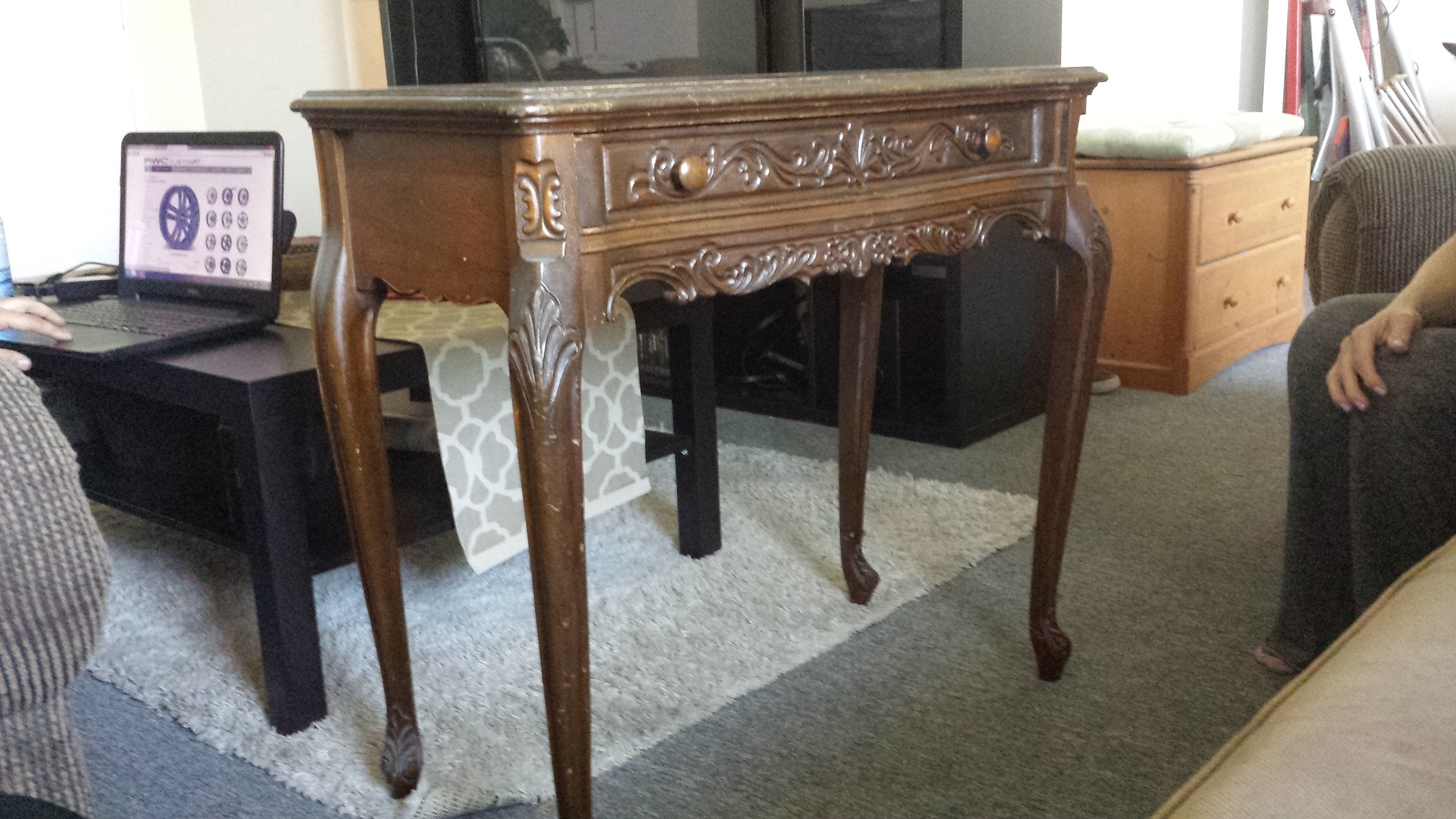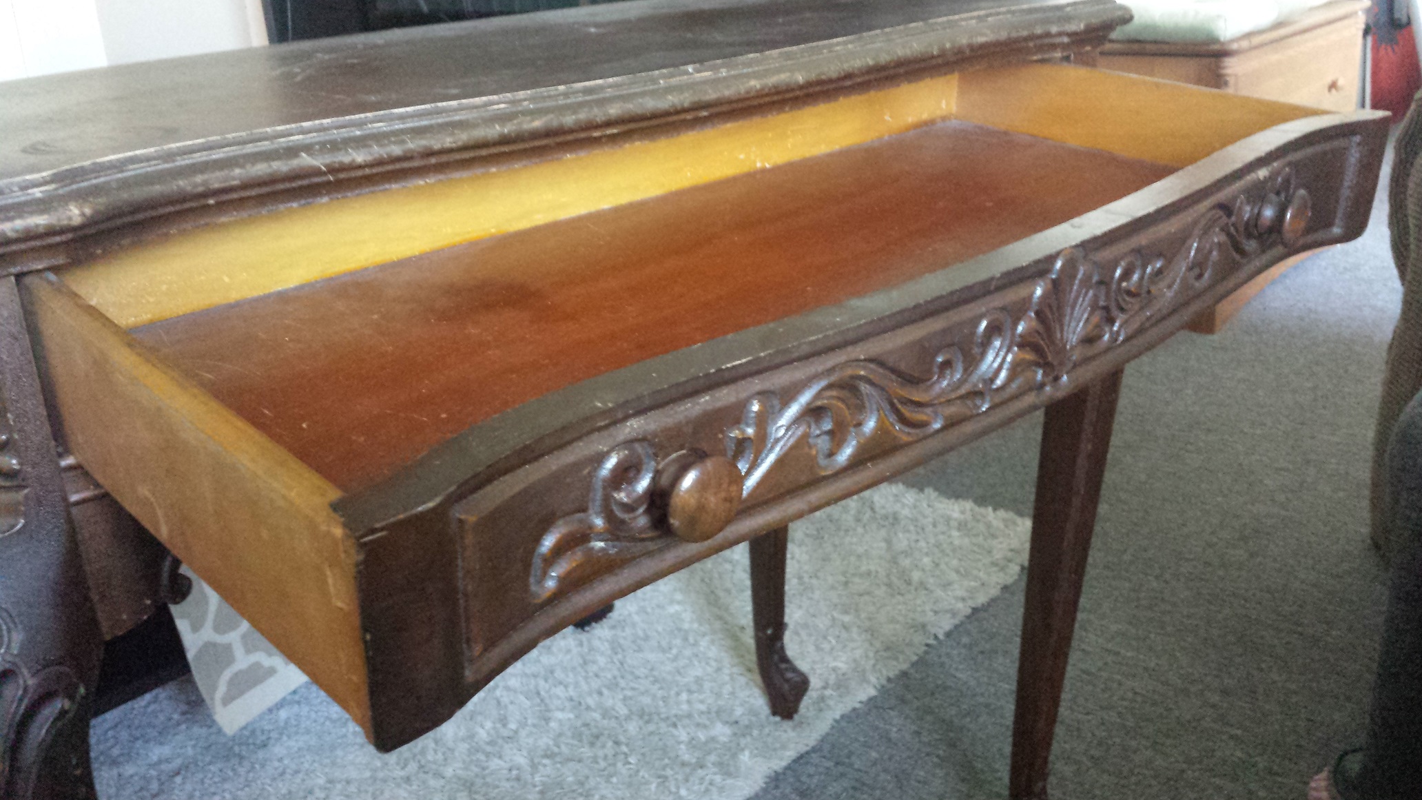 What can you tell me about this piece? It as my moms. From what I remember it has been around since the 60s or 70s. I did not find any marking or stickers. Do you know who made it? How much it would be worth? Provincial legs? What kind of wood?
