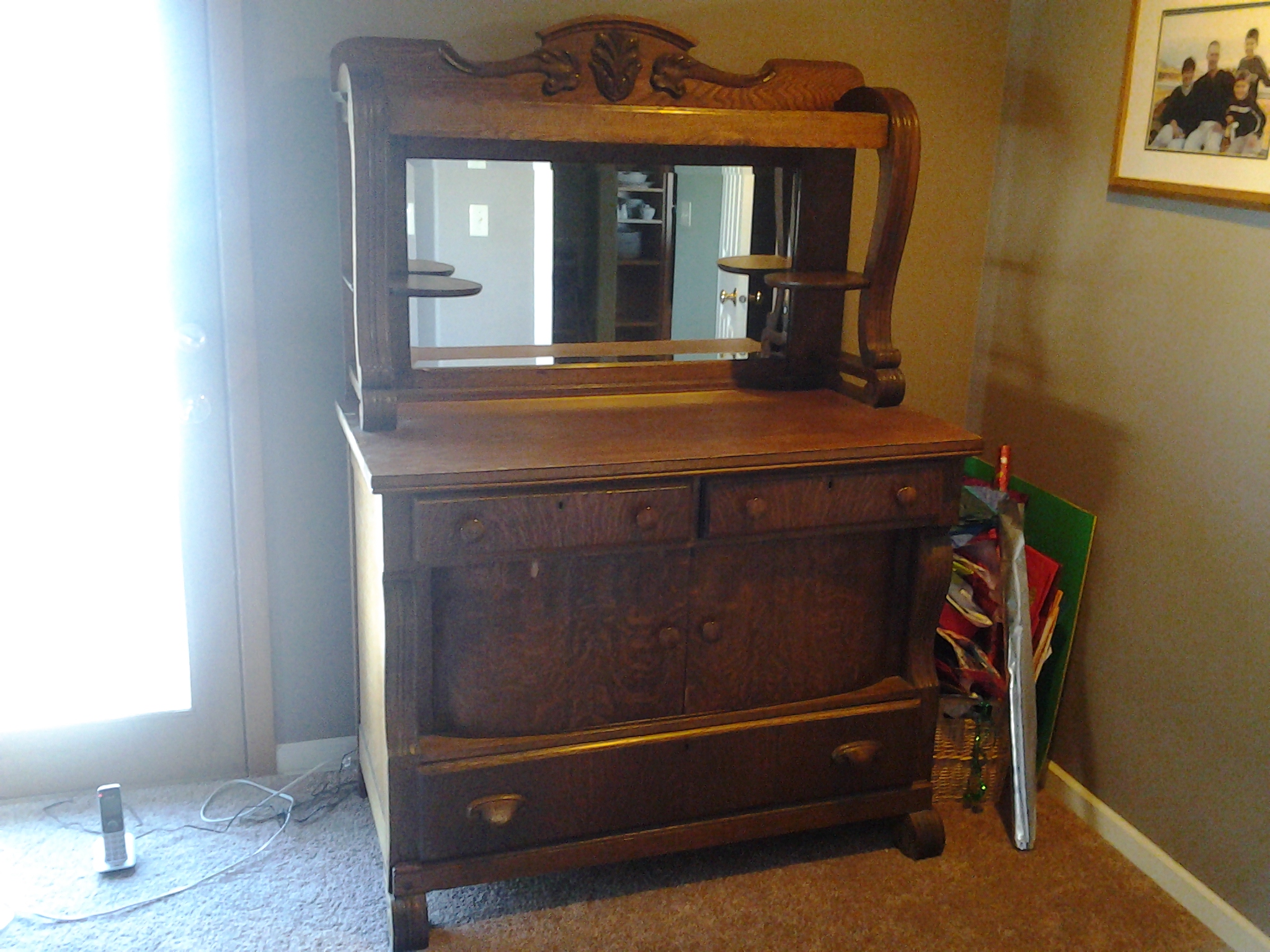 3 drawer 1 cabinet mirrored buffet. 48 w x 37 h 71 h including mirror x 24 d.
