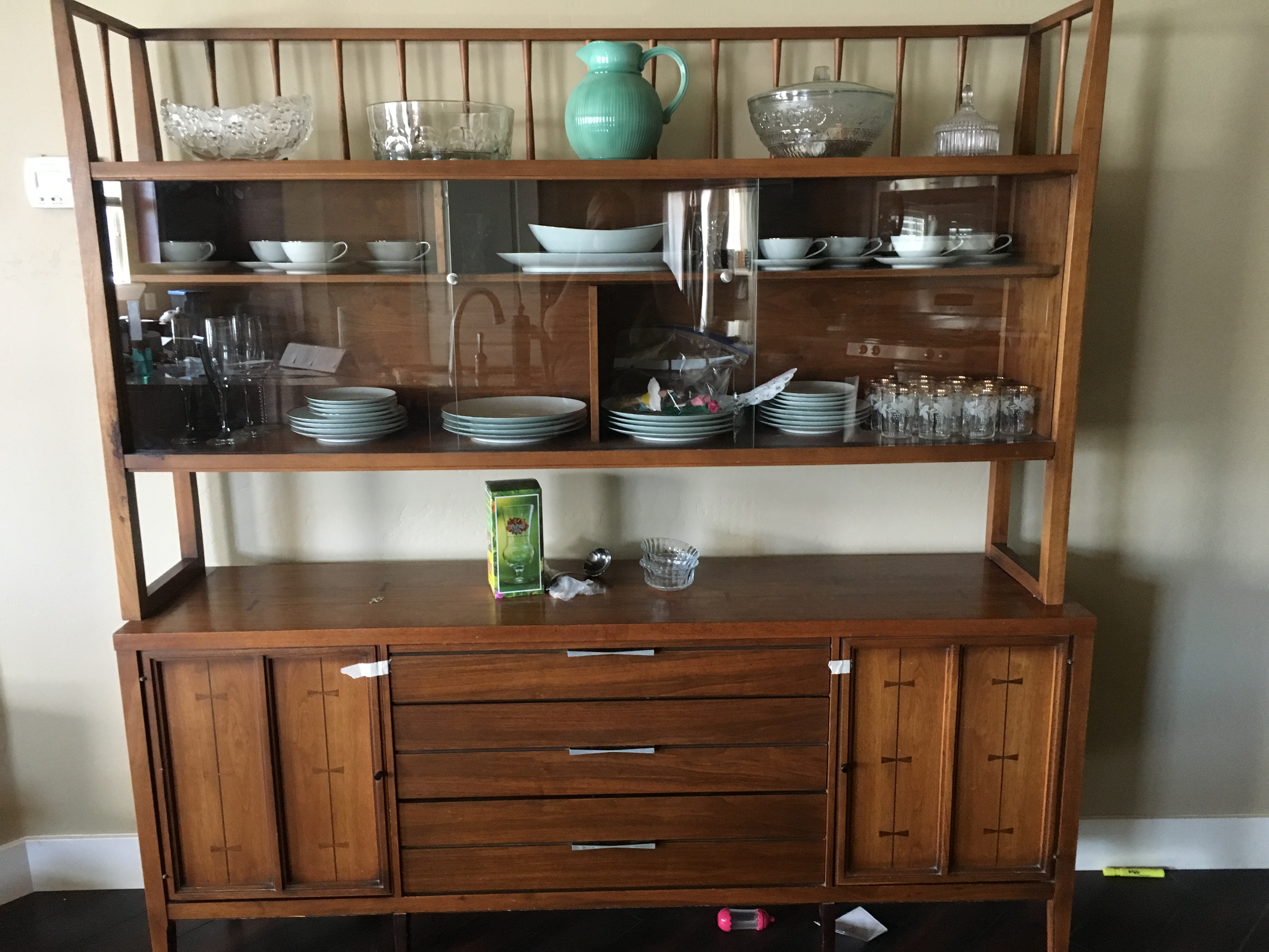This is a antique buffet with a removable hutch. Has bow tie inlays. It belonged to my great grandmother. I thought it was a Lane brand, but I cannot find any markings on it. I would appreciate any info about this piece including value.