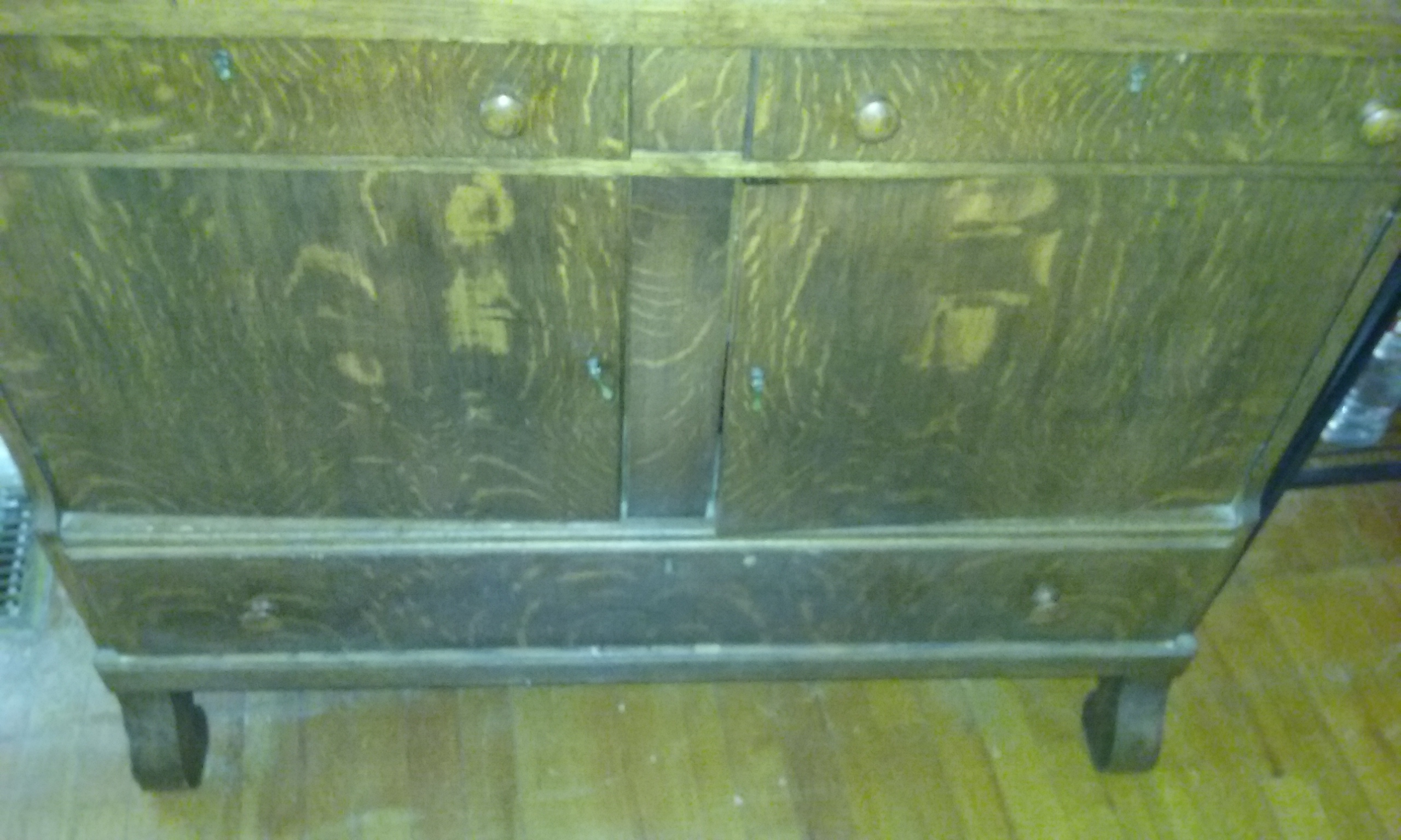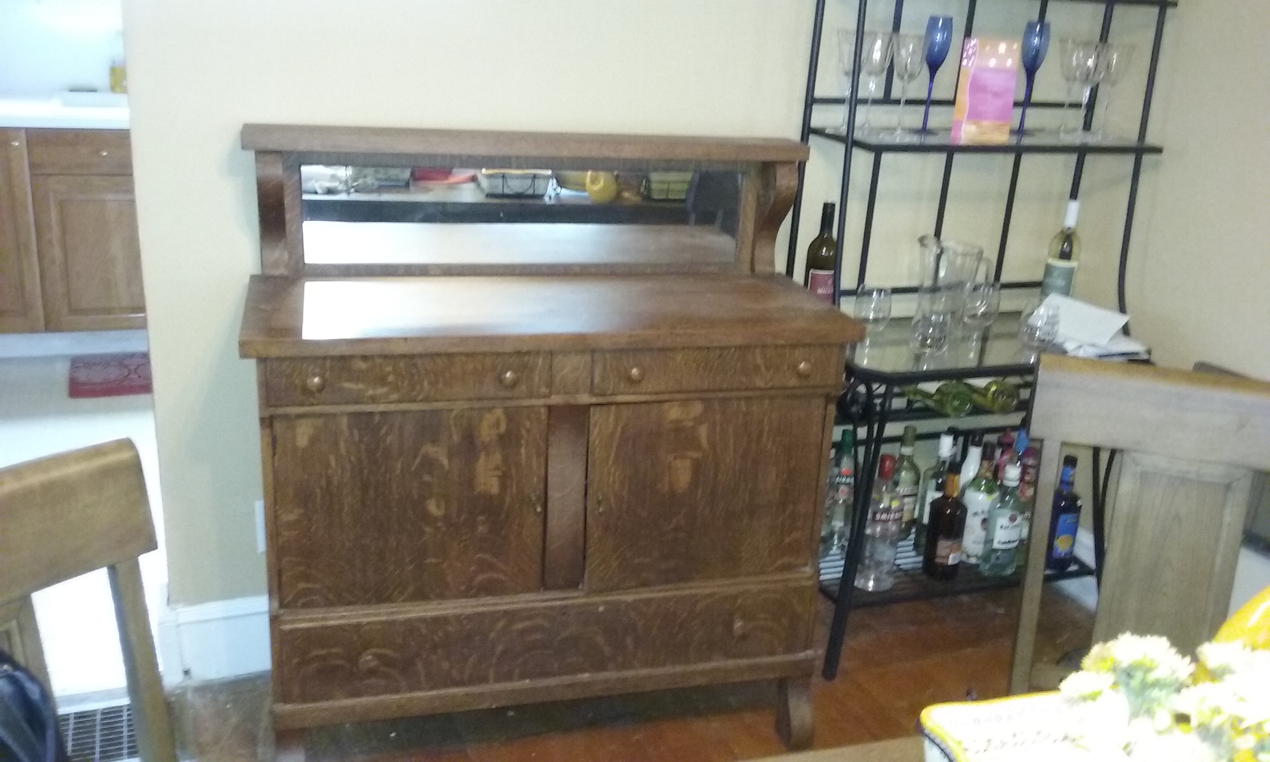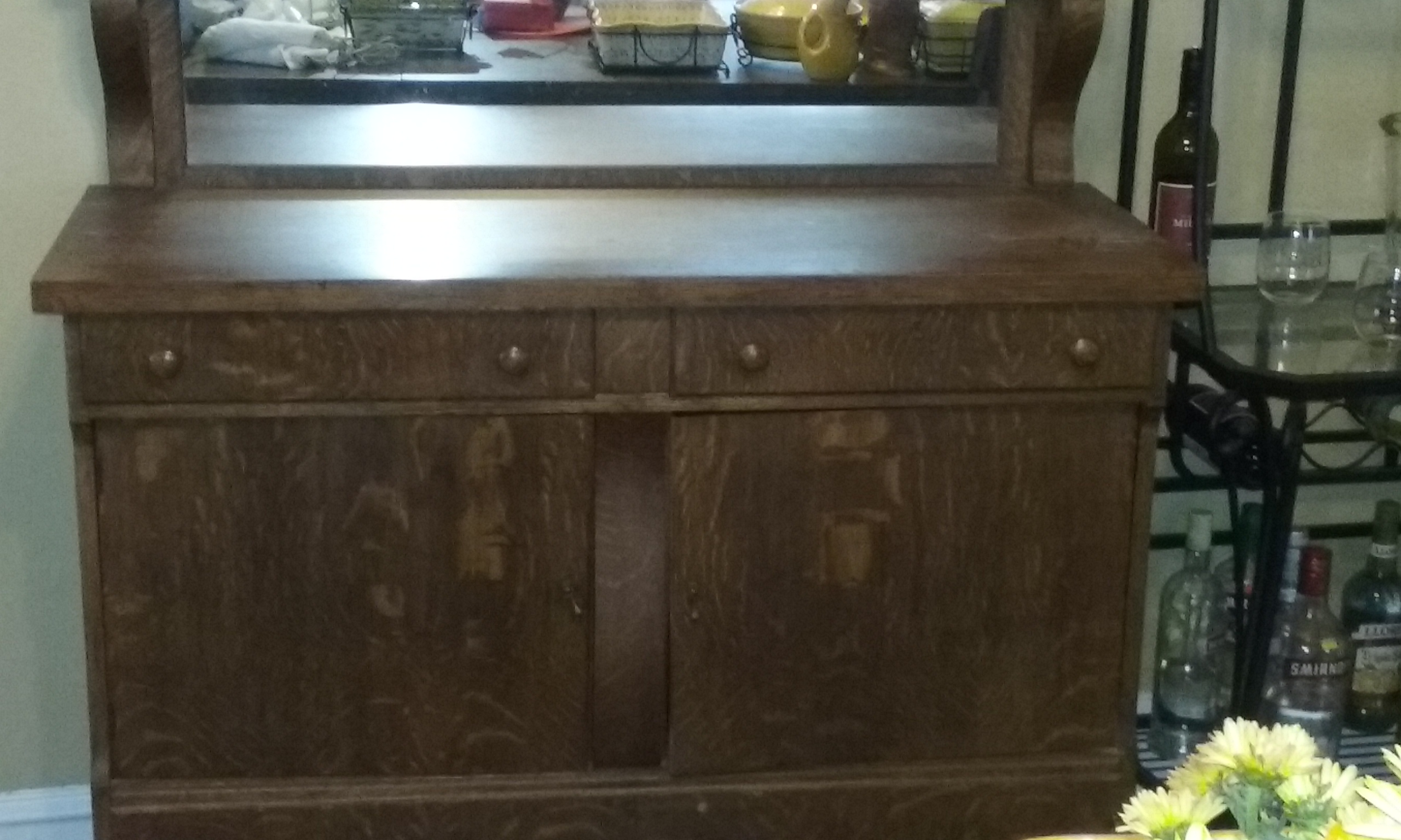 Antique buffet table with mirror. We believe it to be tiger oak.