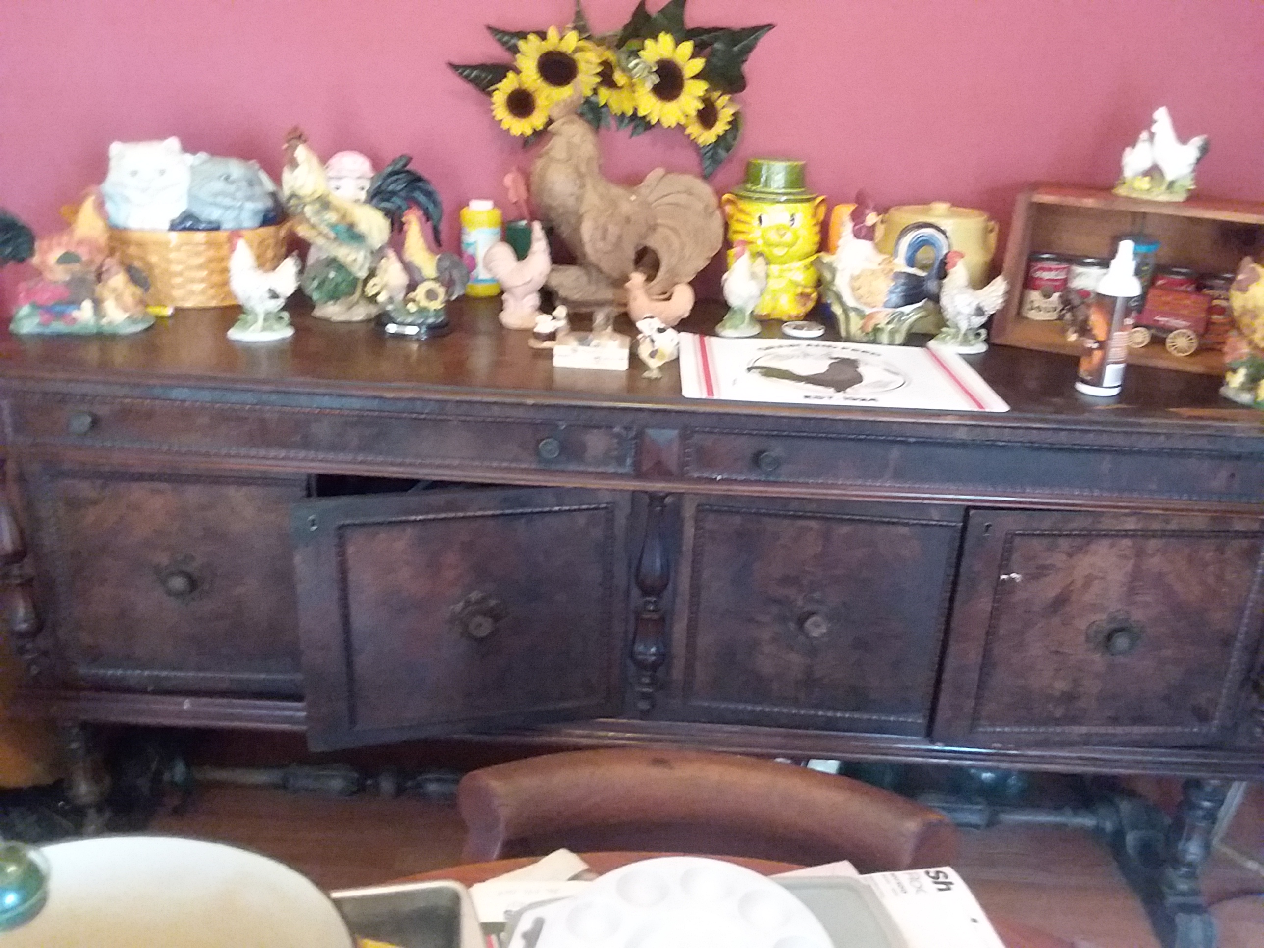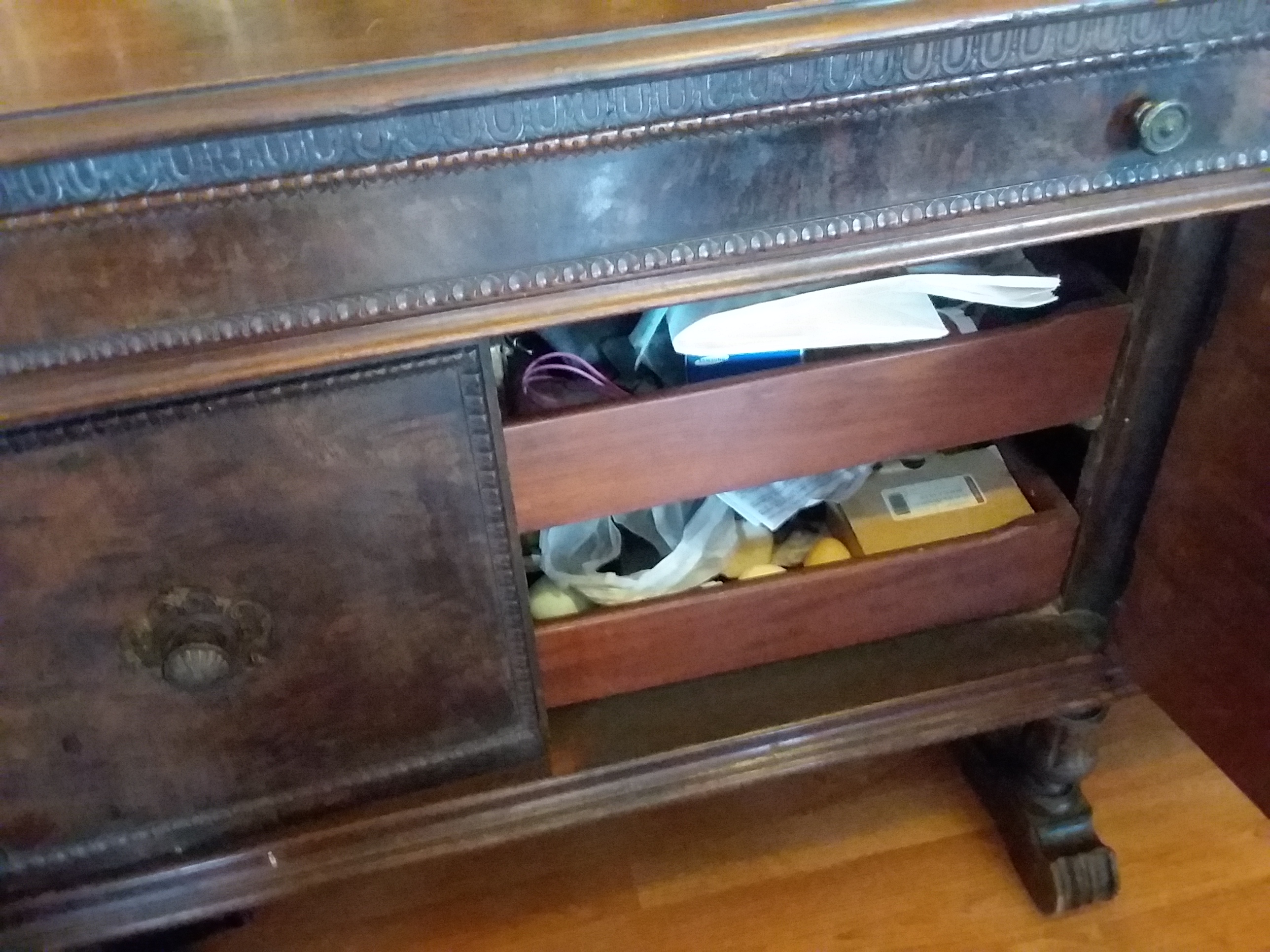 buffet has 2 drawers on each side behind 2 doors it has 2 drawers at the top