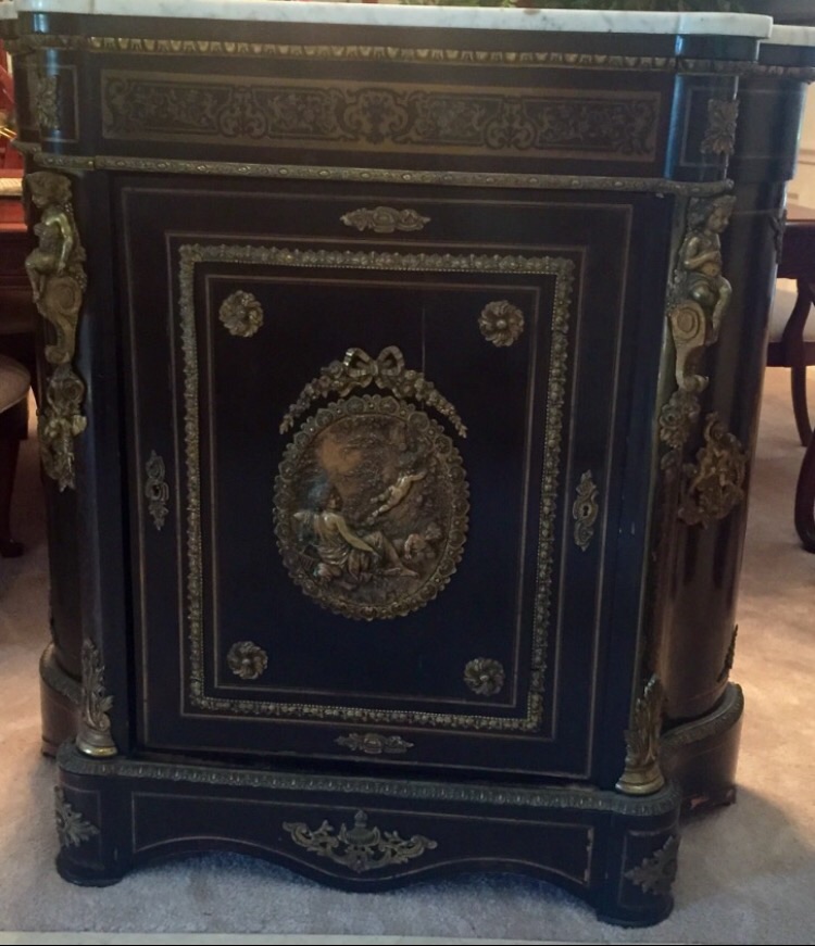 I have this antique cabinet I bought from someone online. It was in their shed. It's size is 42.5 H x 40.5 W x 15.5 D. Marble on top is perfect and is 3/4 inch thick.