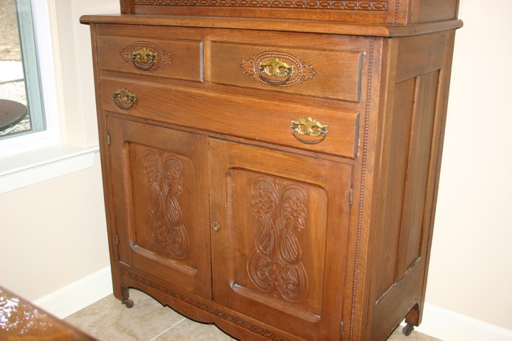 We have had this cabinet for about 30 years. When purchased we were told that it was made in the late 1890's. I cannot find any maker's mark anywhere. There are stencils on various parts of the cabinet such as the back, drawer bottoms, and inside in various places. These stencils read "H C Hansen, Holstein IA" and "J Roberts, Sterling Nebraska". I assume these were packing crates that were used to construct the piece. It is 92" high and 38 1/2" wide. I would much appreciate any info anyone might have on the manufacturer of the piece and approximate value.