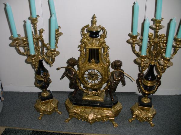 antique candleabras and clock