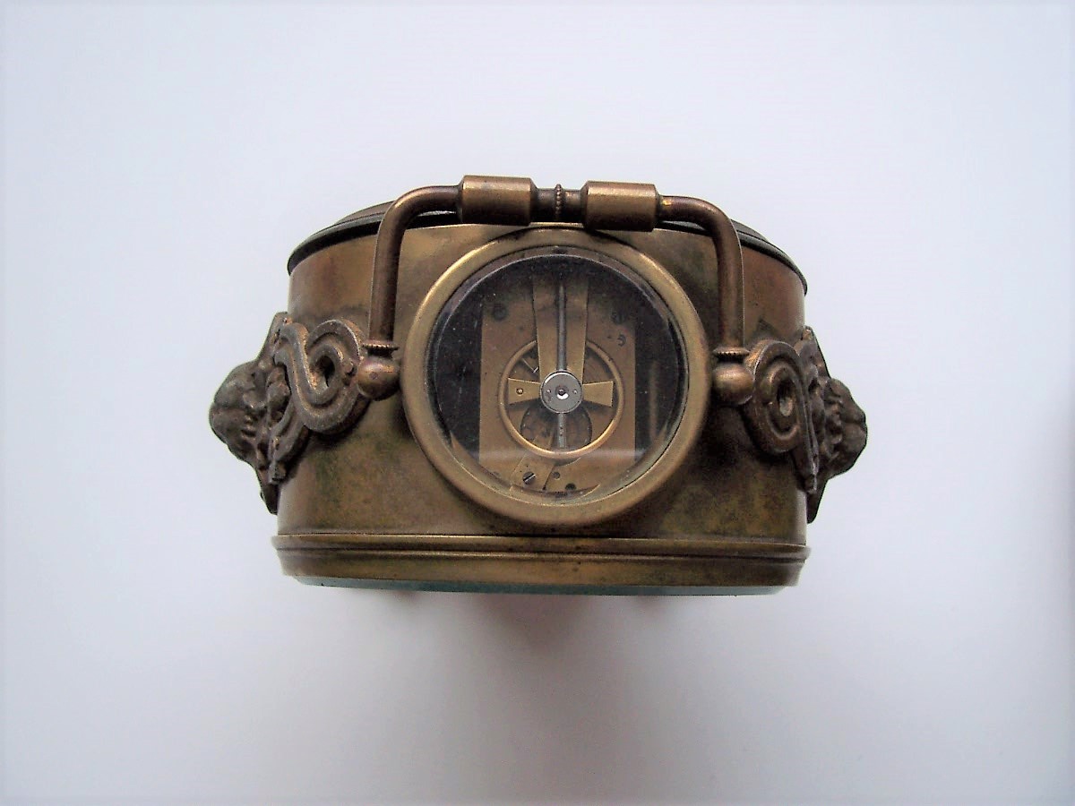 My father used to collect antique clocks. I'm 53 now and this clock has always been in the house. I was always told it is a carriage clock. I heard mention of a mark that was looked up and "Napoleon's brother's clock maker" but I can't find a mark other than a number scratched on the inside that looks like 701 or 707. It's about 6 inches tall and quite heavy. It, or at least some of it, looks like brass to me. Thanks.