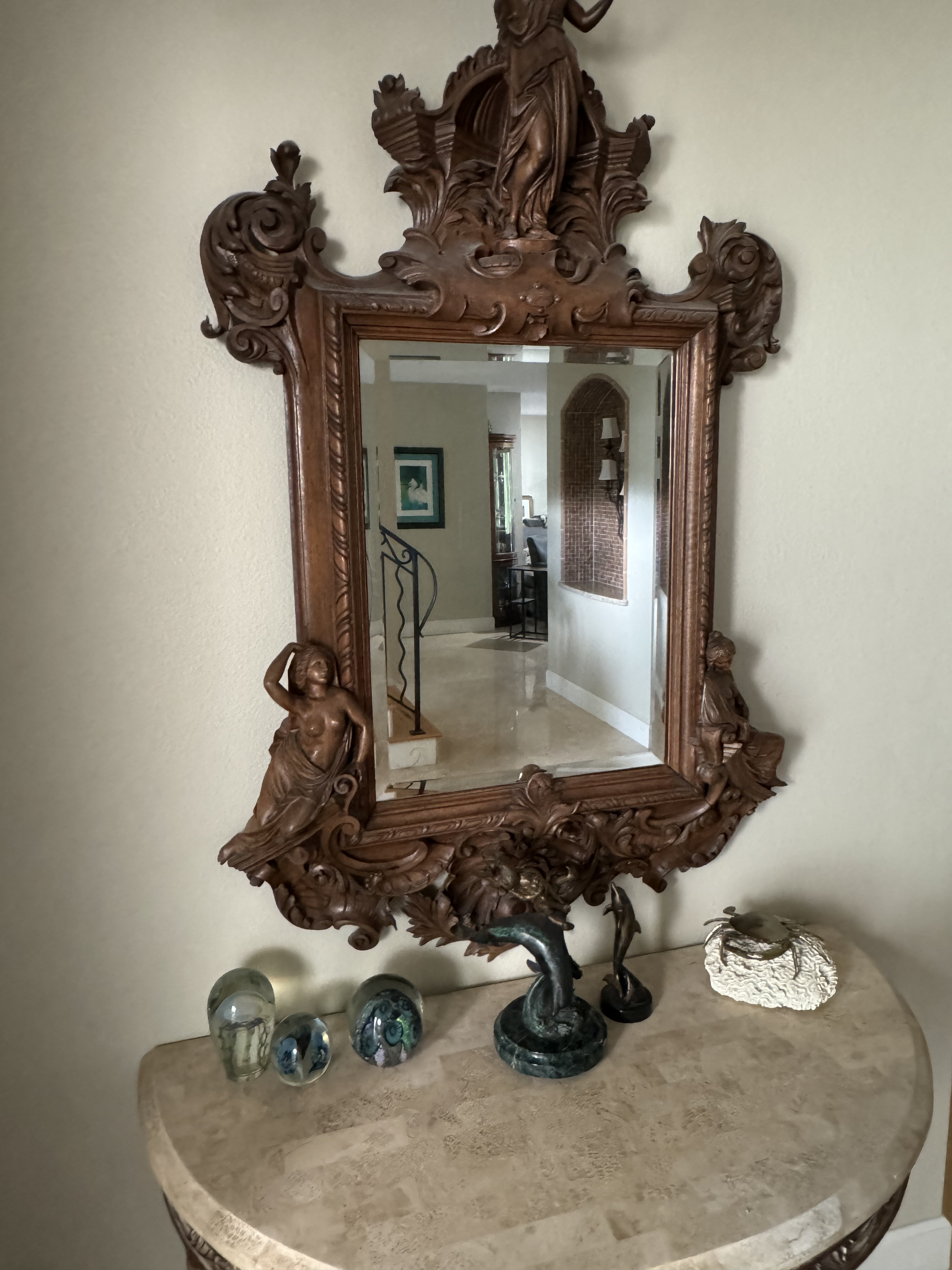 Antique Carved Wood Mirror. Dating to c. Unlock the full appraisal for complete details.