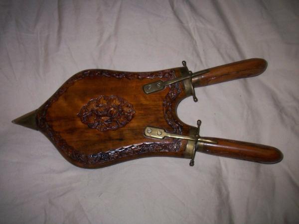 Antique carving set in good condition, ornate carving, knife and fork have light rust near base, not sure of history.