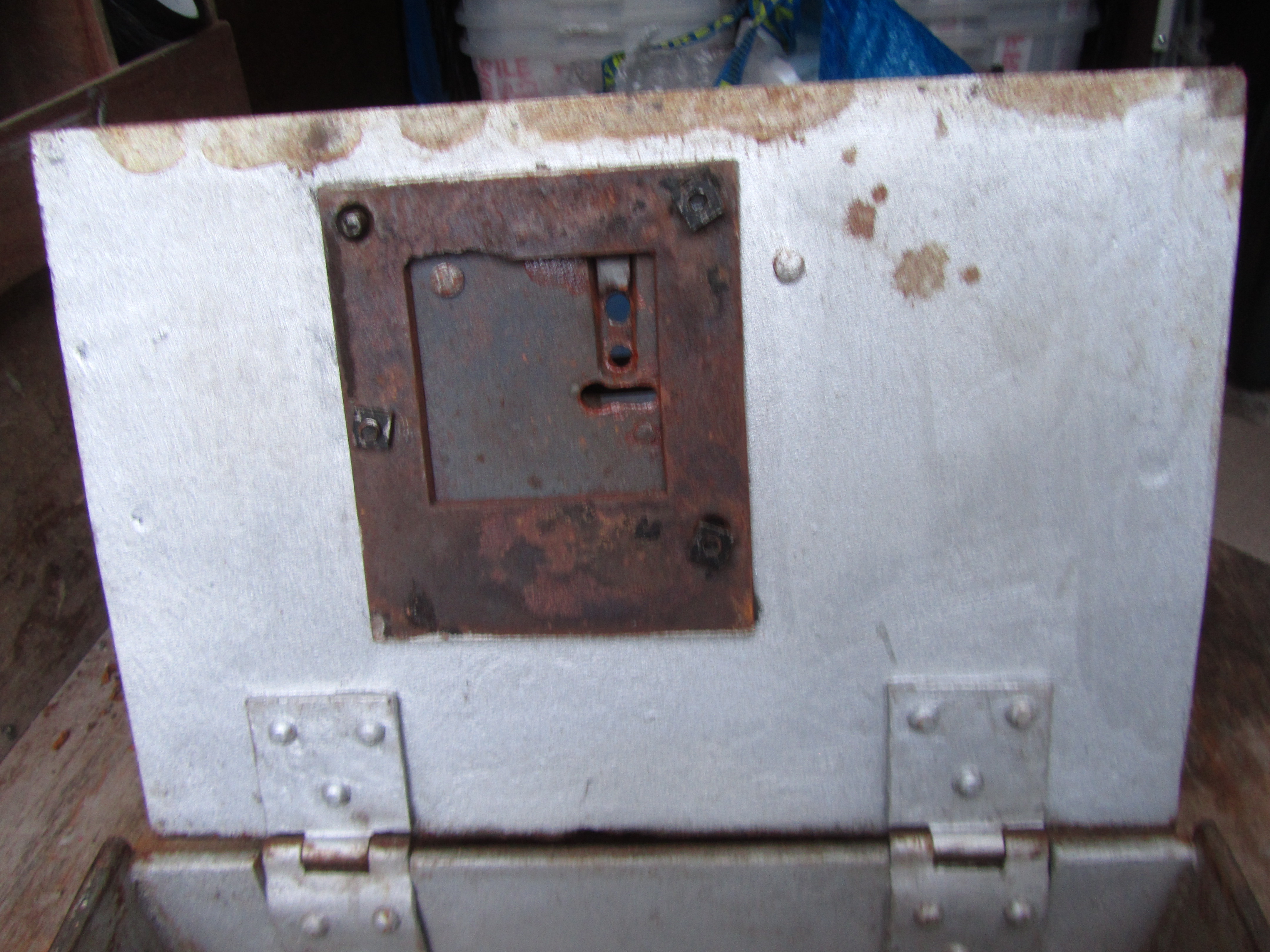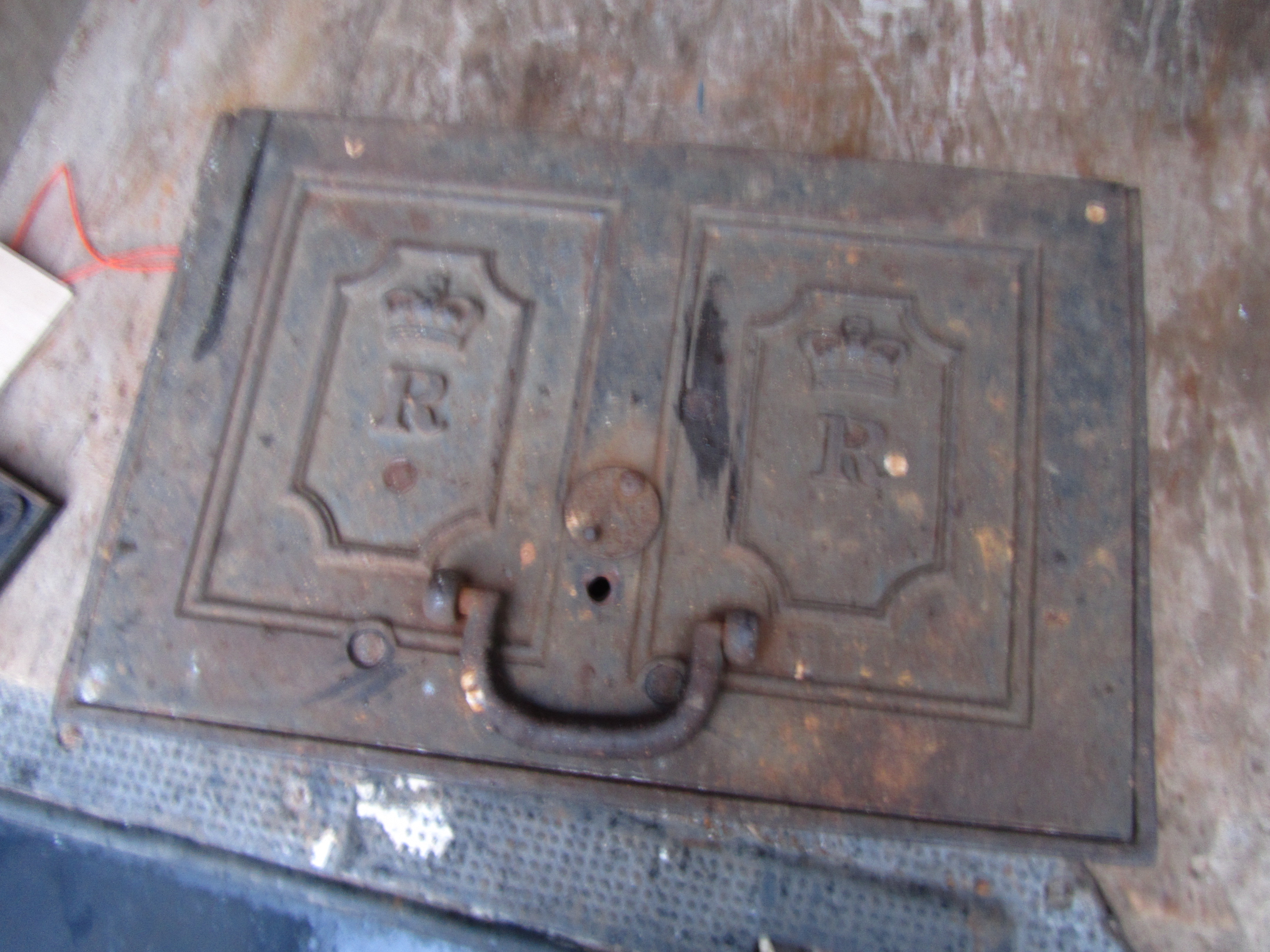 It is cast iron with a crown over the letter R. It seems to be old and maybe was once a royal mail lock box or someyhing to do the the royal family as regina is used.