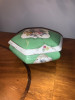 The dish is 9 1/2 inches long, 4 1/4 inches long. It is hand painted with raised enamel flowers and gold trim.