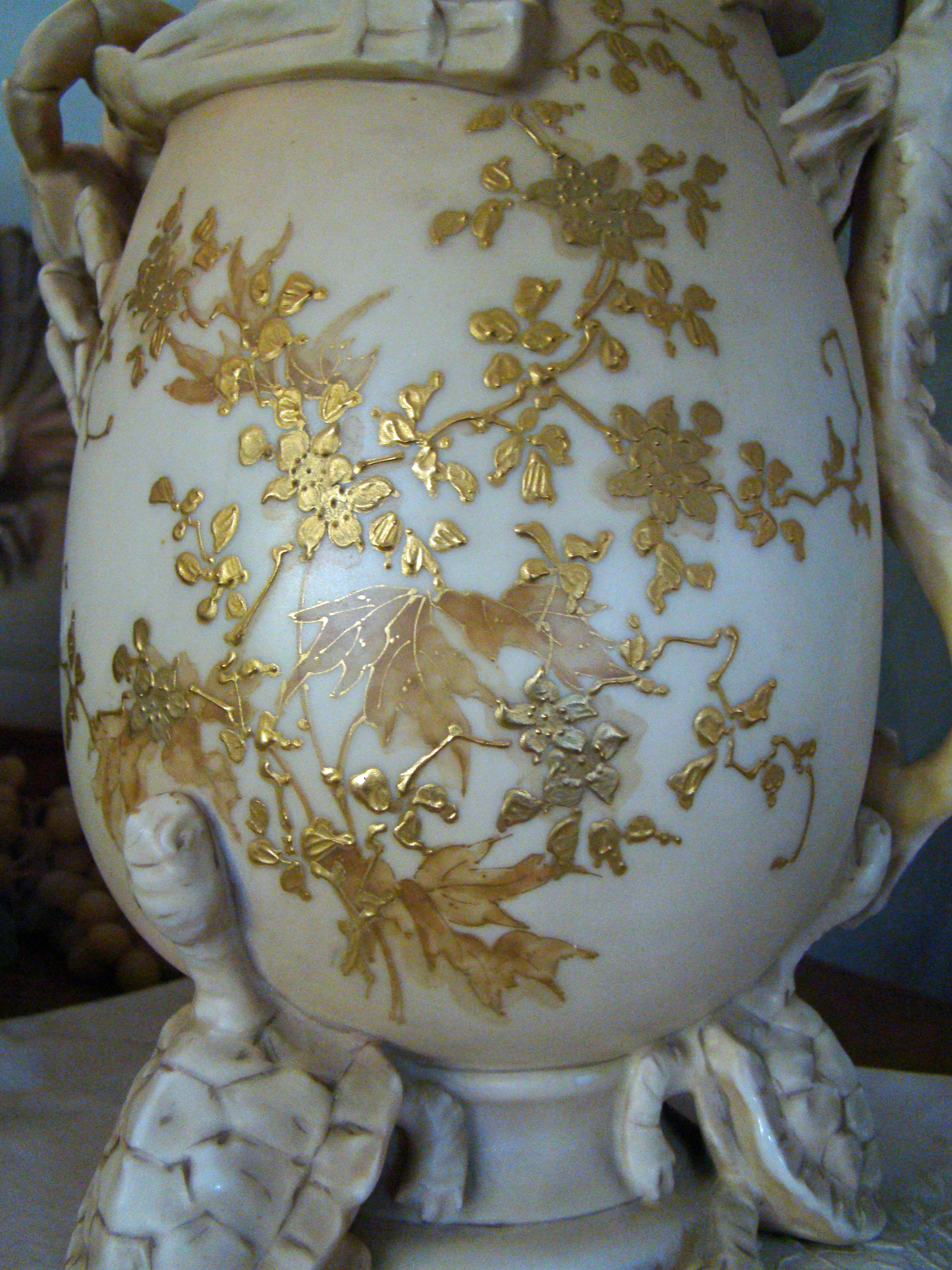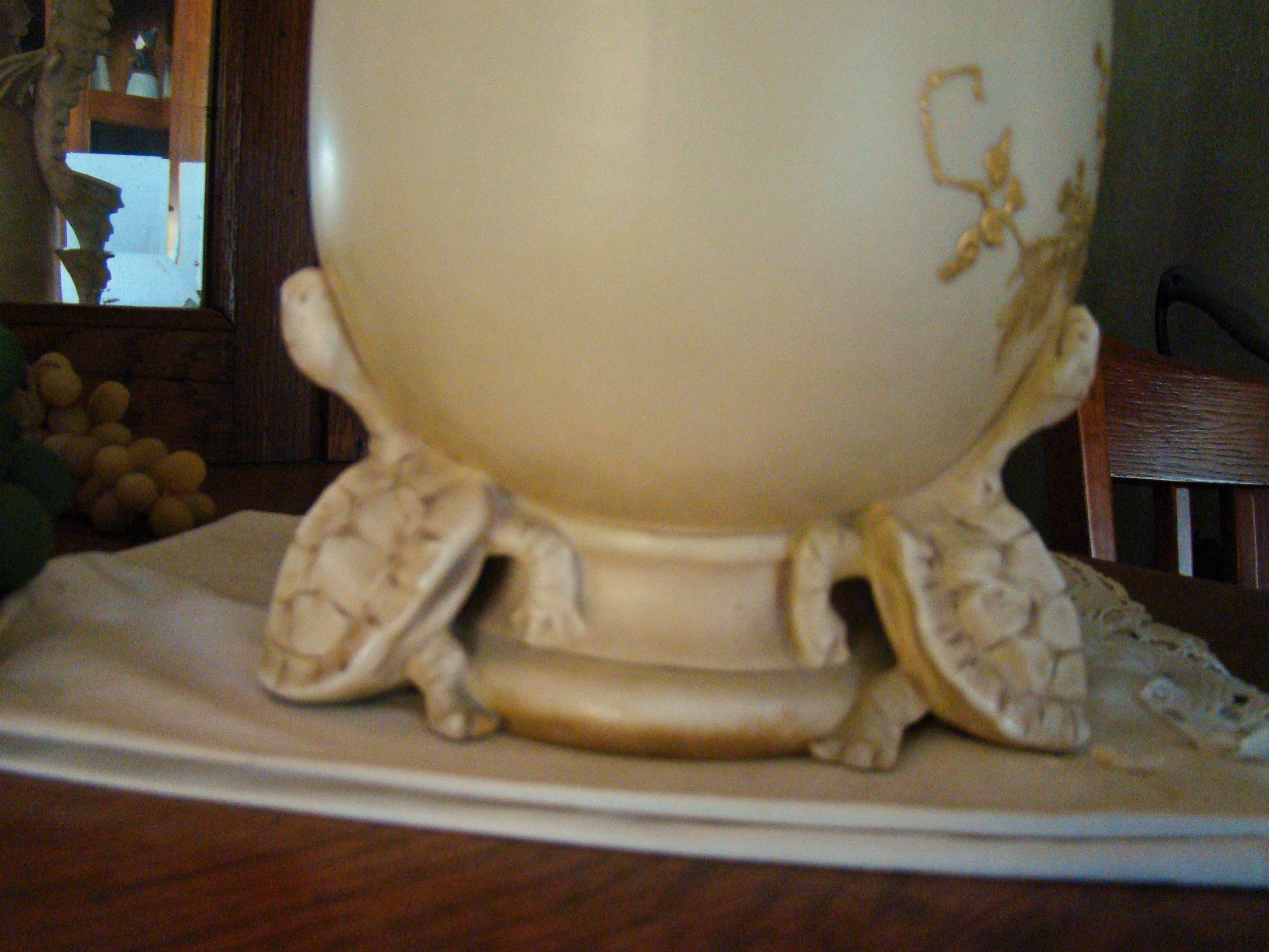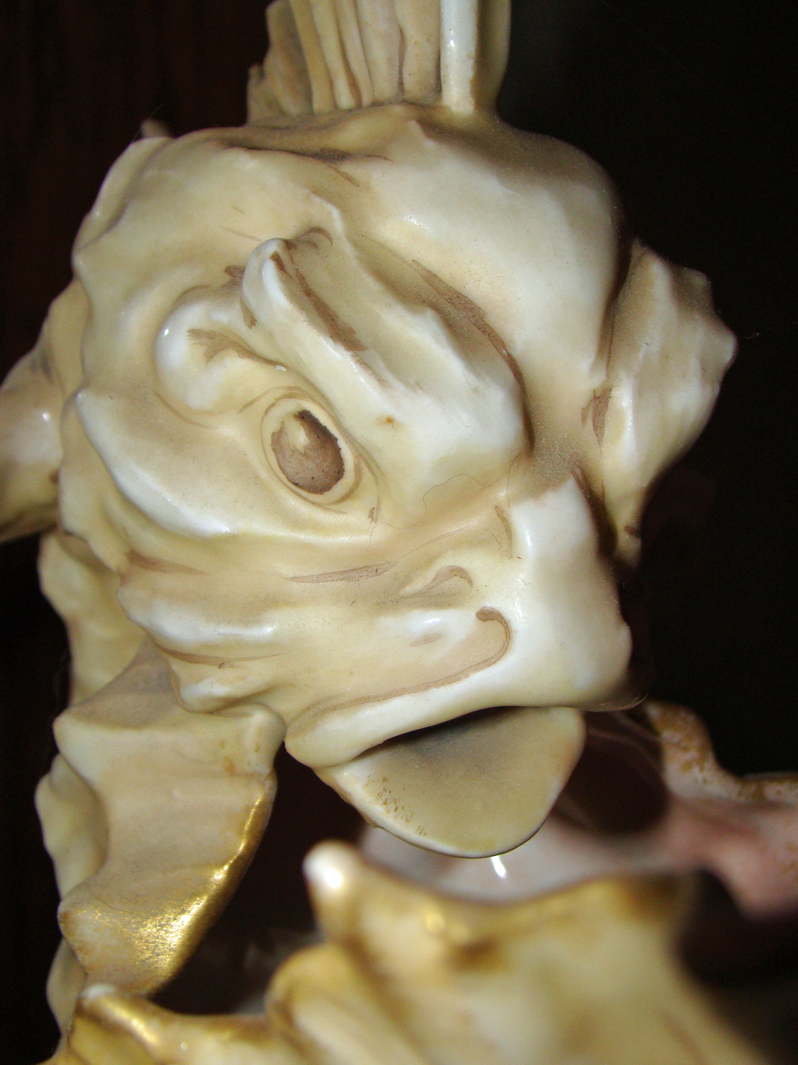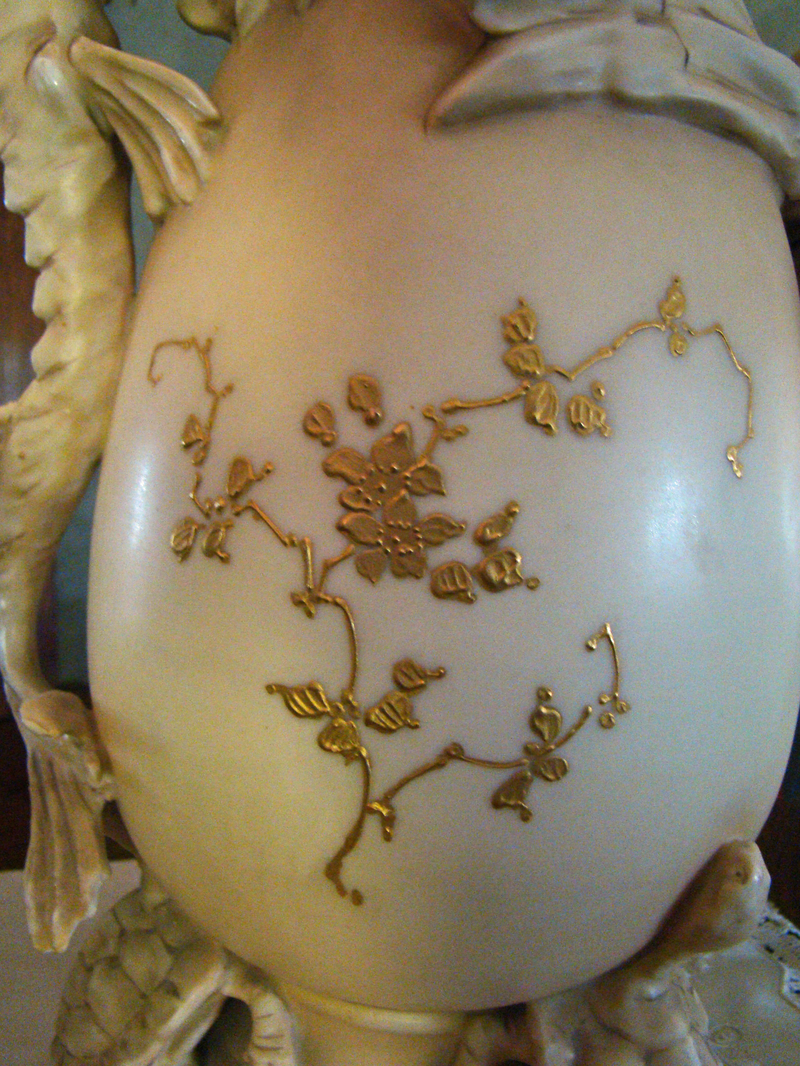 I know very little about this pitcher. It is something my grandparents bought over 60 years ago and they told me it was old at the time they got it. The only marks are on the bottom. A stamped in "283" and red hand-written numbers, as you can see in the photo. It stands about 16" tall and is about 10" at its widest. There are raised gold flowers painted on both sides. The inside of the shell "spout" is a muted pink. It is VERY ornate with crabs, shells, turtles and fish. I've done lots of research and haven't found another pitcher like this so I'm hoping some of you can help. Thank you!
