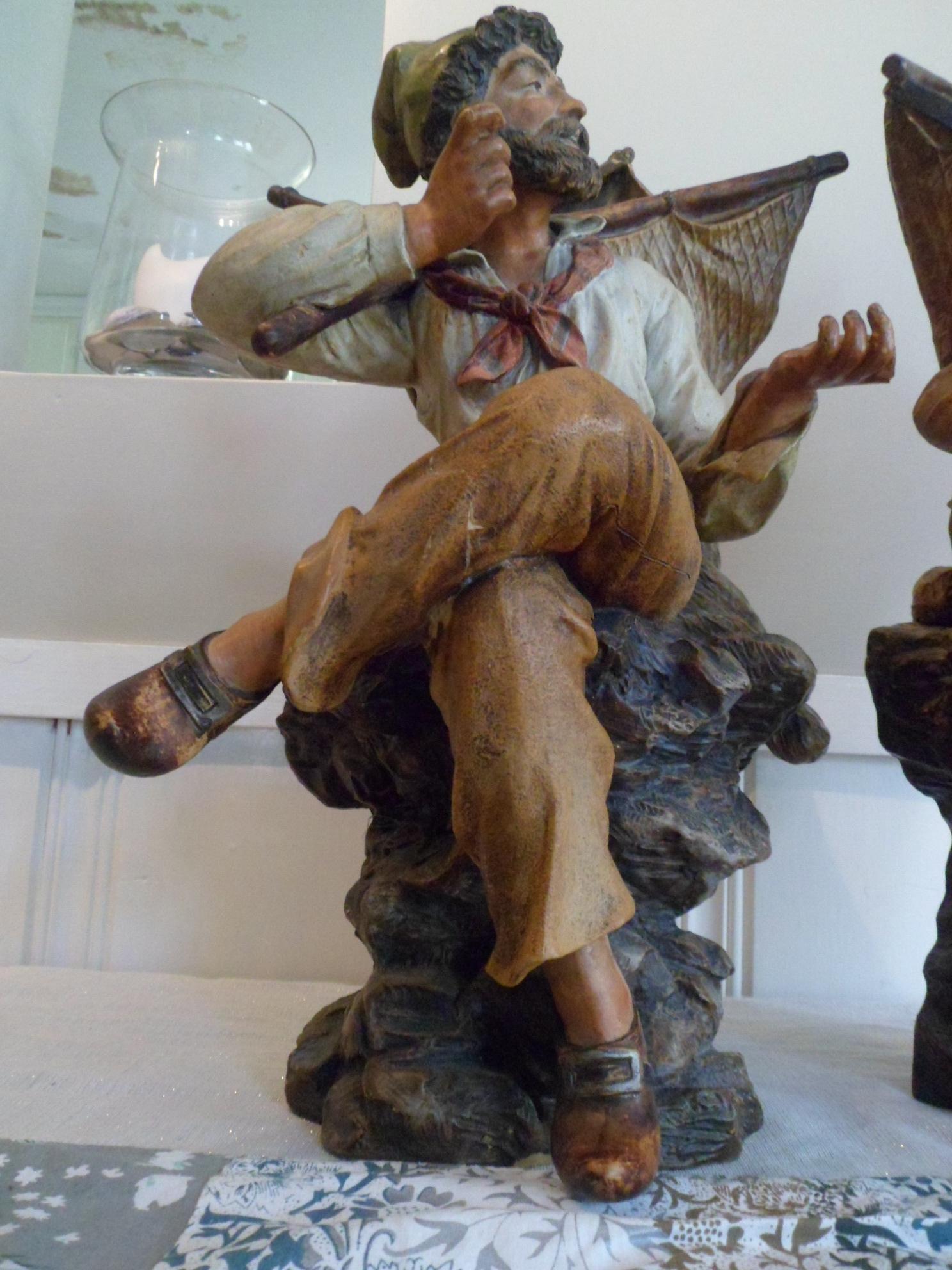 These were my Grandfather's statues. He said his Dad got them in Portugal when he was young... which would date them over 100 years old now, at least. Of course, we all know how family stories go. :) But, I do know that my Dad grew up with them in his house, and then in our house growing up... and now in my own home as an adult.