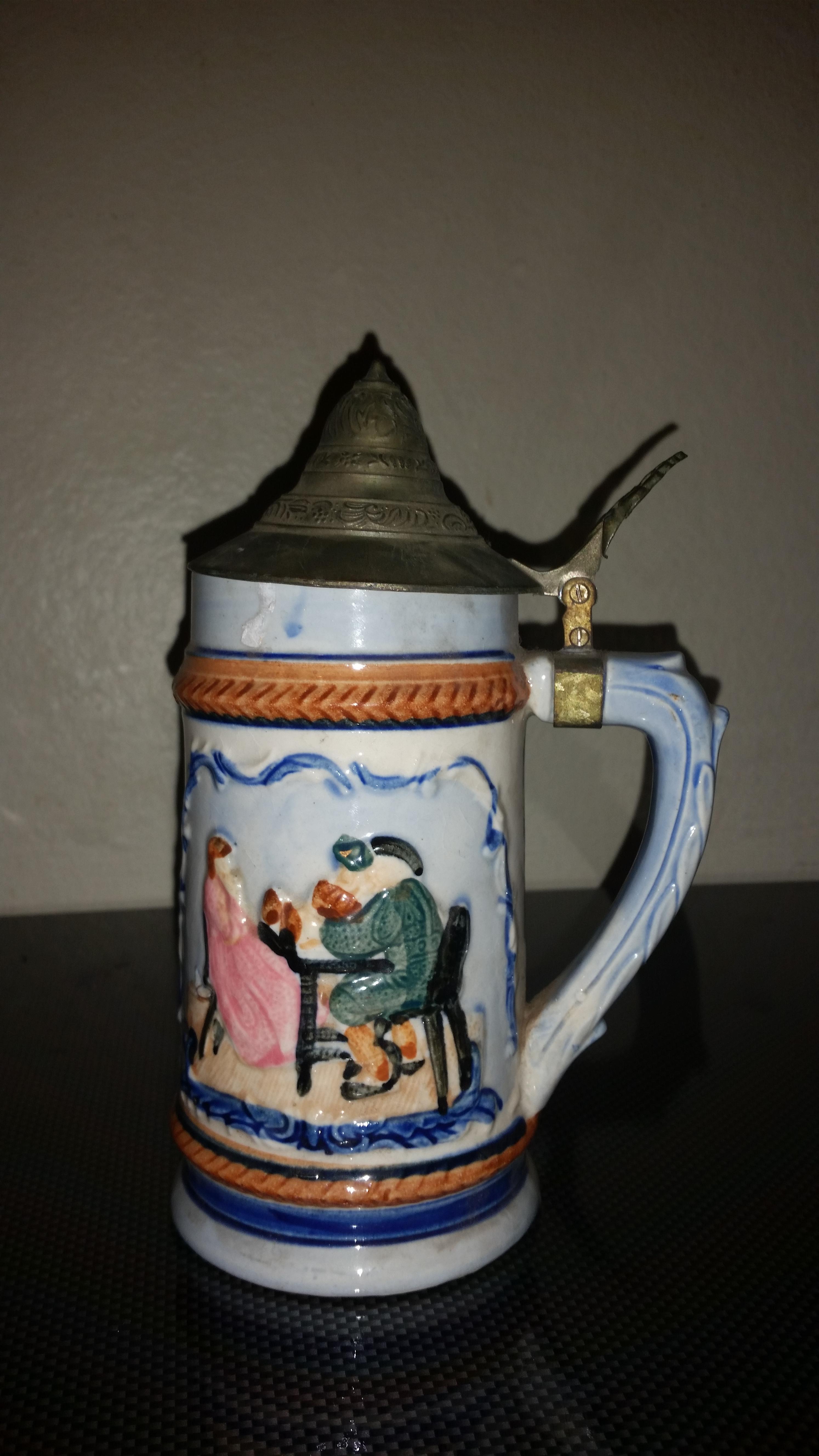 Looks like a man child and a woman, it has a metal top and is made in Japan.