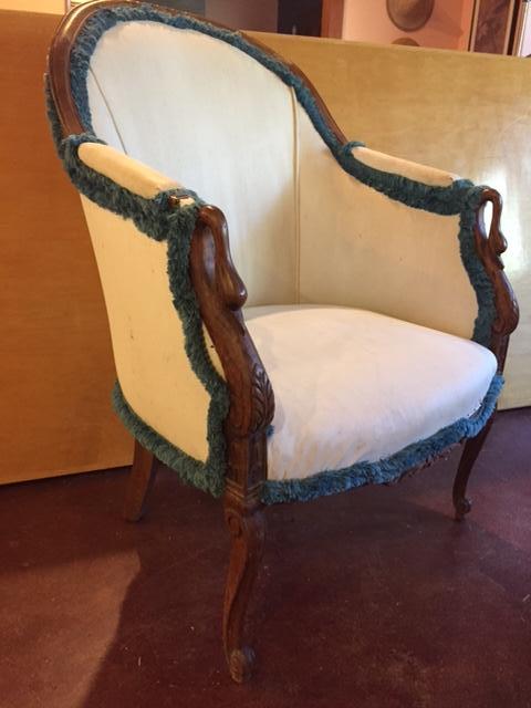 White naugahide chair 21" wide, 24" deep 39" back height