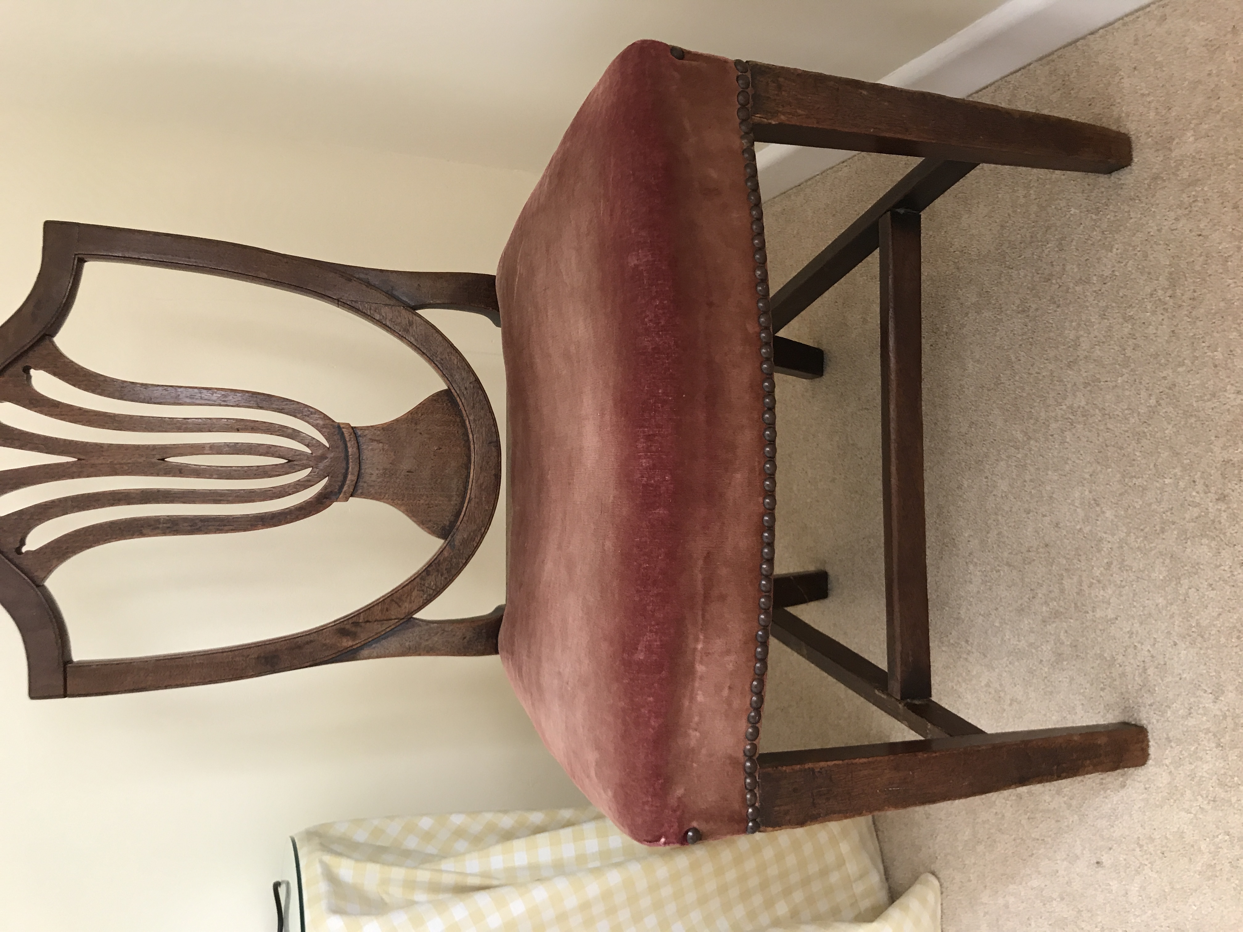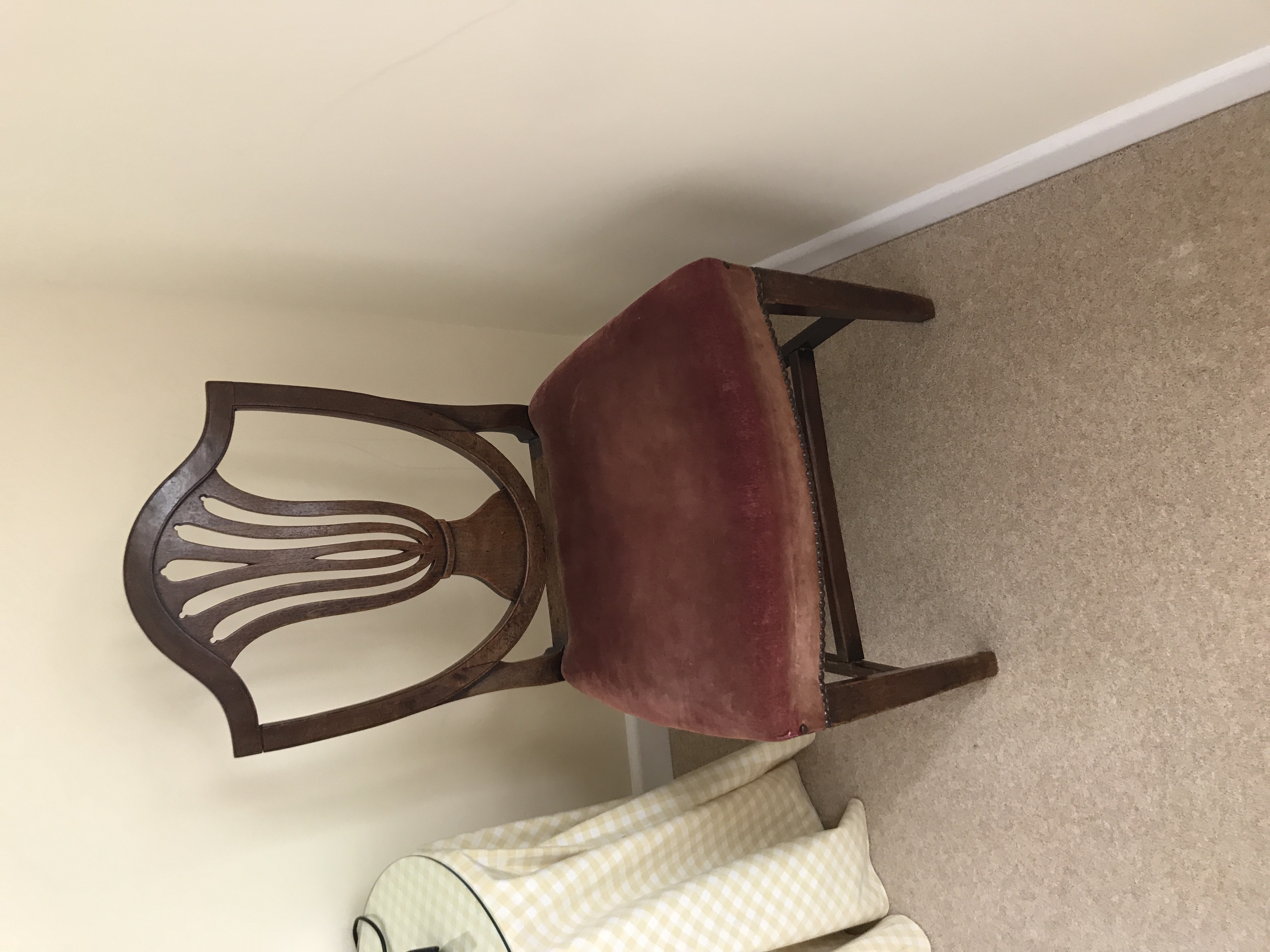 Looks like a Hepplewhite style chair, might even be of the period ( late 18th to early 19th Century), but it would need a physical appraisal to determine that.