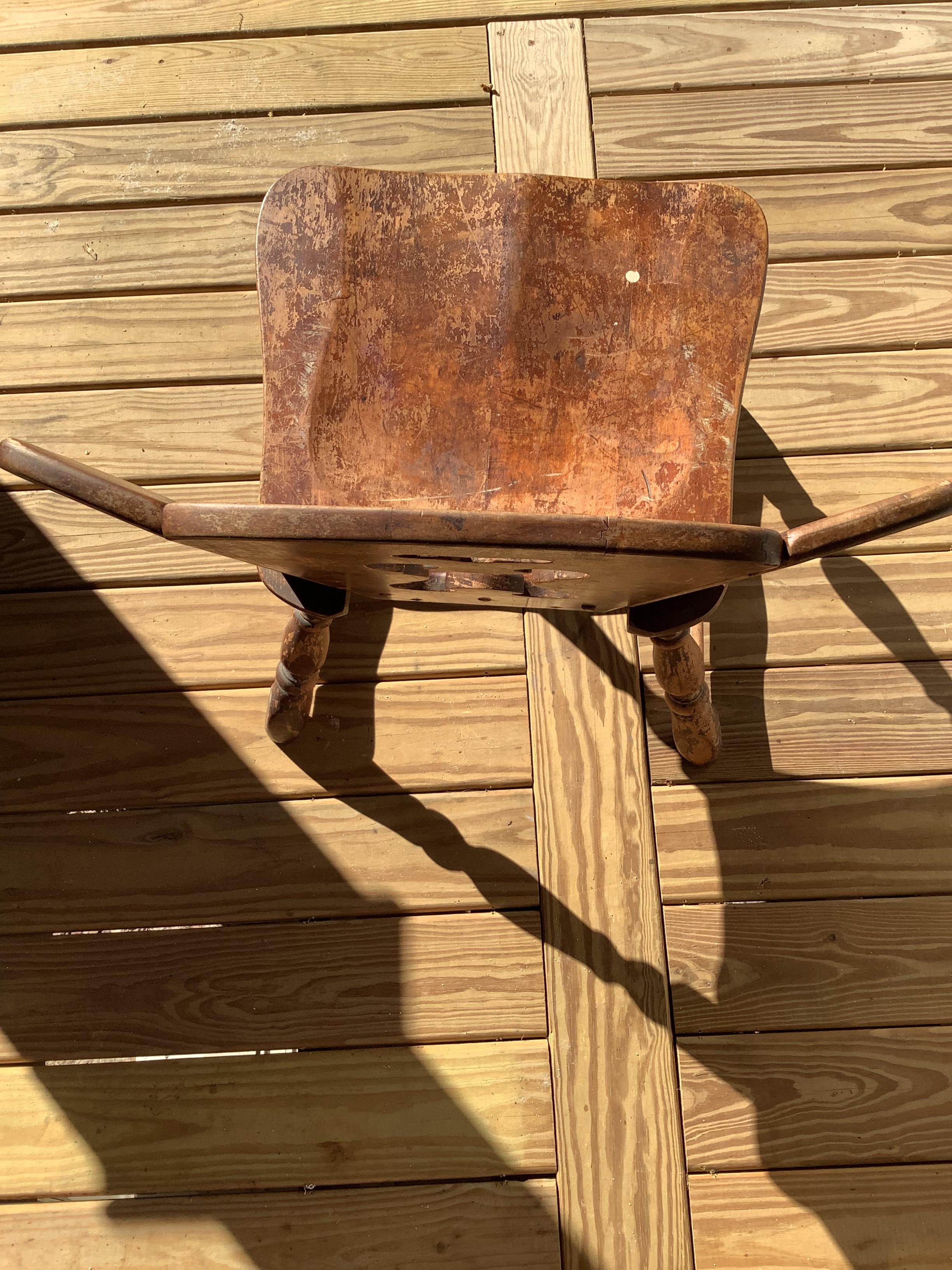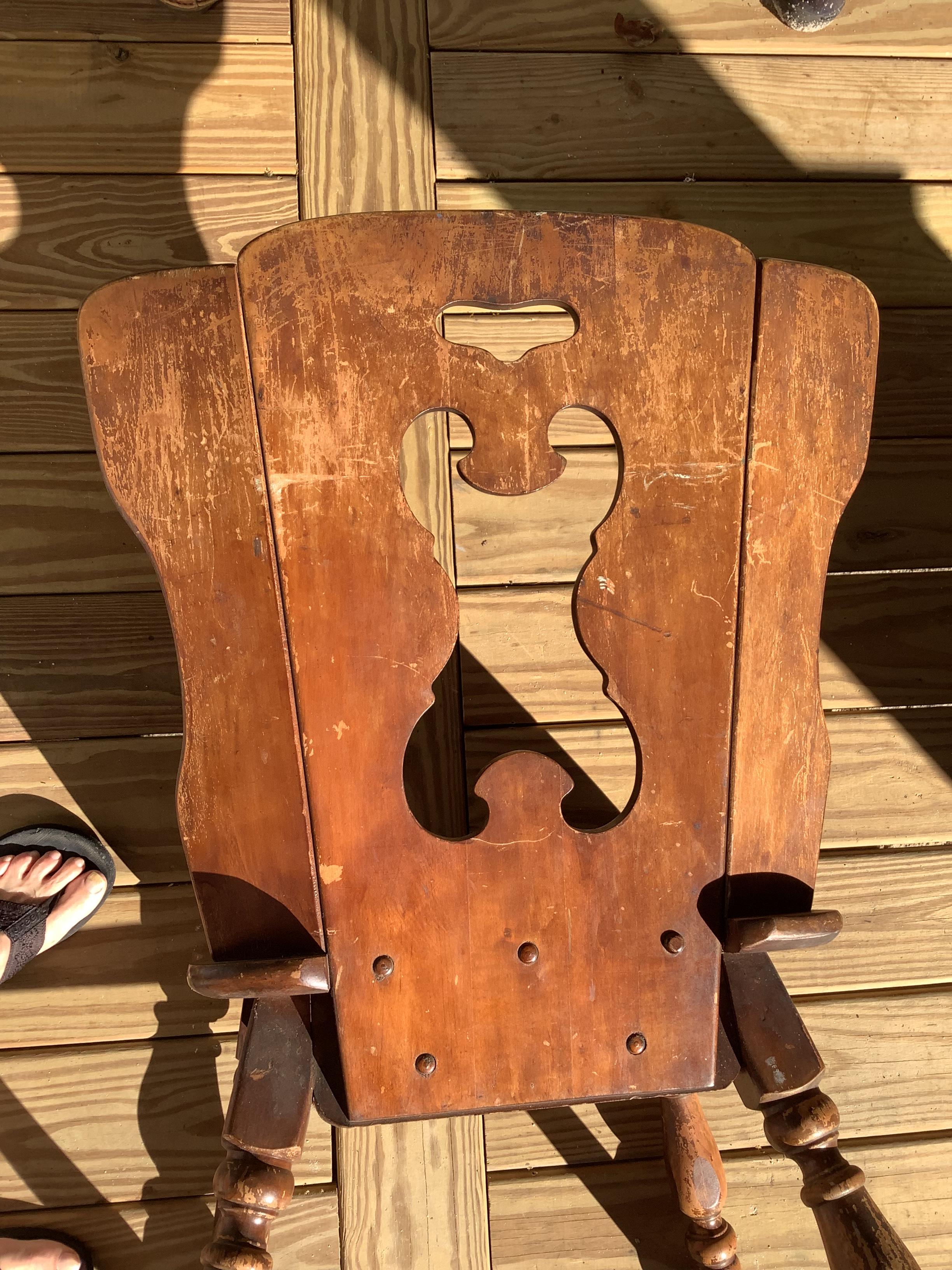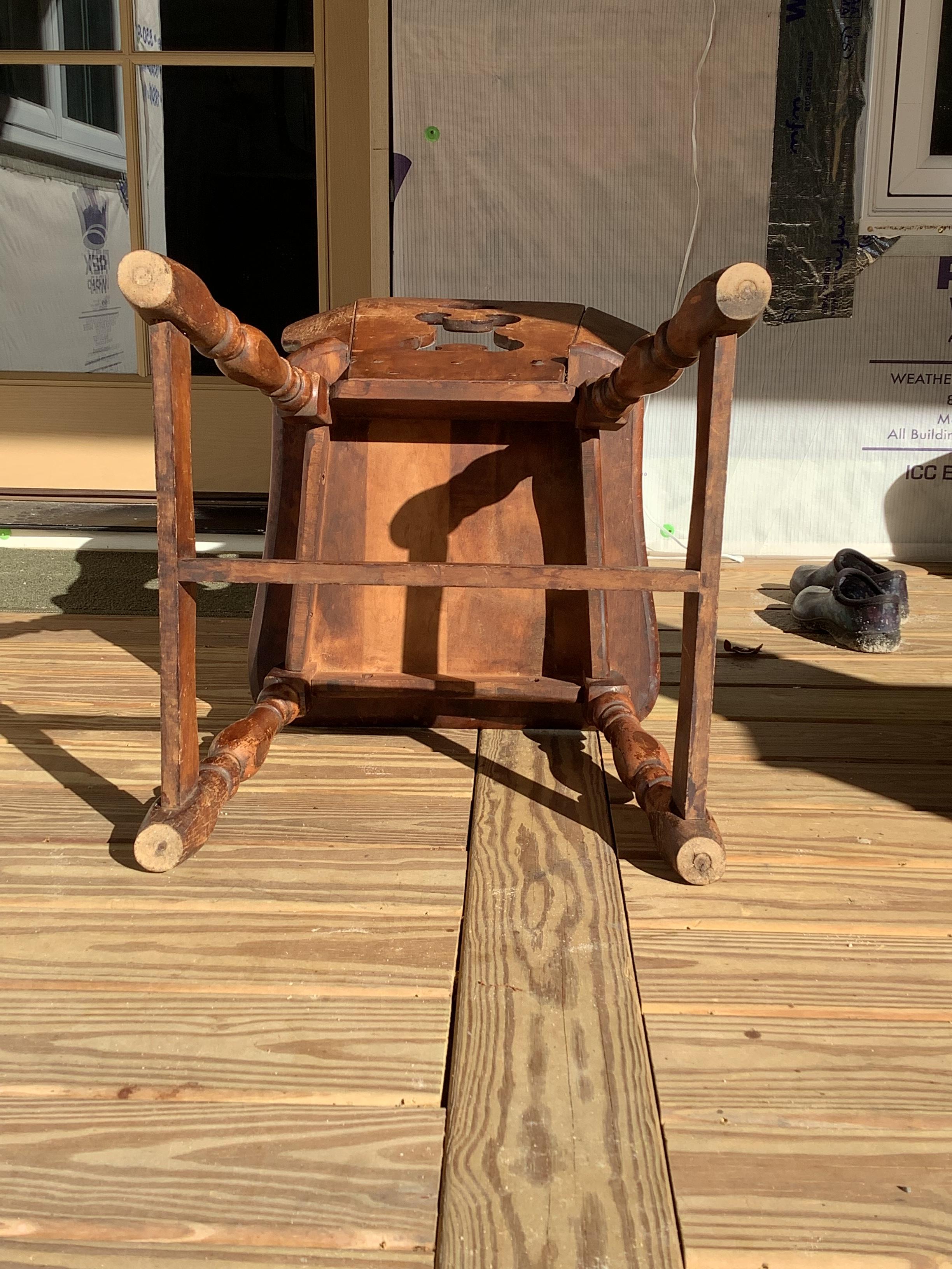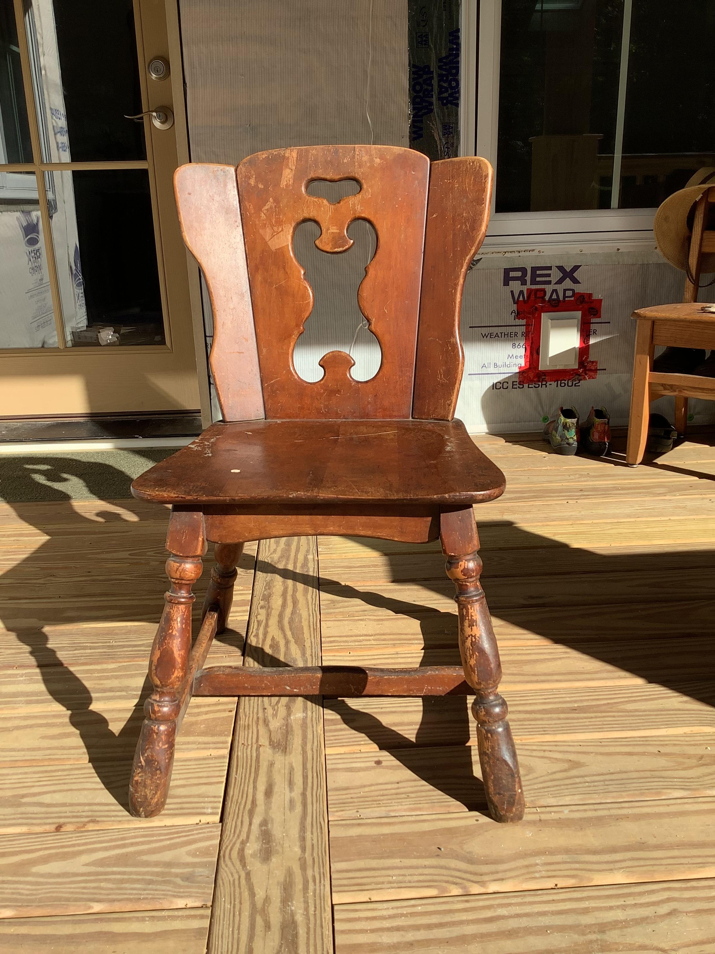 Purchased chair at local thrift store. Do not know history of the chair. My husband builds furniture and is guessing the wood is maple. Have done many Google searches to find similar chairs and have been unsuccessful. Think the chair could possibly be late 1800’s or early 1900’s.