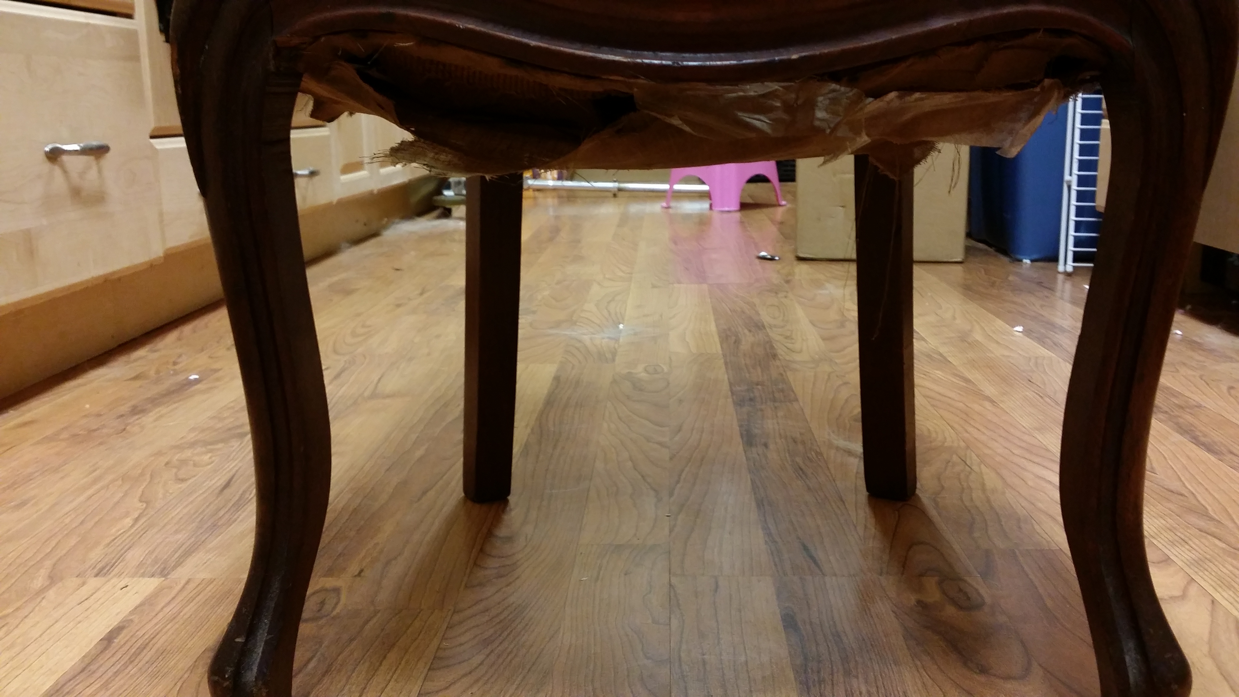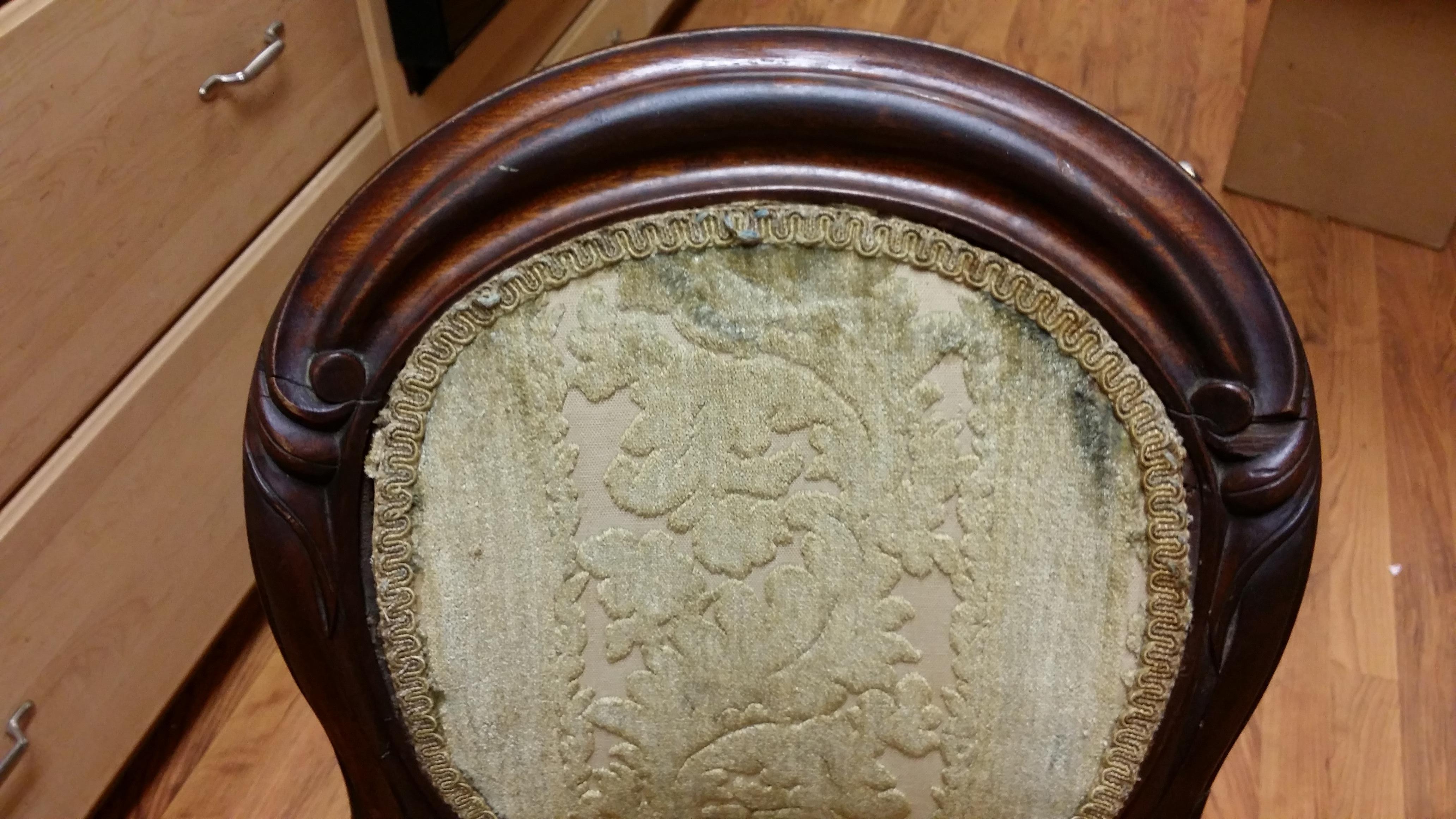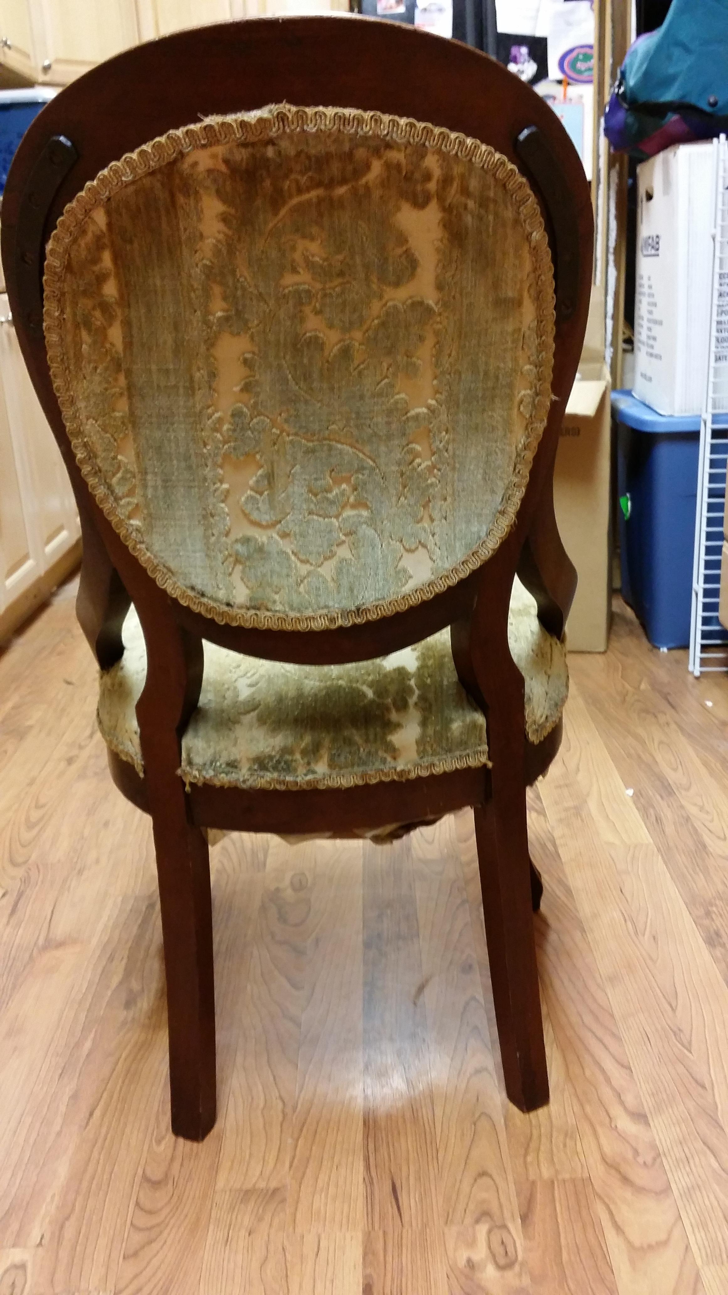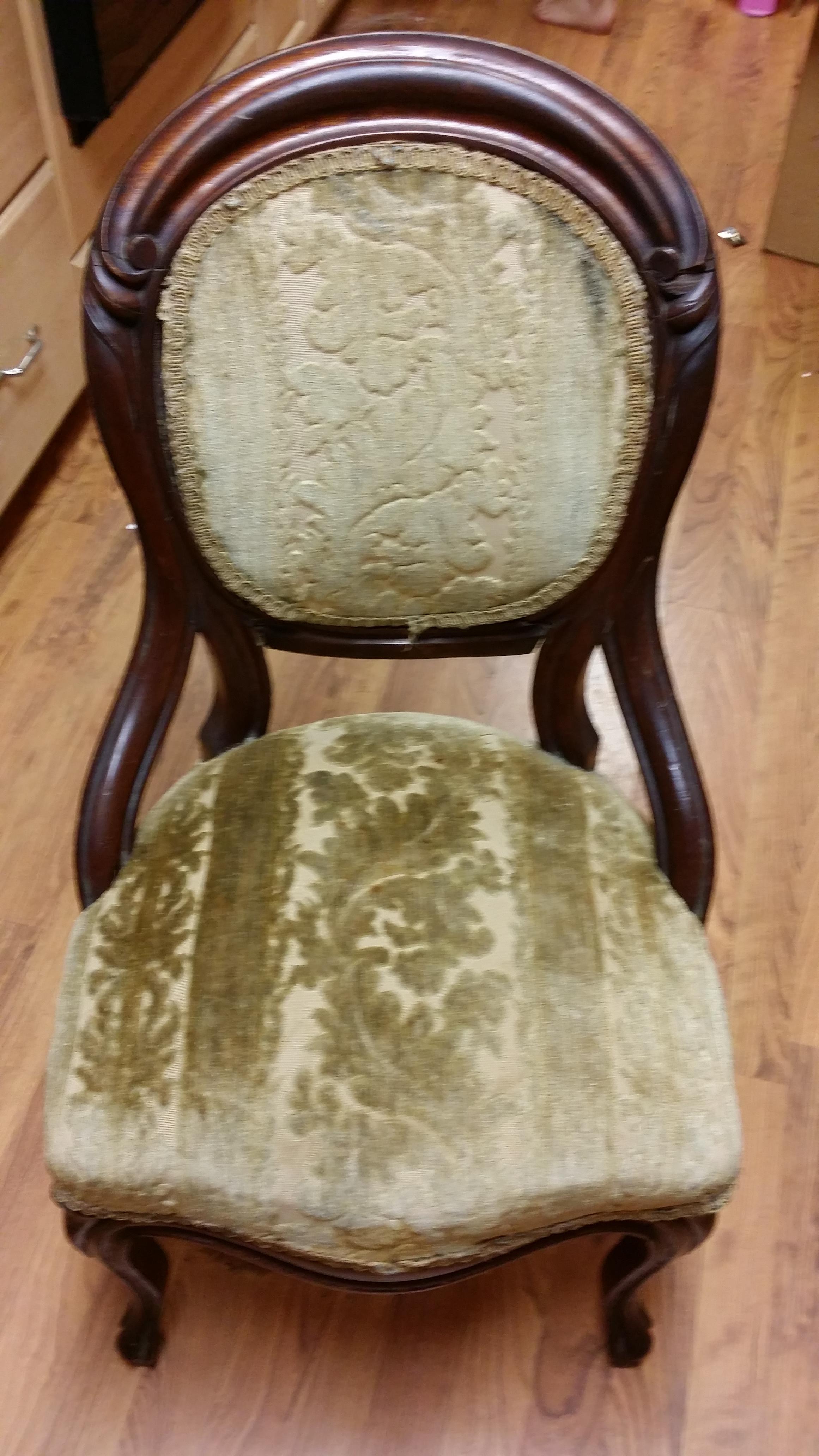 Antique chair, hand carved wood Early 1900's. reupholstered in 60's.