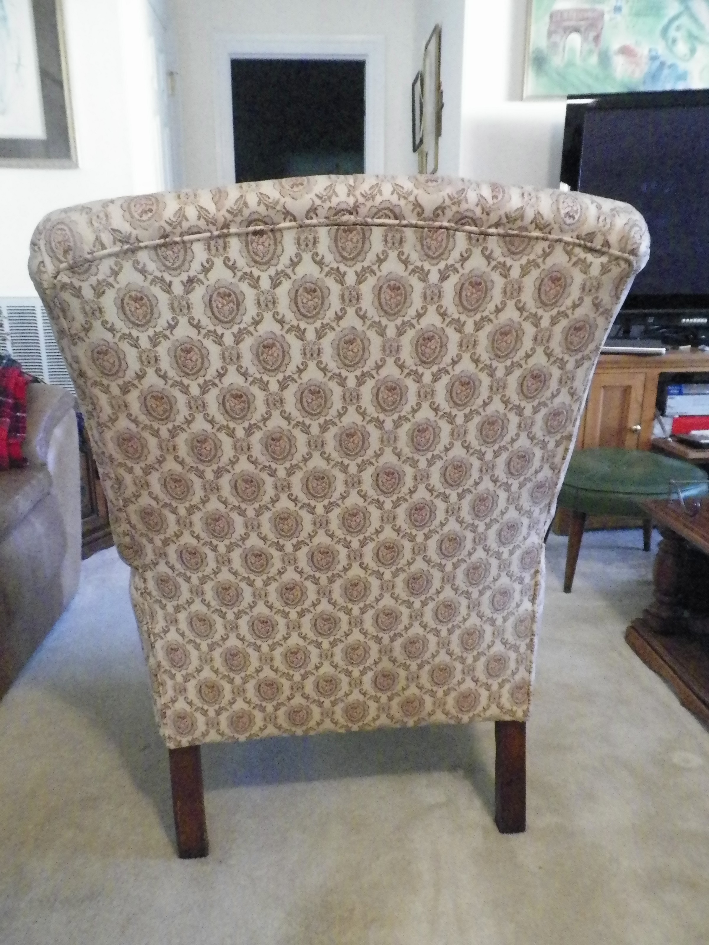 It's a late Victorian piece, loosely based on the Renaissance Revival Style. No big value though, as the market for Victorian upholstered furniture is currently very weak. We'd retail on like this for about $225.00.