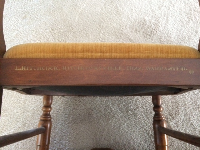 Dinning room chair with L.Hitchcock.Hitchocksville.CONN on it but the NN's are Backwards