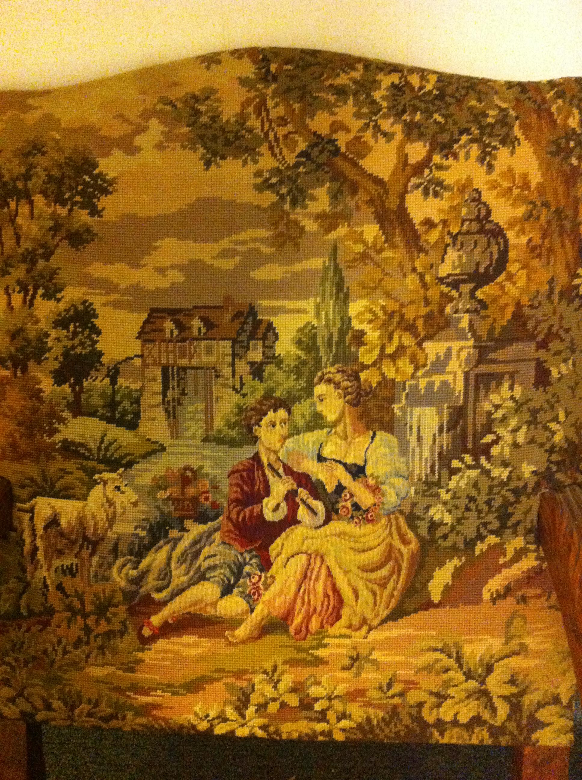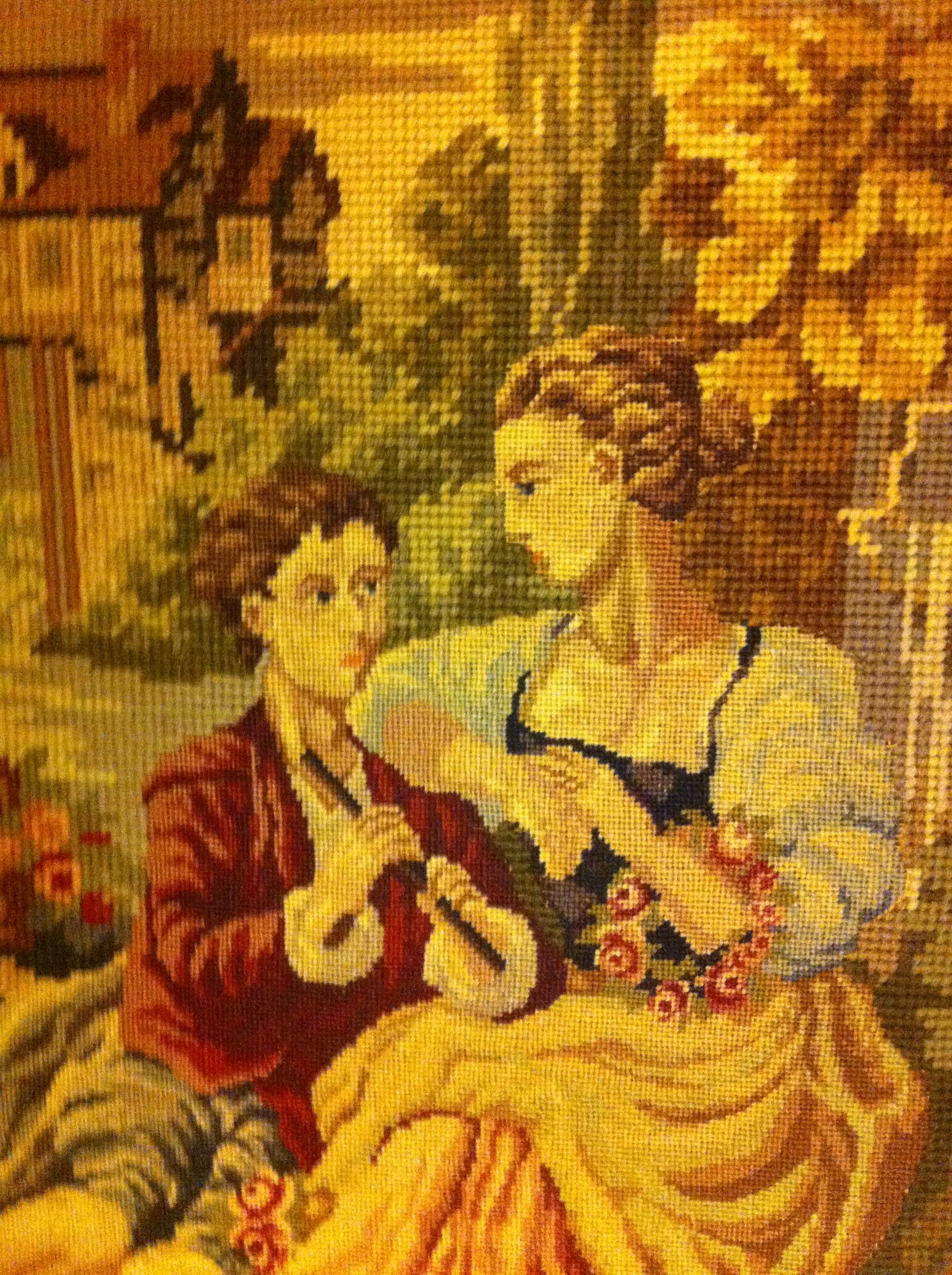 History Hand stitched by my great grandmother in Denmark and wood hand craved by local merchant.