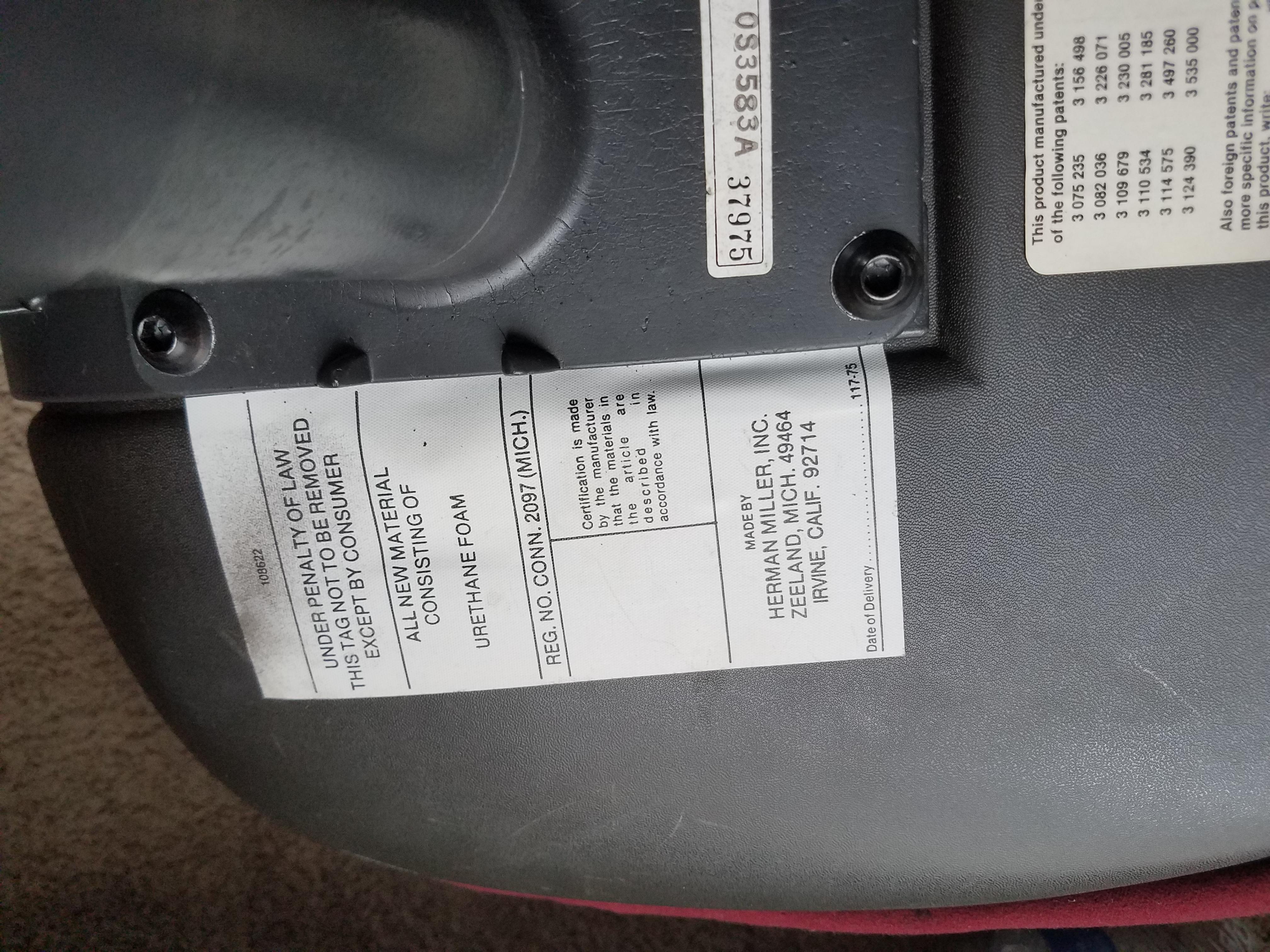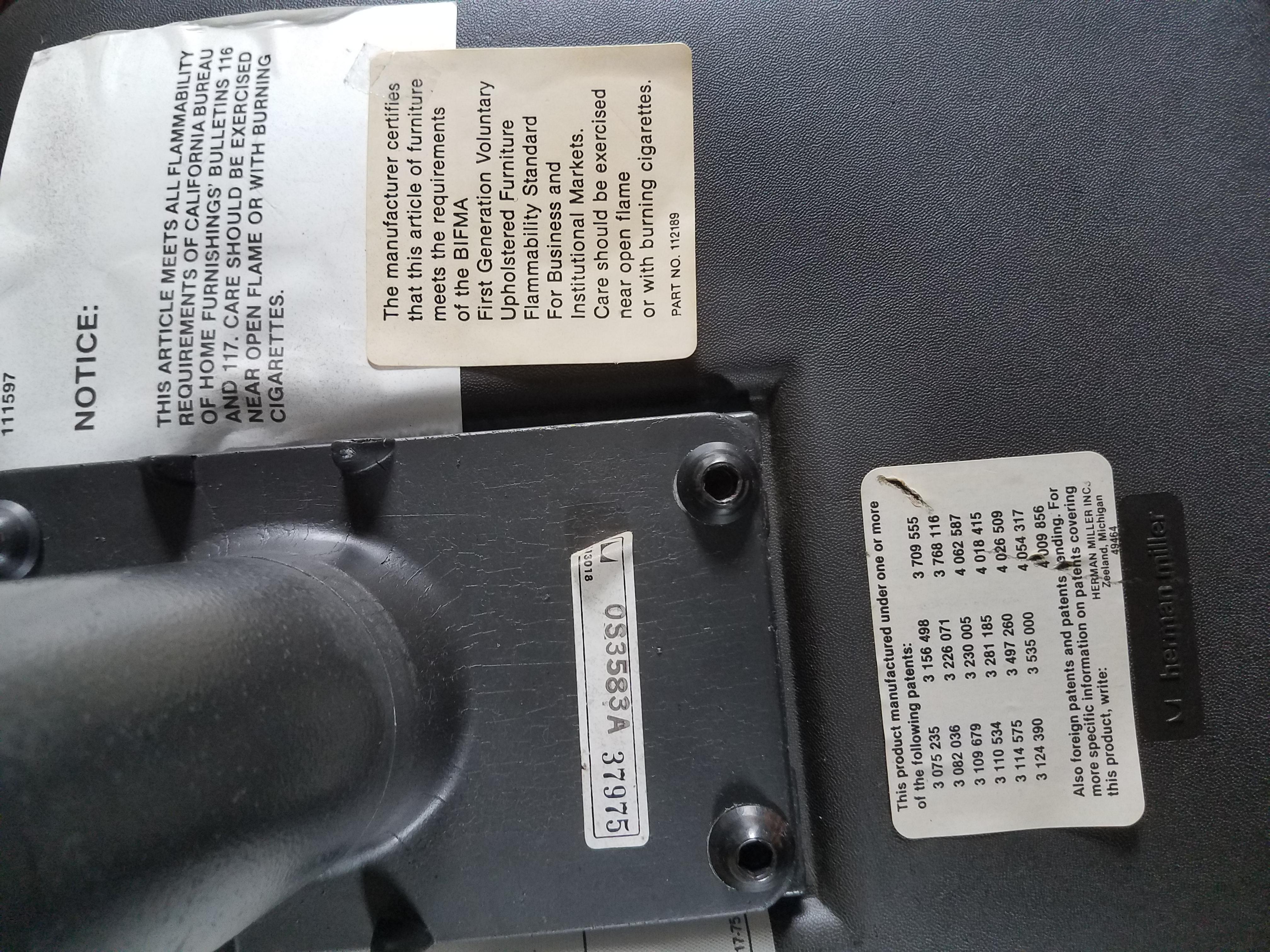 It has that U shaped symbol and Herman Miller engraved in the bottom of the chair.It also has a date of delivery of 117-75 on one of the labels.