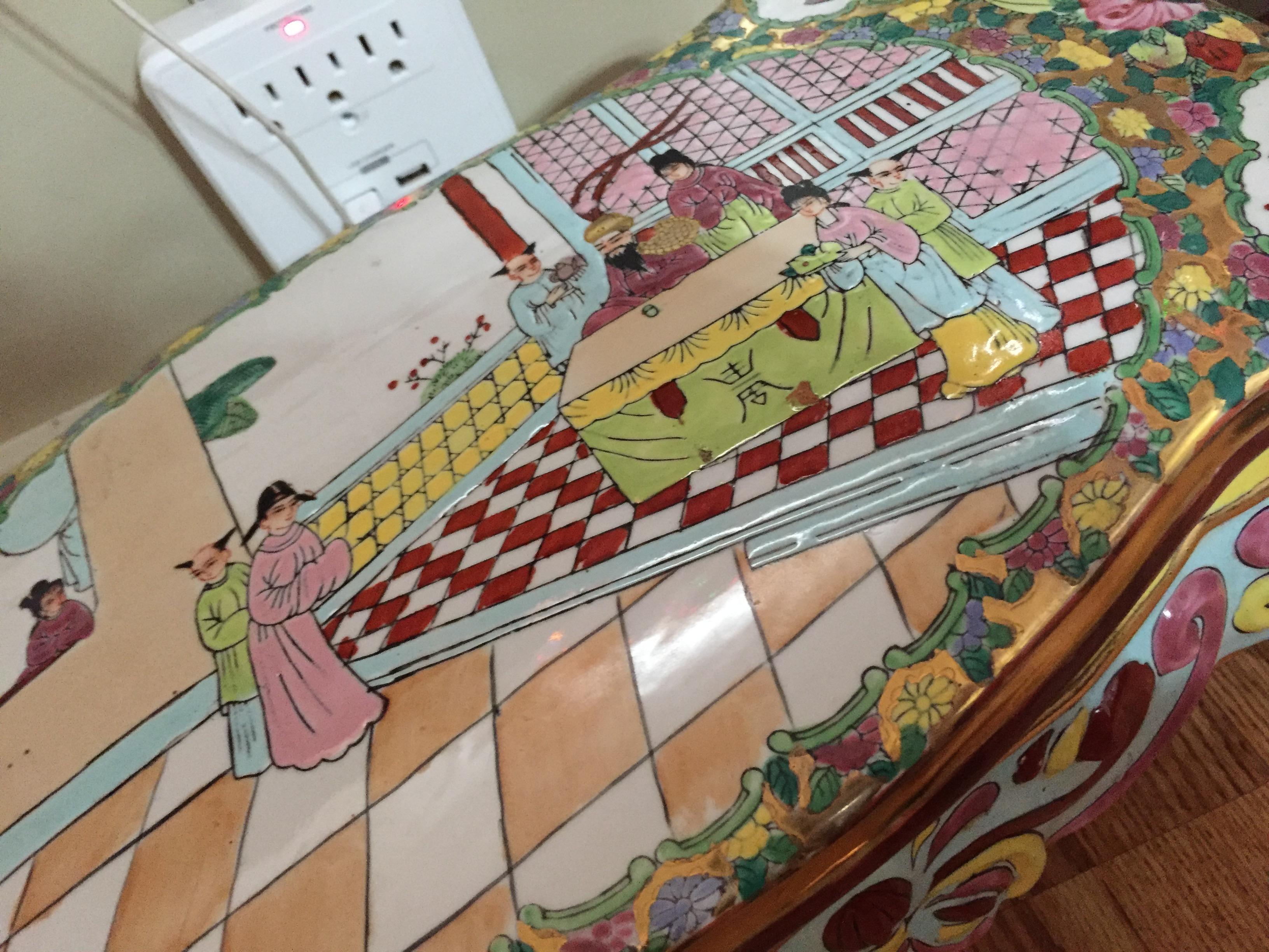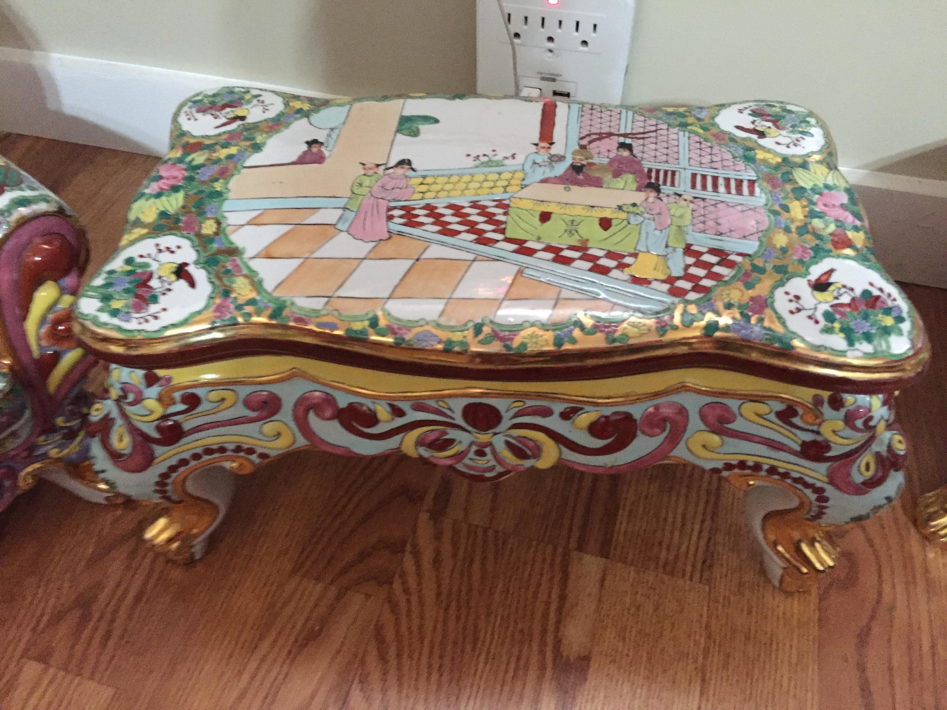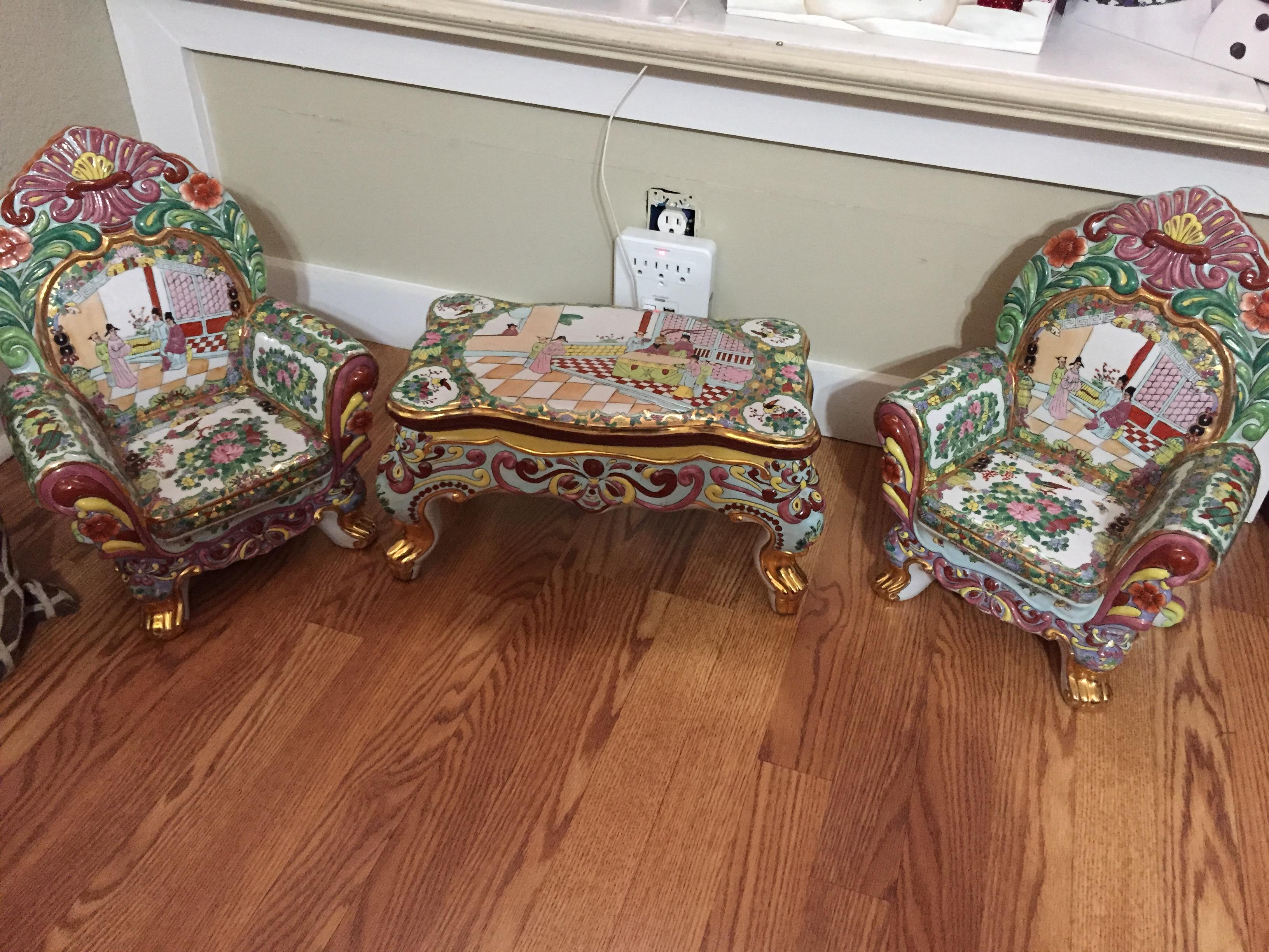 I believe it’s maybe a tea set for a garden of some sort, to small for an adult to use but definitely not for a child. It may be hand painted and looks to be very old