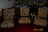 These chairs are from my mom's living room. They are in good shape. I do not know if she's had them reupholstered or if they were always this color. The only thing I noticed was some scuffing underneath and the ribbon trim coming loose in the same place on both (see photo). I don't know what that one round fastener on the top of each is for, but it could have been added. The sticker on the bottom says 1998. They are for sale, and I'm just looking for a reasonable price.