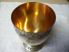 Chalice like mug with handle on side and top. Stamped "1715 JBLR" with a hand holding a cross and crown atop the cross.