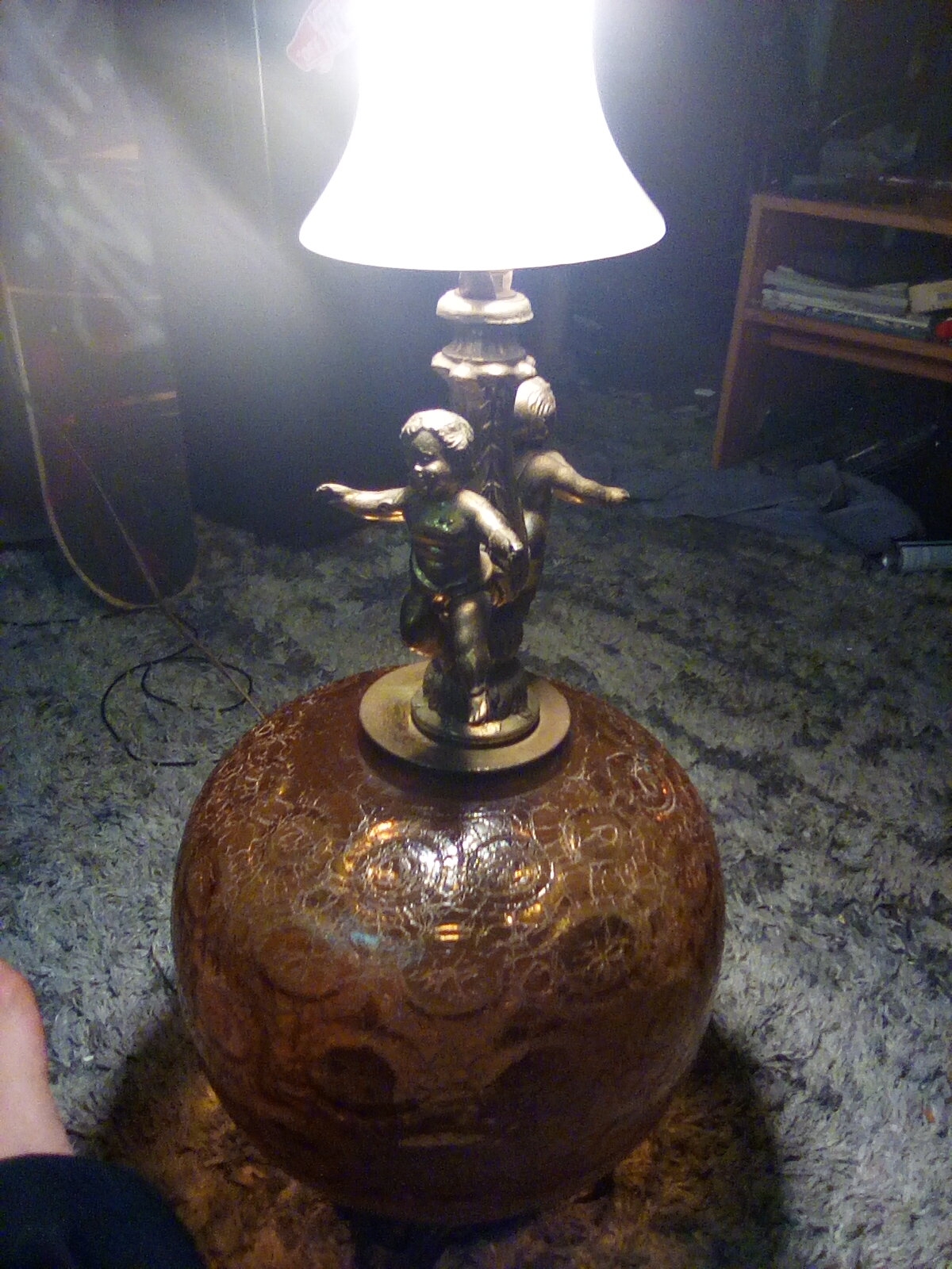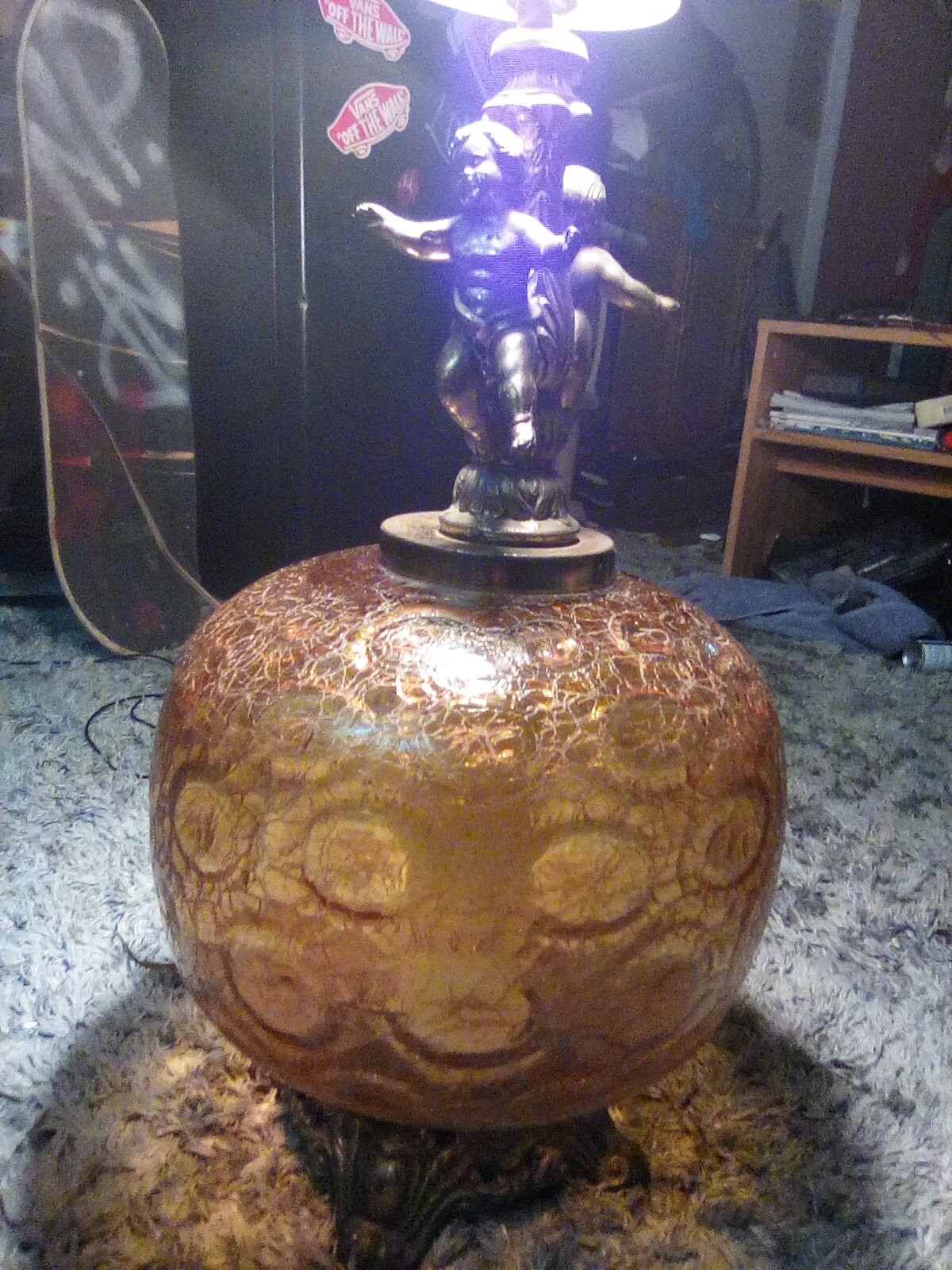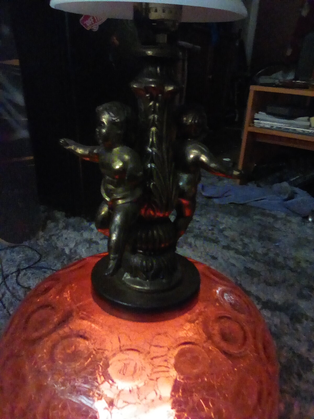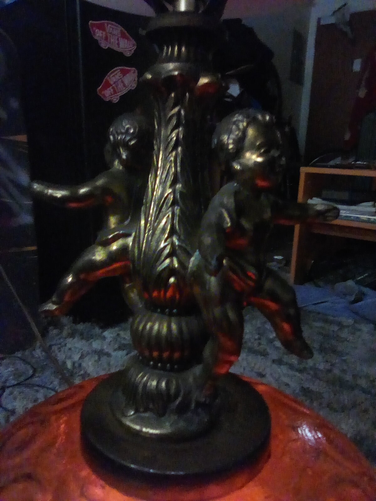 Antique cherub lamp with etched Amber Glass and brass cherubs, hoping to get an appraisal on it please contact me for inquiries or appraisals thanks!