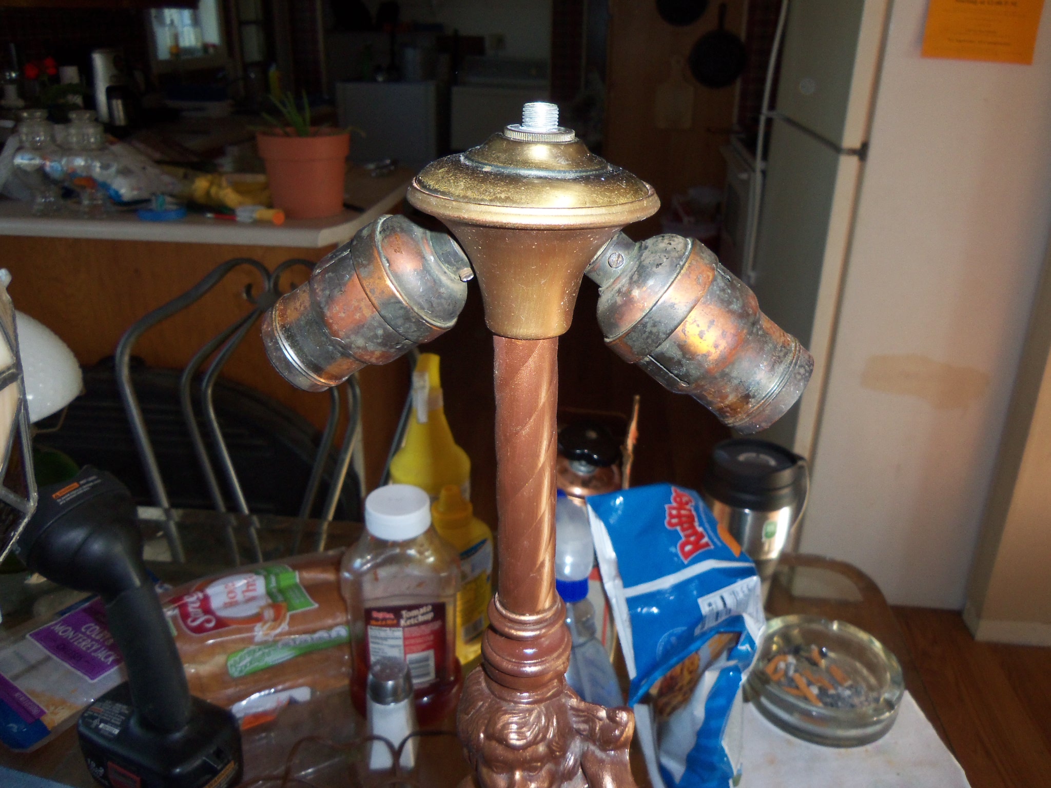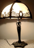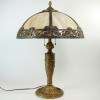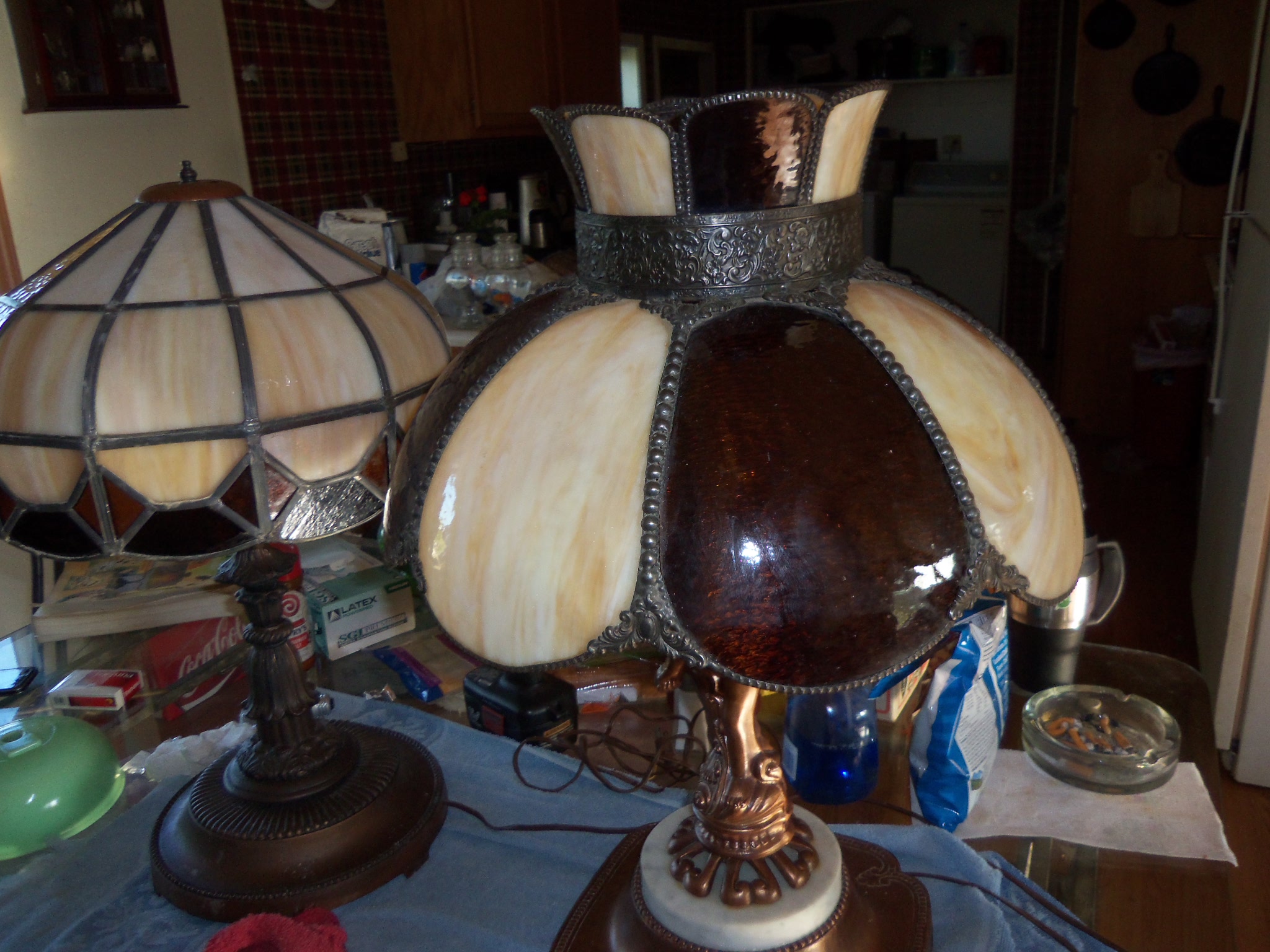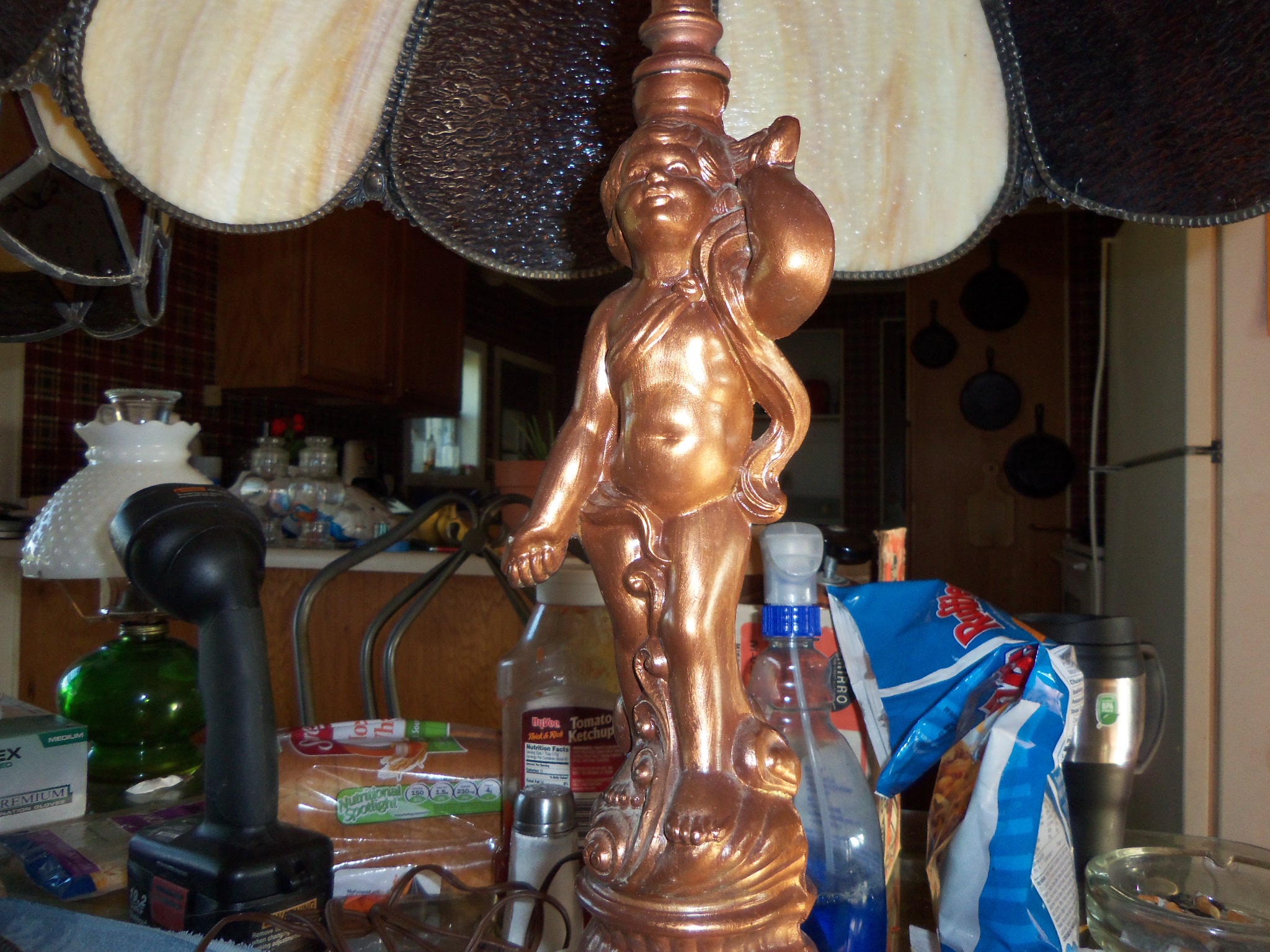 i know nothing of this lamp i have searched evrything on the internet there is a mark on the bottom S.N 318 it is approx. 24 inches tall there is a caramel/ brown tulip shaped stained glass shade there is a marble base underneath the cherub it is gold in color i am not sure of the type of metal could be potted . i would like to know approx. year and where it was made and who made it thank you
