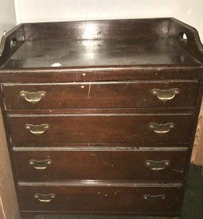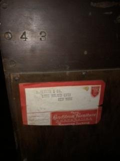 This piece was given to me several years ago. The owner had no knowledge about it except it was an antique.It is made by Landstrom Furniture.There is a label on the back that states information but it is torn & hard to read. There are no stamps anywhere to be found. We have found 43 engraved into the wood in a few spots. There is also A656 pressed into the pull knobs of the drawers, they appear to be brass. The dresser appears to be mahogany wood with a mahogany finish. Also, on each side there is a pull out ledge of sorts, like to put things onto.I am uploading 2 pictures, one of the front & one of the label and 43 carved into the wood on back of dresser. We have considered sanding the piece to its original wood & using it as a changing table/dresser for our babies room.
